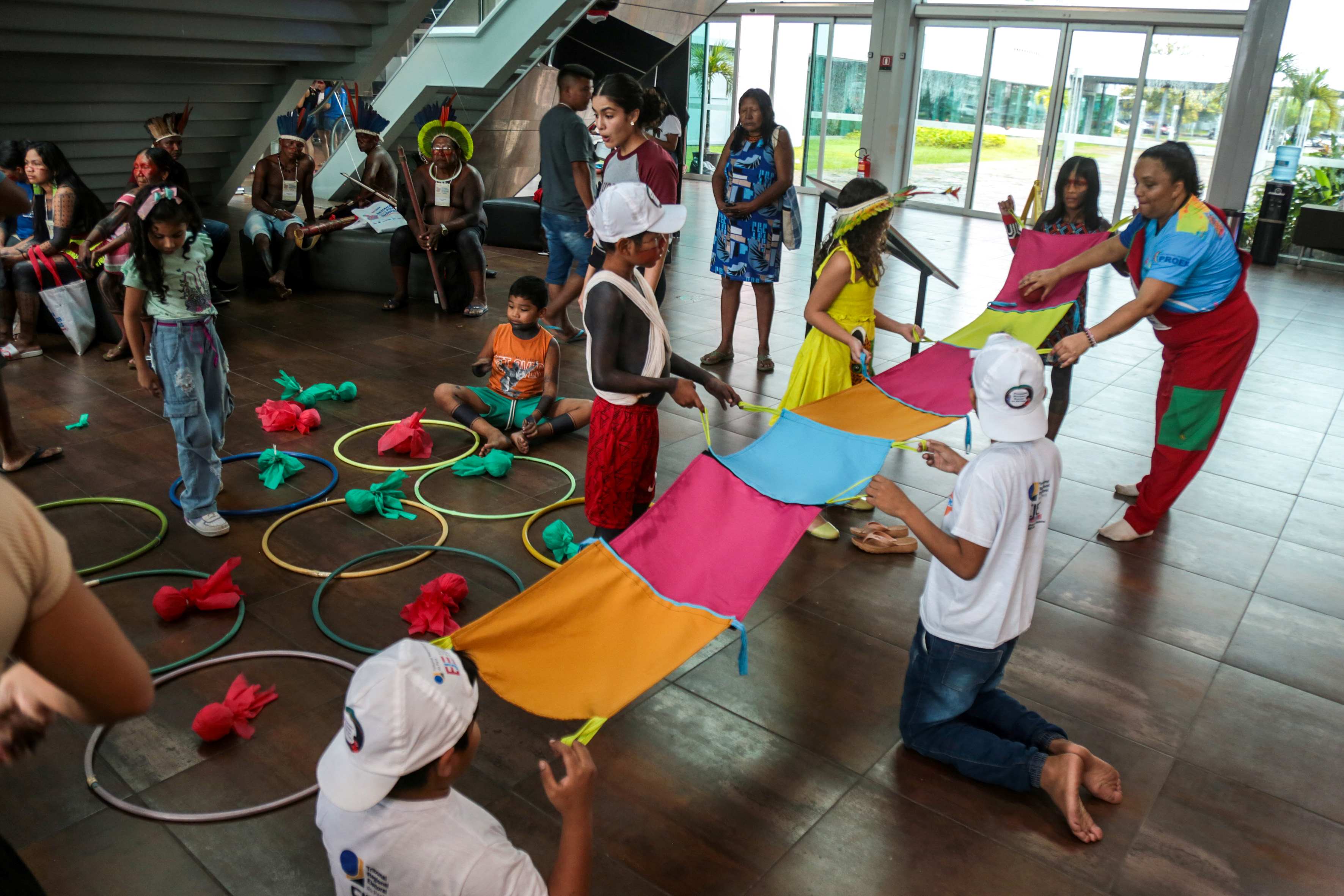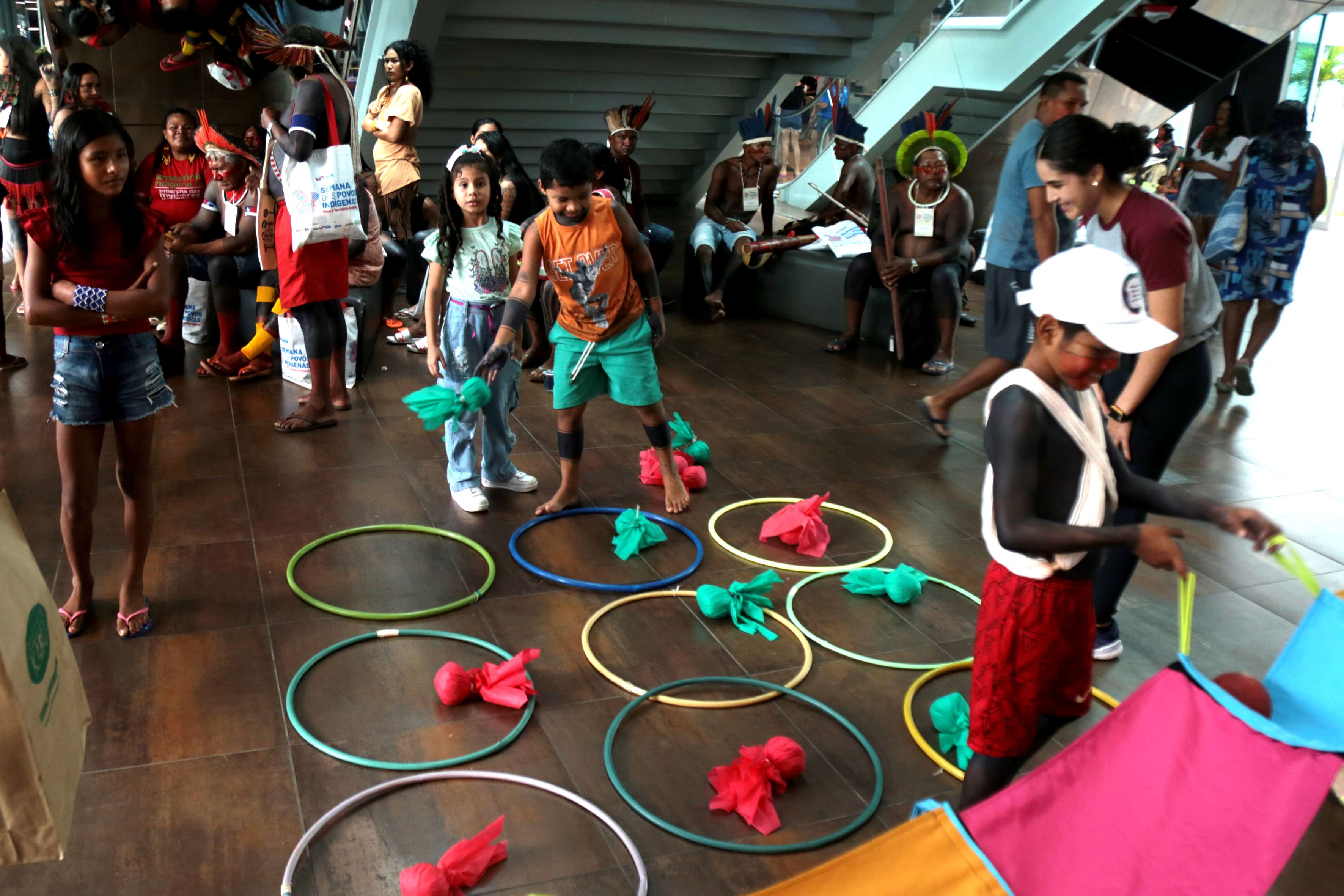 Atividades lúdicas no Dia dos Povos Indígenas.
