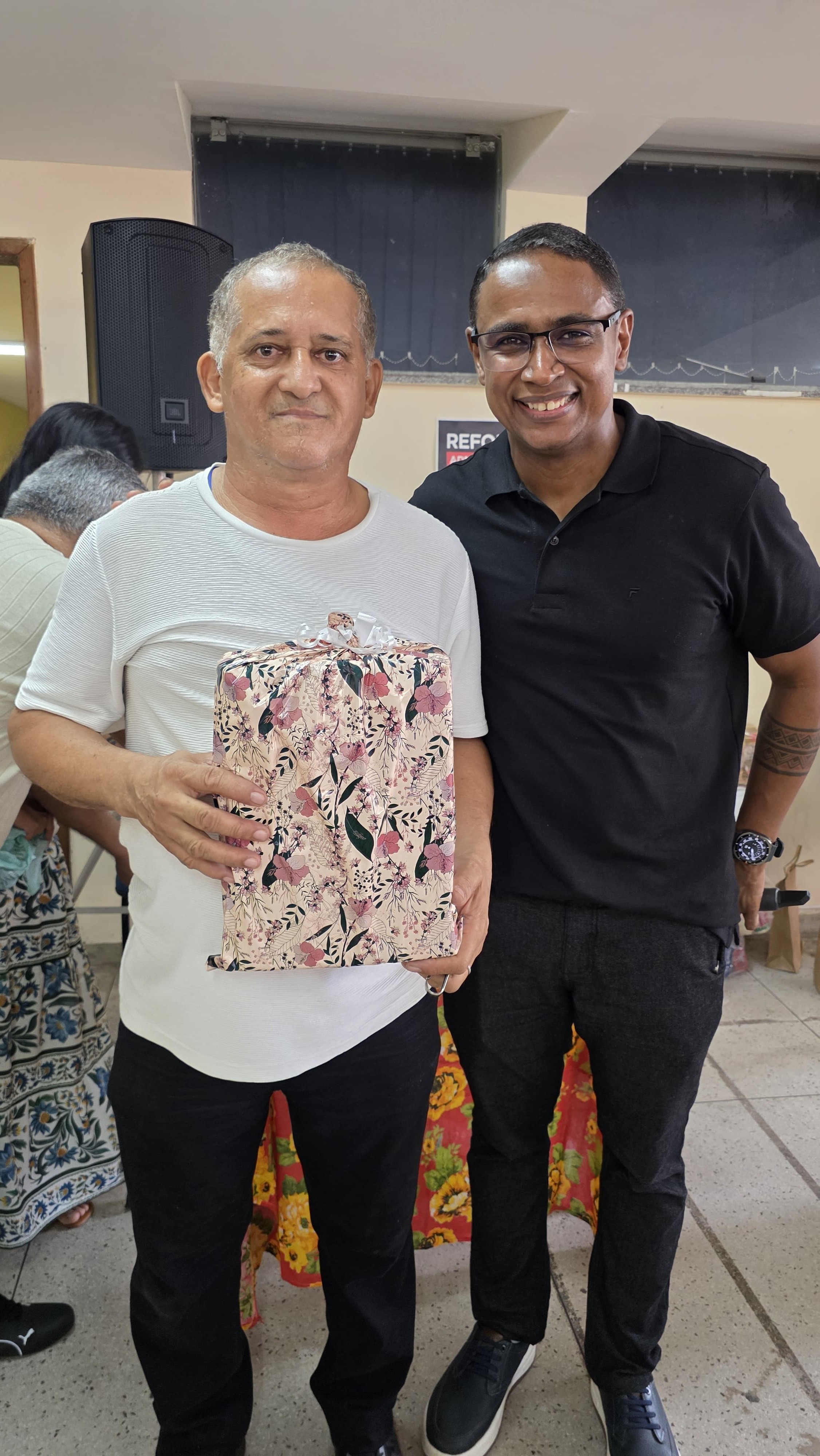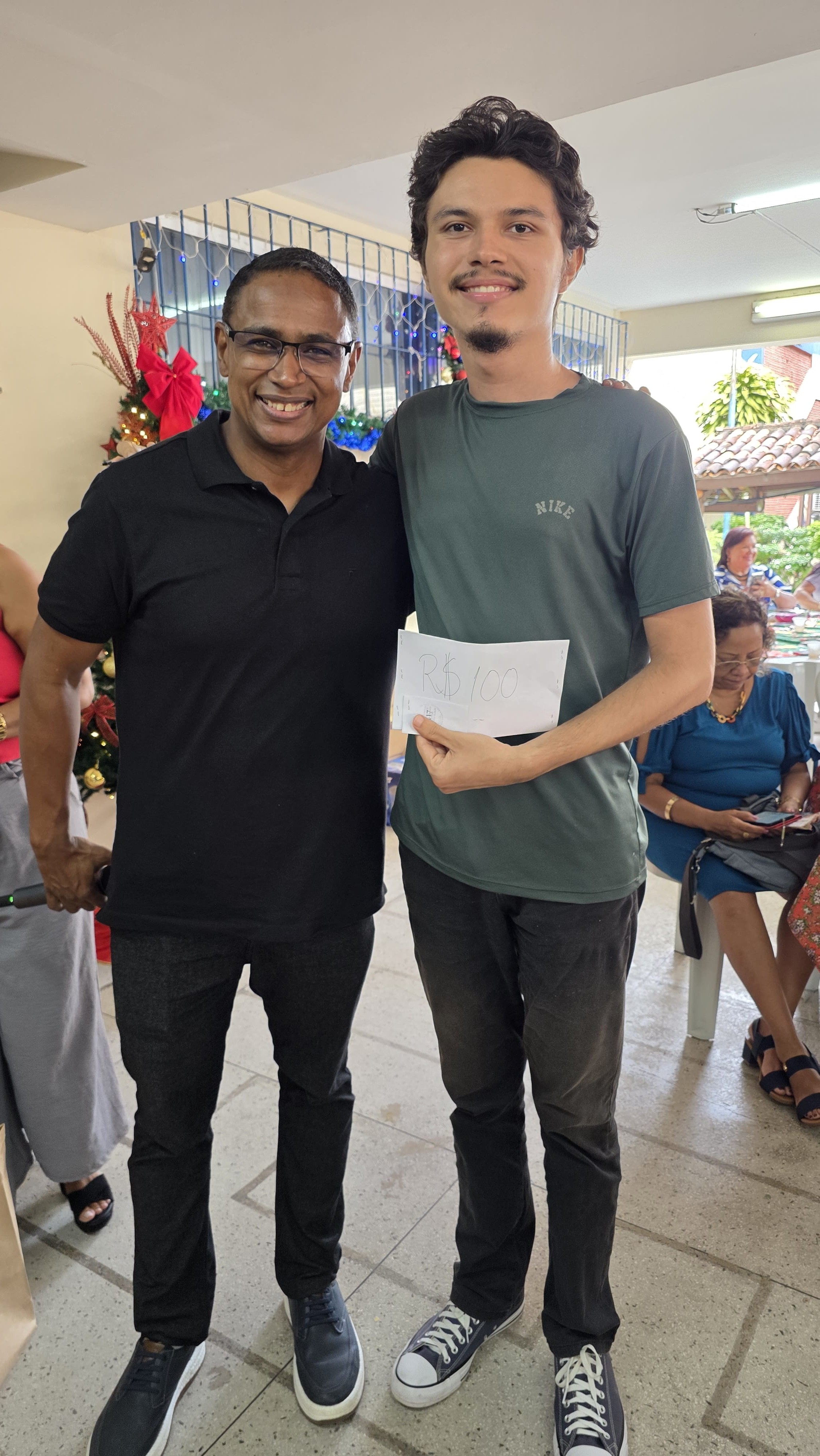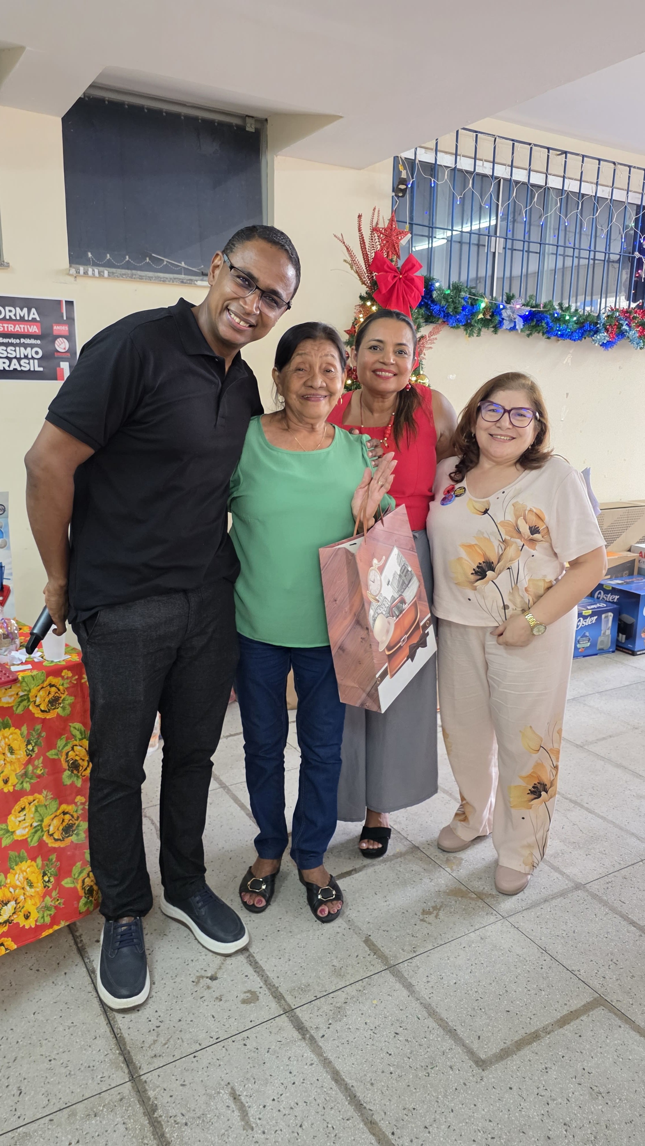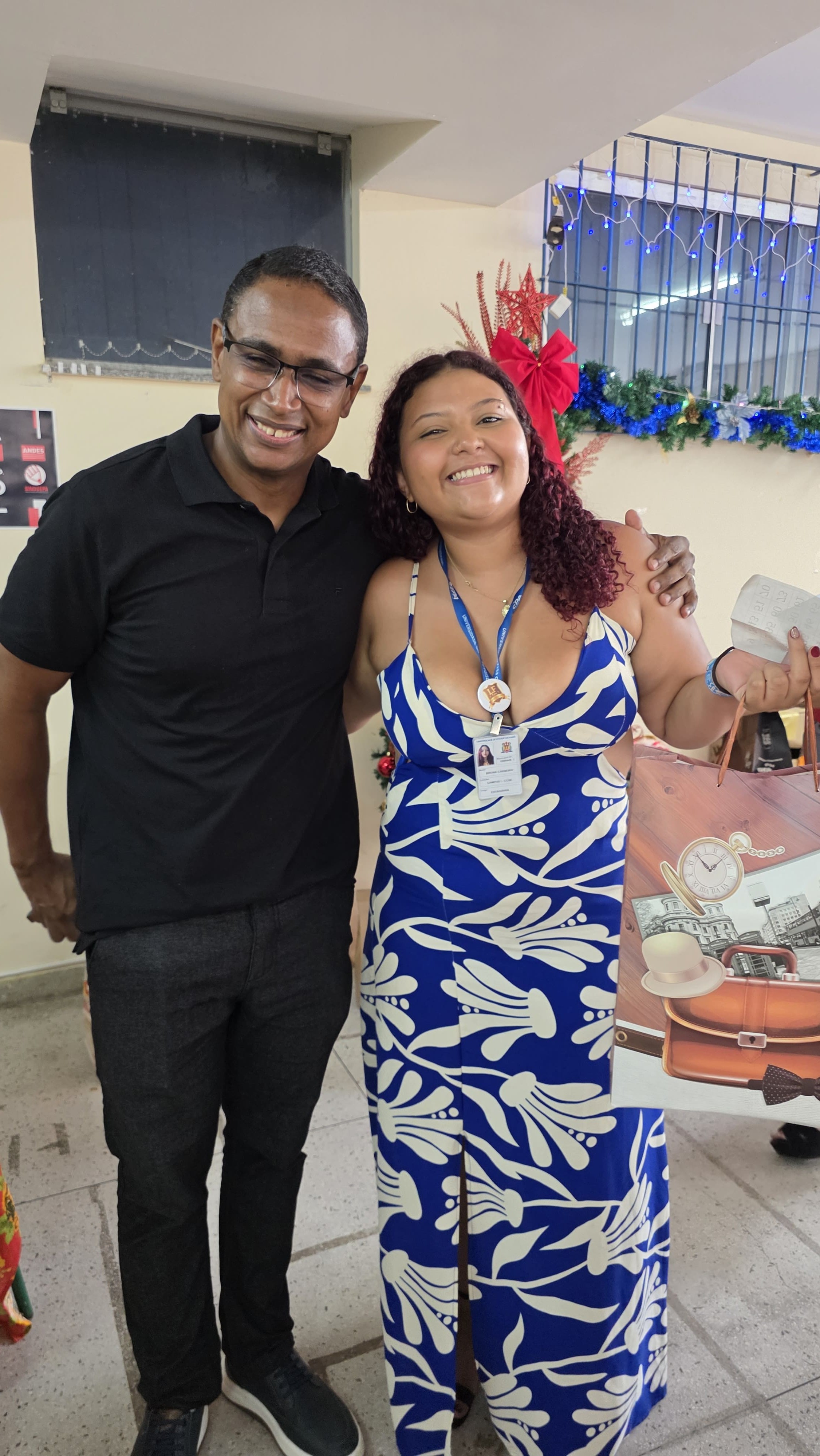 O espírito de colaboração e unidade se fez presente durante a celebração de fim de ano do Centro de Ciências Sociais e Educação (CCSE) da Universidade do Estado do Pará (Uepa). A festa se materializou da cooperação entre todos os setores, que providenciaram um farta ceia colaborativa, e diversos parceiros, que doaram brindes e valores em dinheiro para as brincadeiras e sorteios natalinos. A direção do Centro coordenou os esforços e se fez presente durante toda a comemoração, sendo o próprio diretor, Frederico Bicalho, o chamador de bingo e animador. O ex-diretor, Anderson Maia, também participou da festa, que teve ainda a presença do reitor da Uepa, Clay Chagas, do pró-reitor de Gestão, Carlos Capela, e da pró-reitora de Graduação, Acylena Coelho.