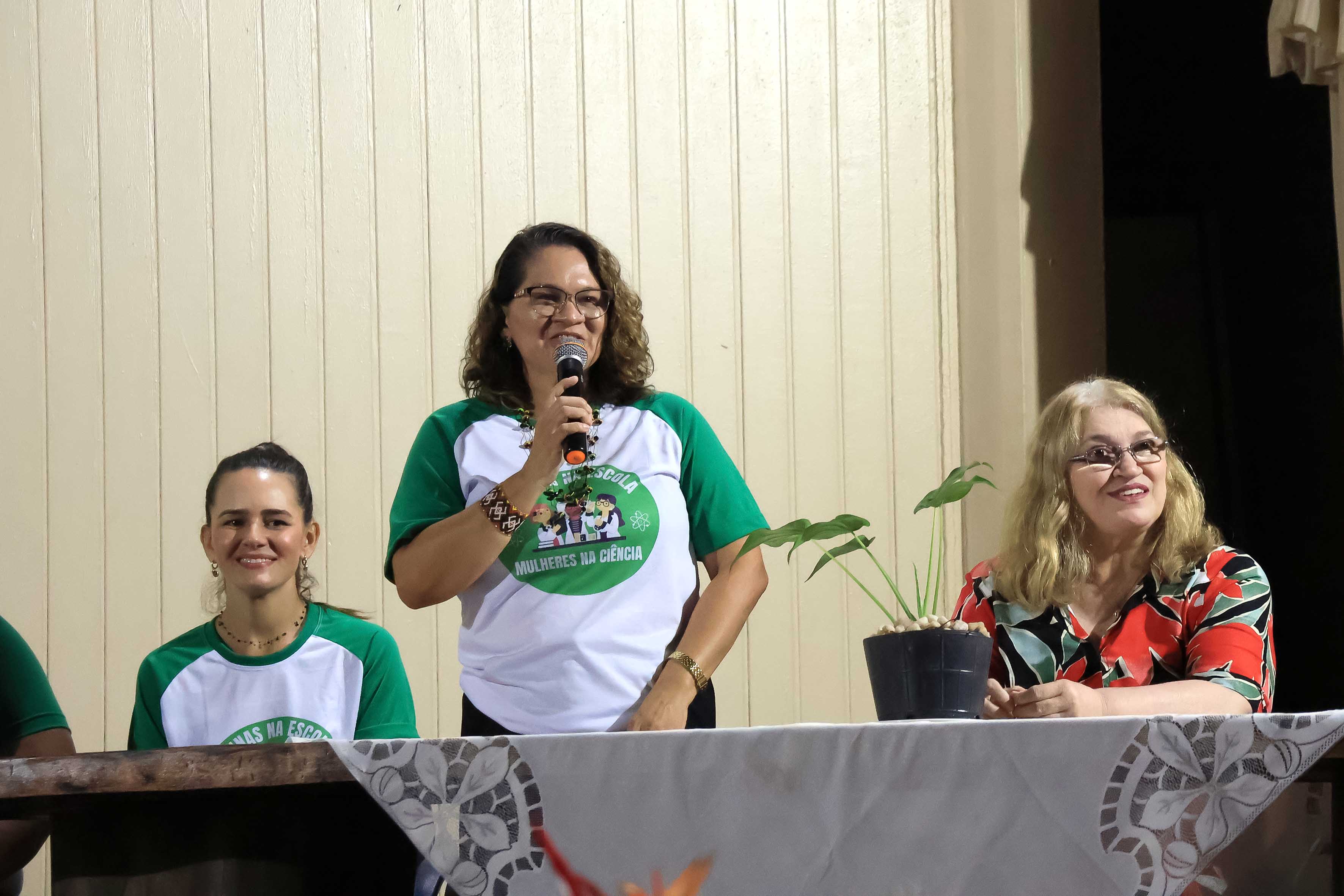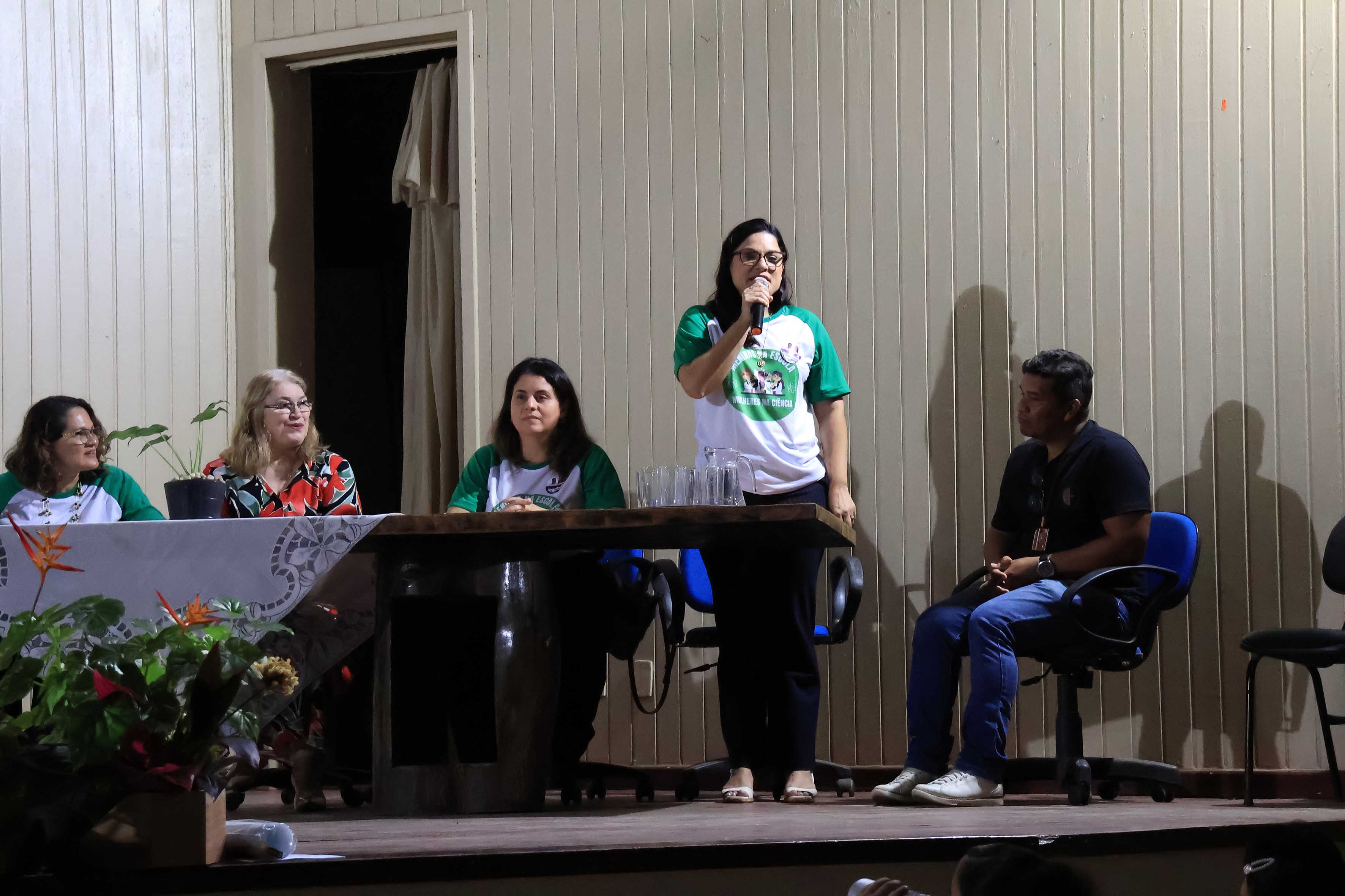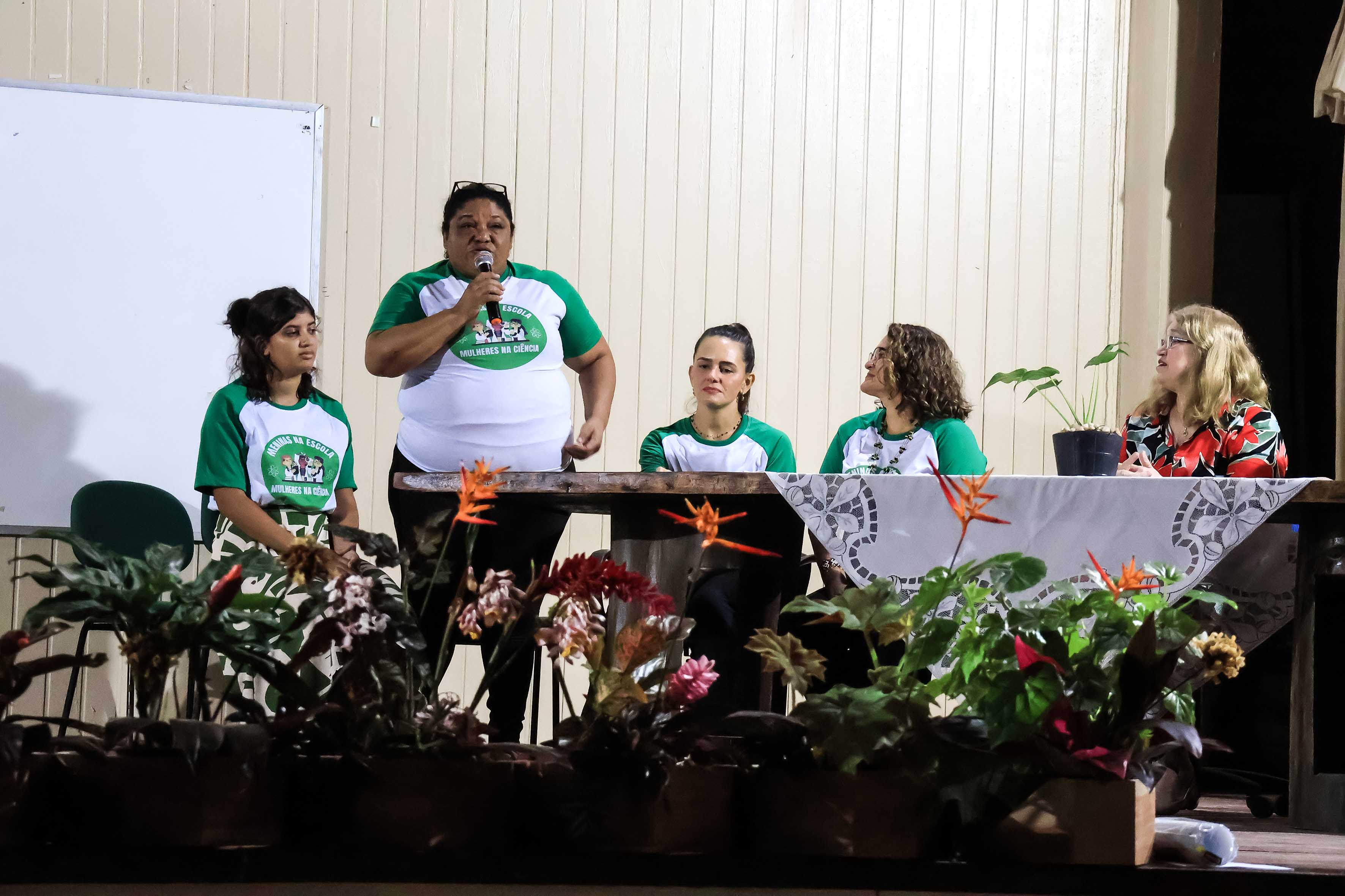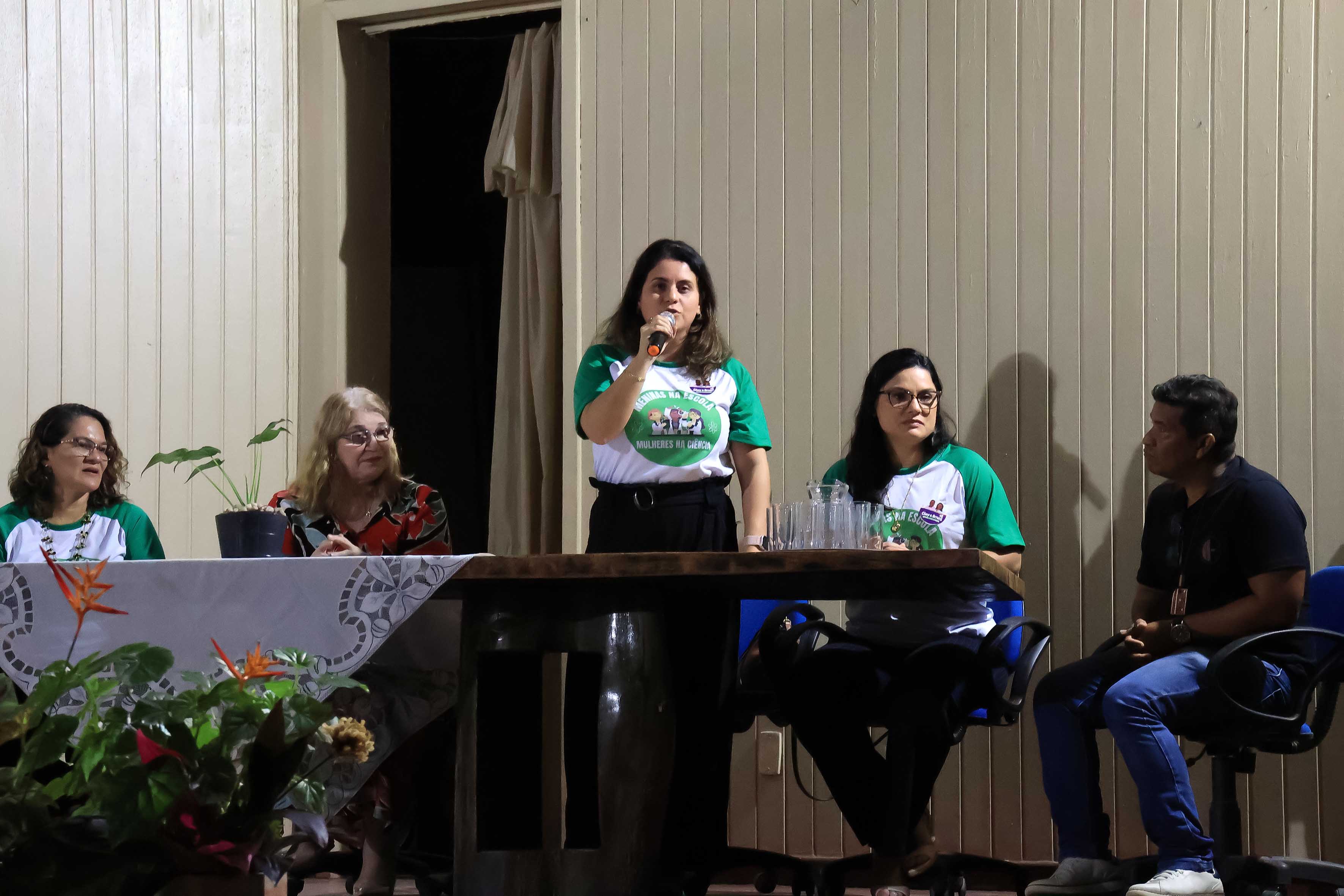 A mesa de abertura contou com a participação da coordenadora do projeto, professora Lana Macedo, da coordenadora do campus da Uepa Ananindeua, professora Camila Claíde, das professoras Erica Feio Carneiro Nunes e Francinete Castilho, que abordaram a presença feminina nas ciências.