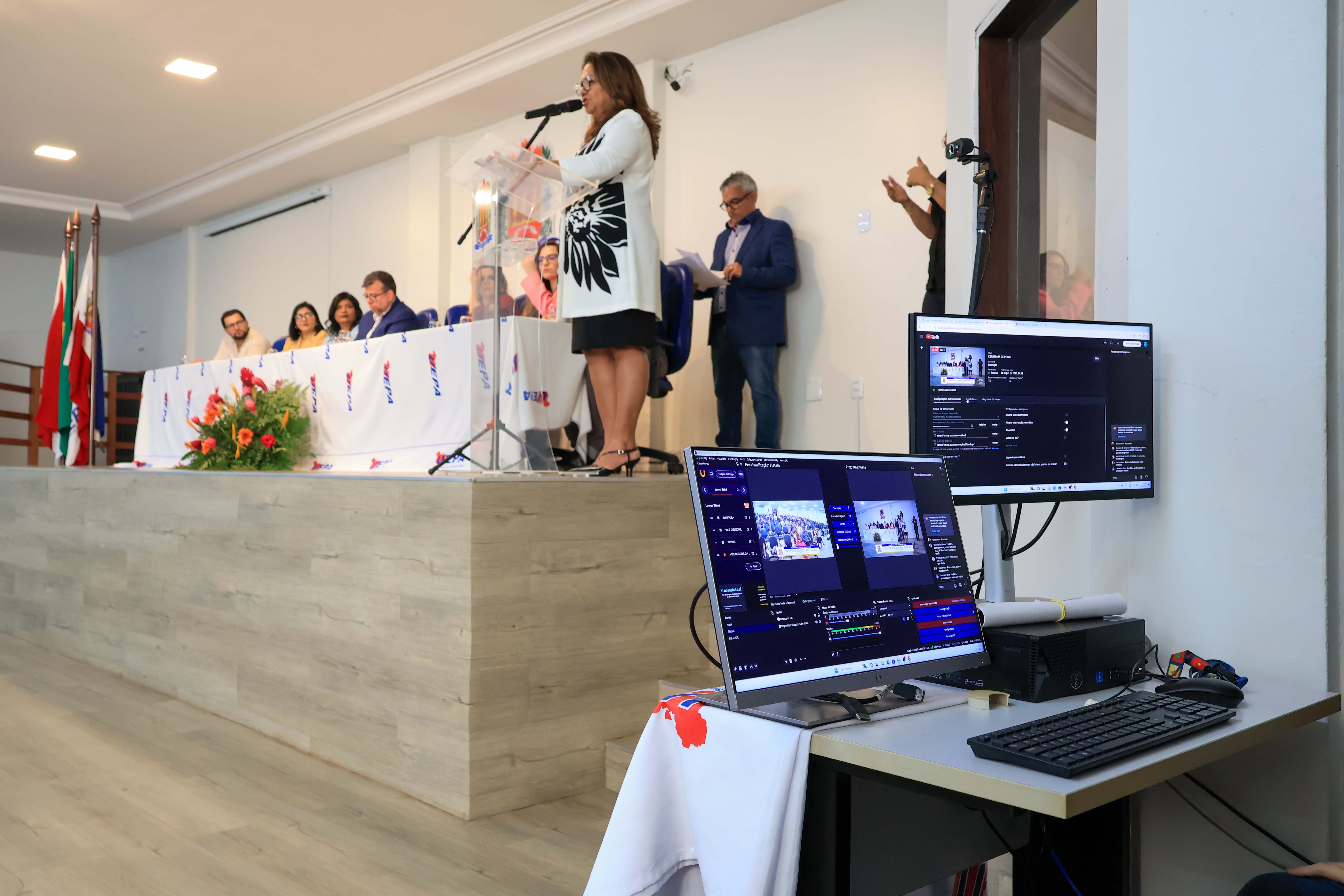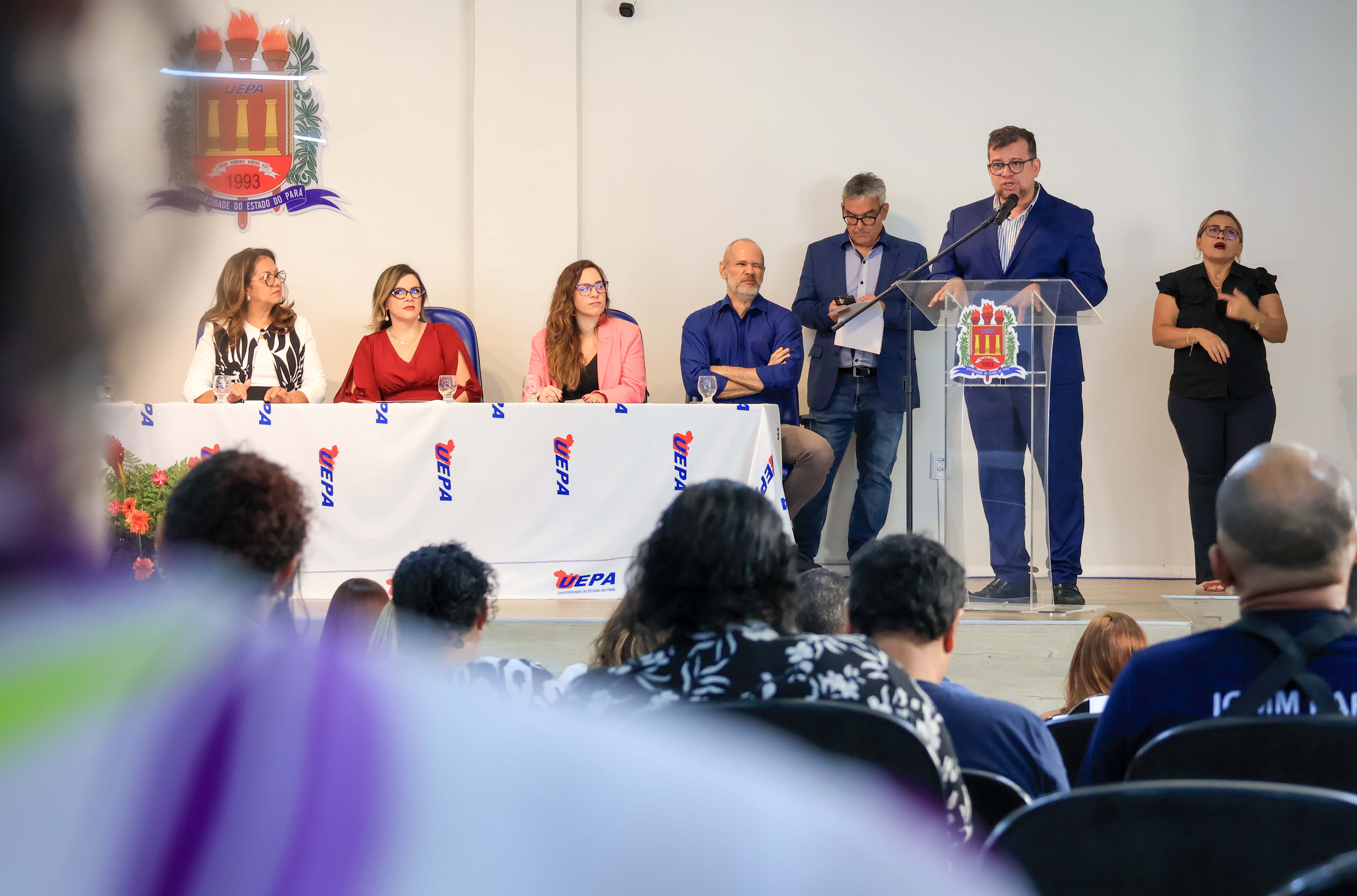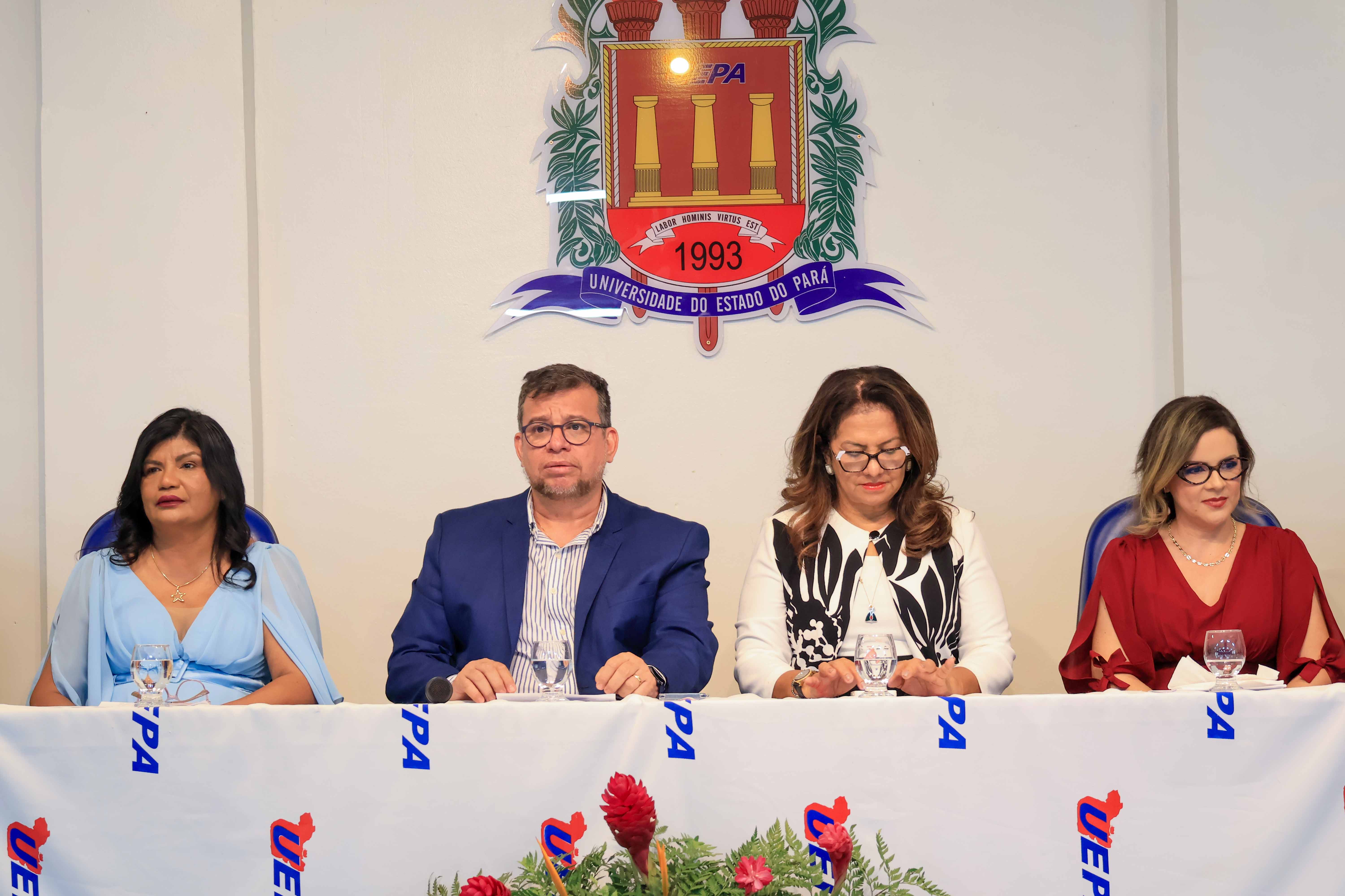 O reitor Clay Chagas é a vice-reitora Ilma Pastana estiveram nesta quarta,11, no auditório do campus V da universidade para a cerimônia de posse da nova diretoria do Centro de Ciências Naturais e Tecnologia (CCNT). A nova diretora, Elzelis Muller, e a vice-diretora, Vitória Seixas, reafirmaram o compromisso com a formação acadêmica.