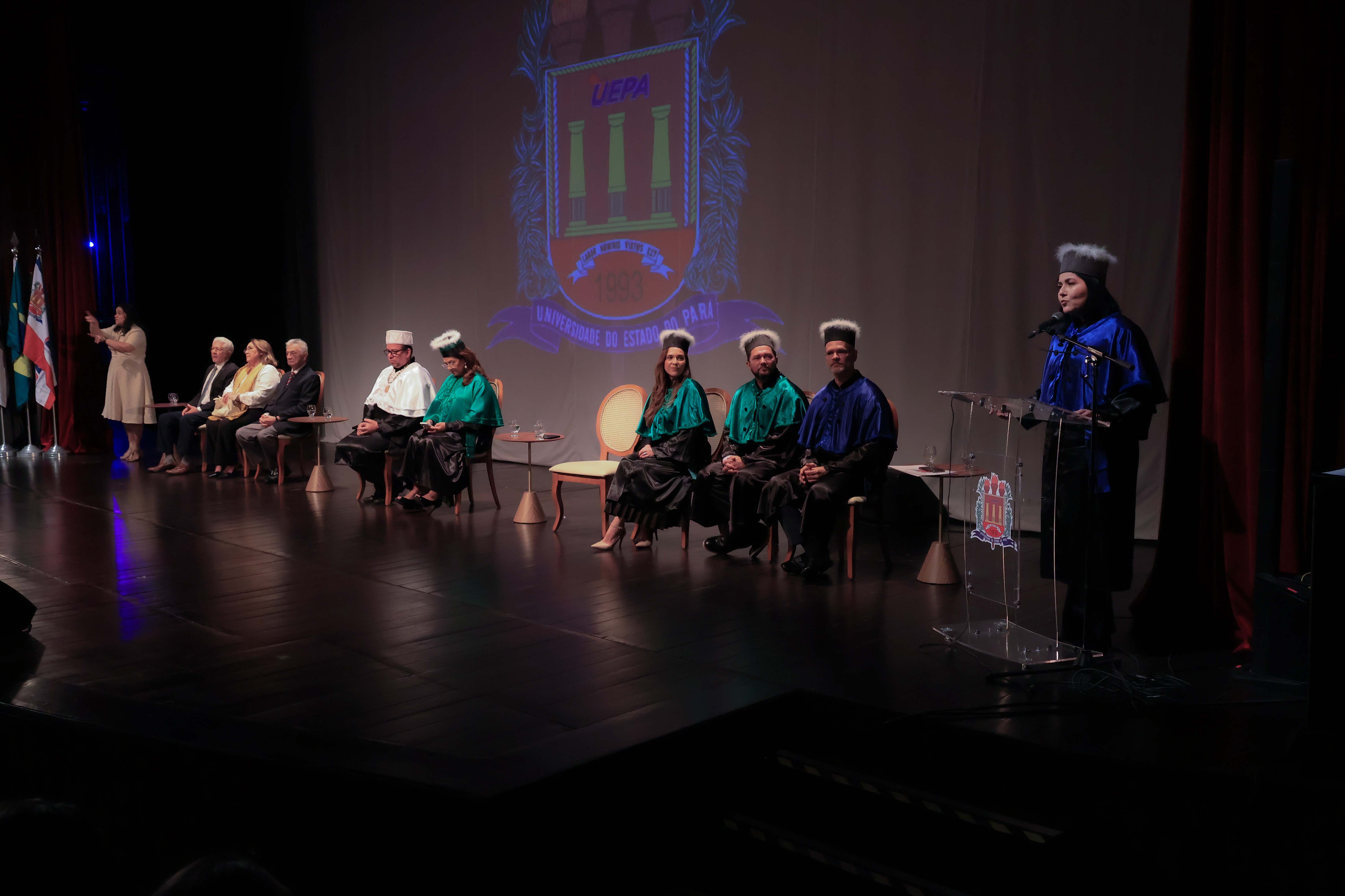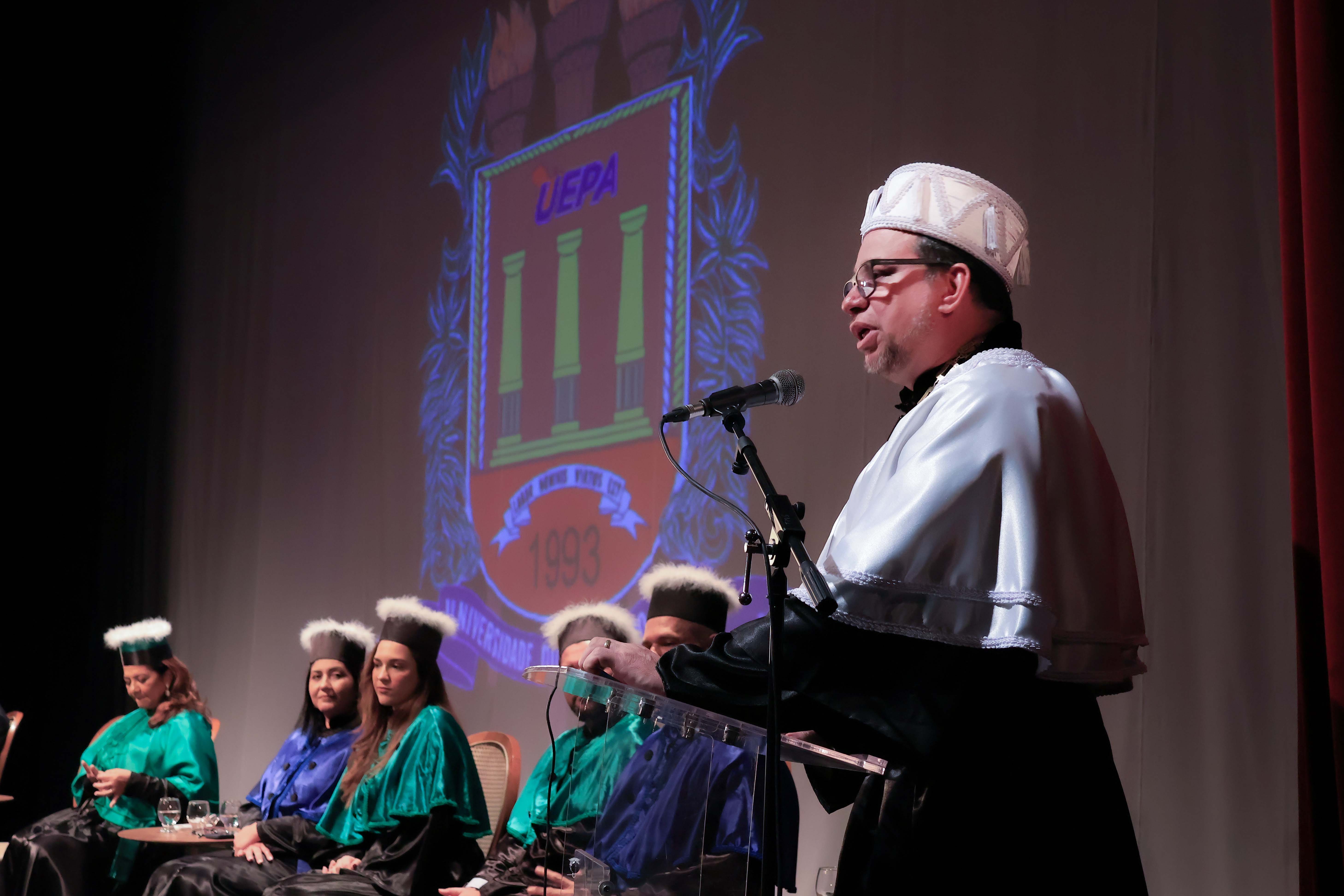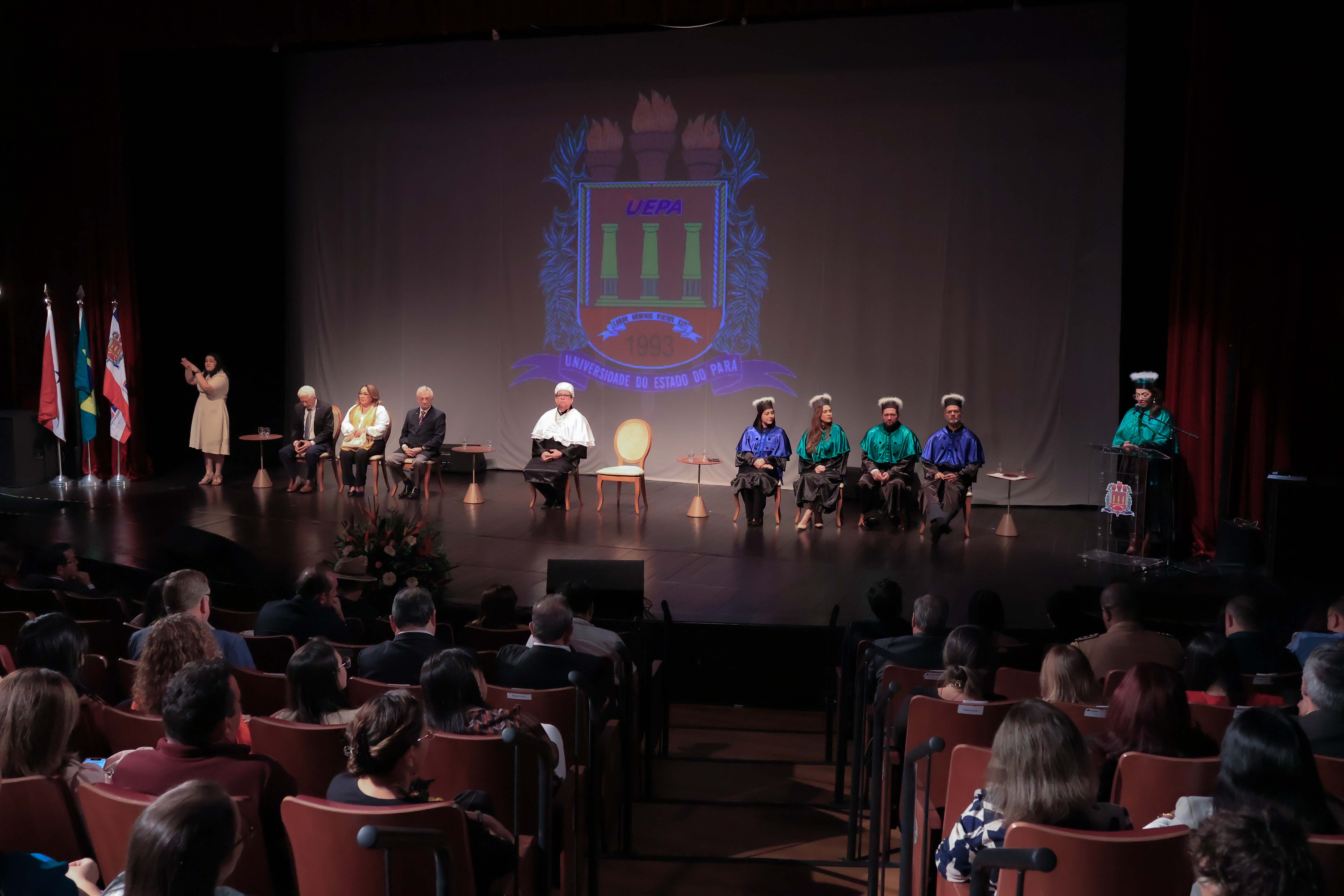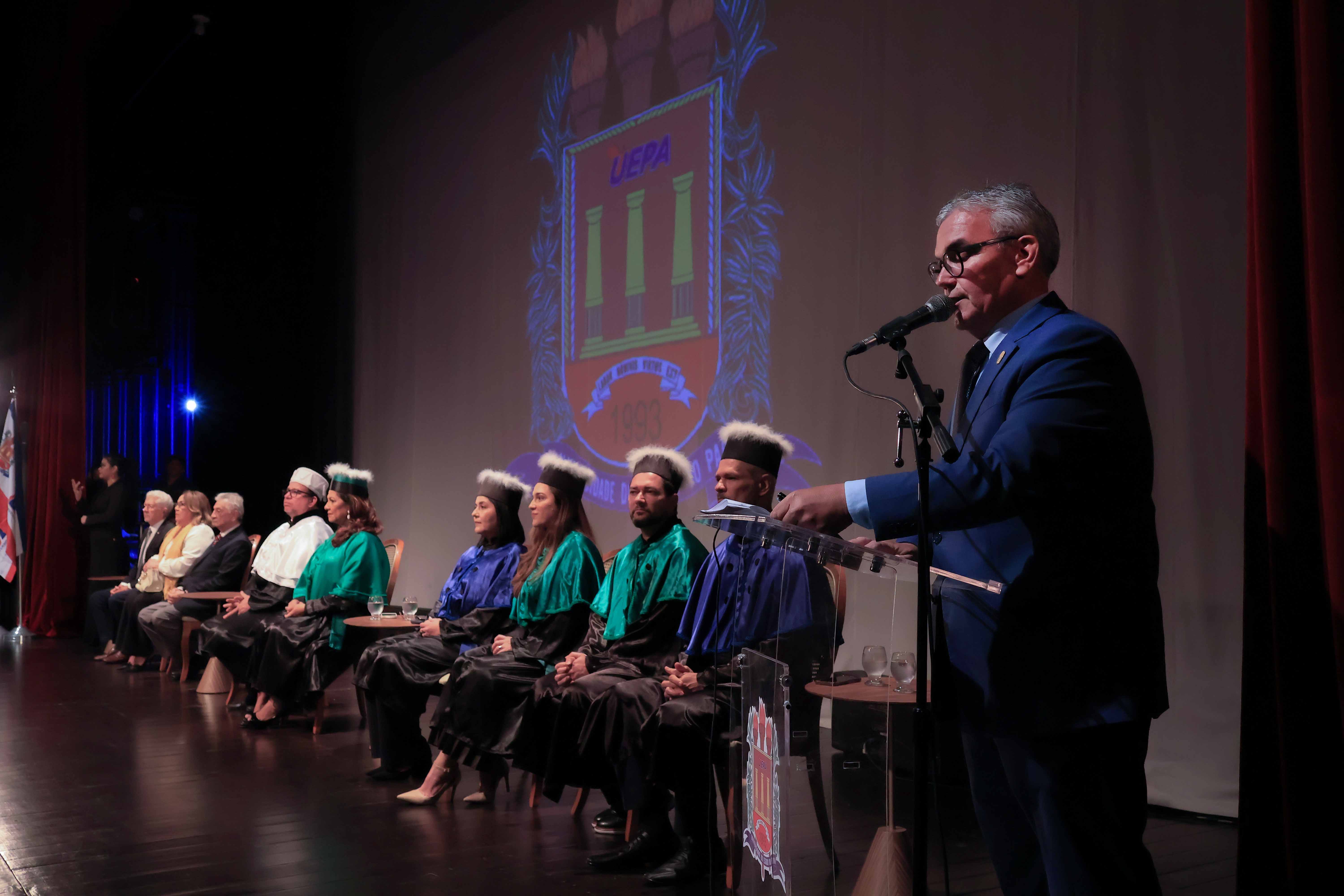 Em um evento carregado de emoção, simbolismo acadêmico e reafirmação do compromisso com a educação pública de qualidade, a Universidade do Estado do Pará (Uepa) reconduziu oficialmente, nesta quarta-feira, 4, o reitor Clay Chagas e a vice-reitora Ilma Pastana para mais um mandato à frente da instituição. A cerimônia foi realizada no Teatro Margarida Schivasappa, em Belém, e reuniu membros da comunidade acadêmica, ex-reitores, autoridades e representantes dos campi do interior.