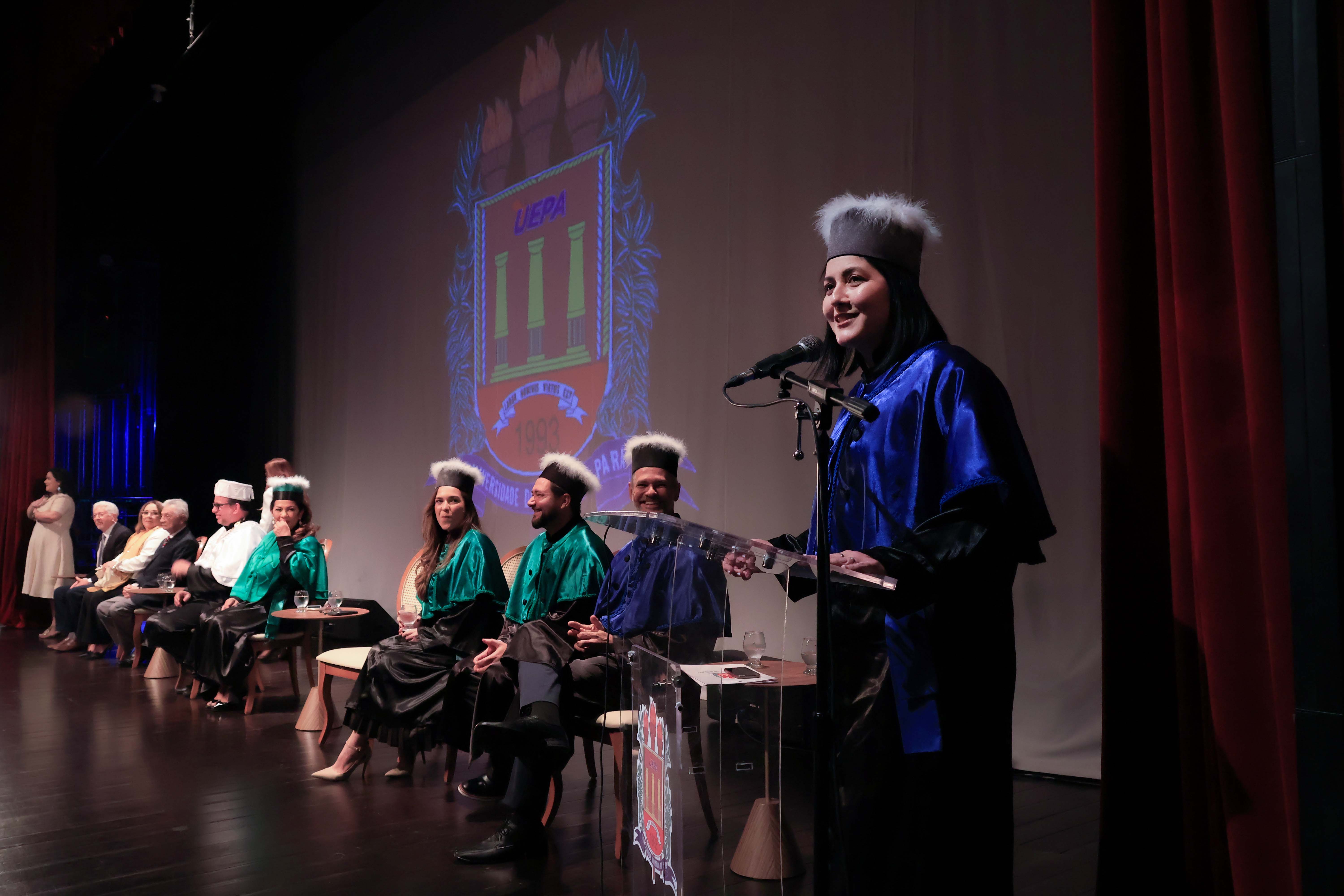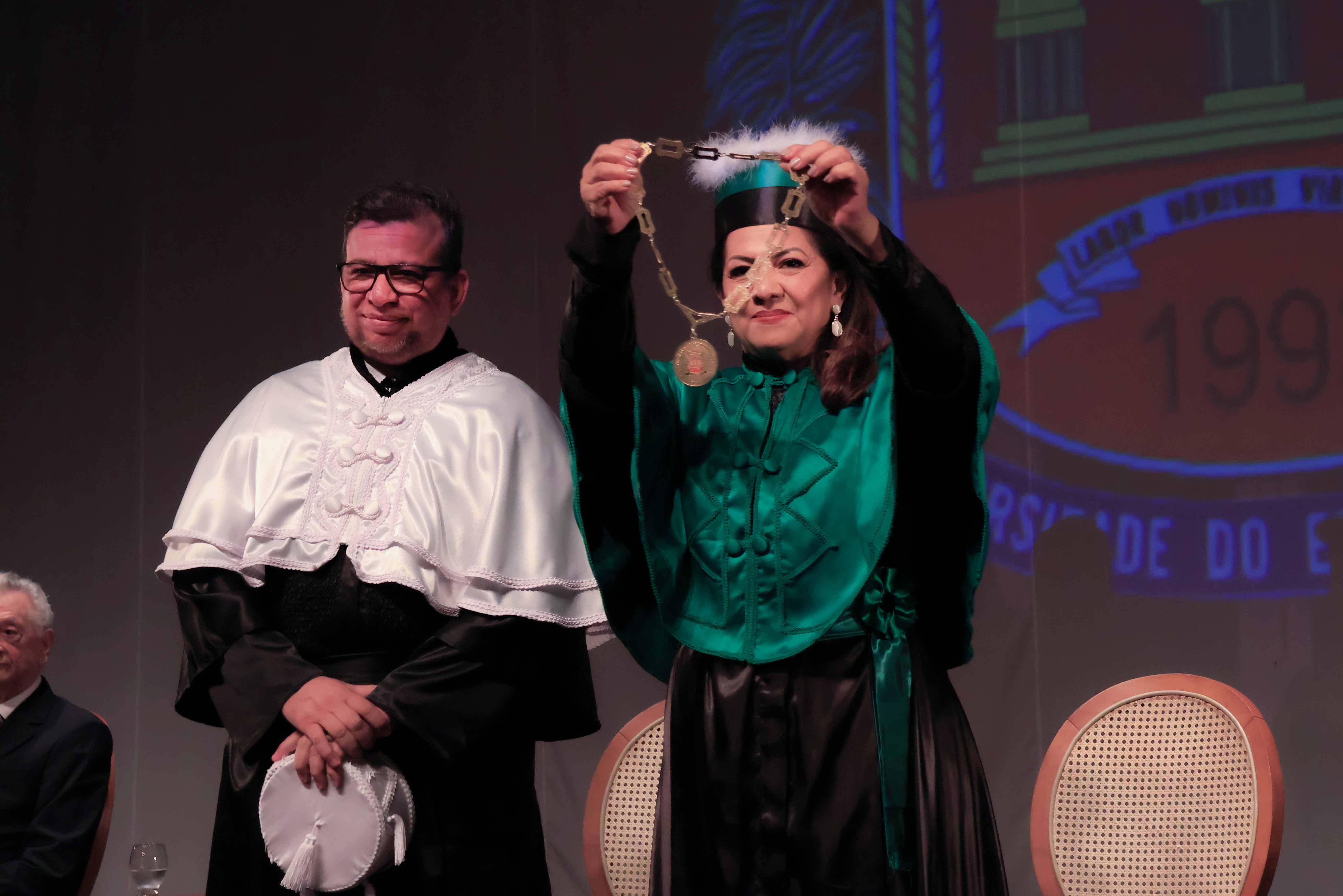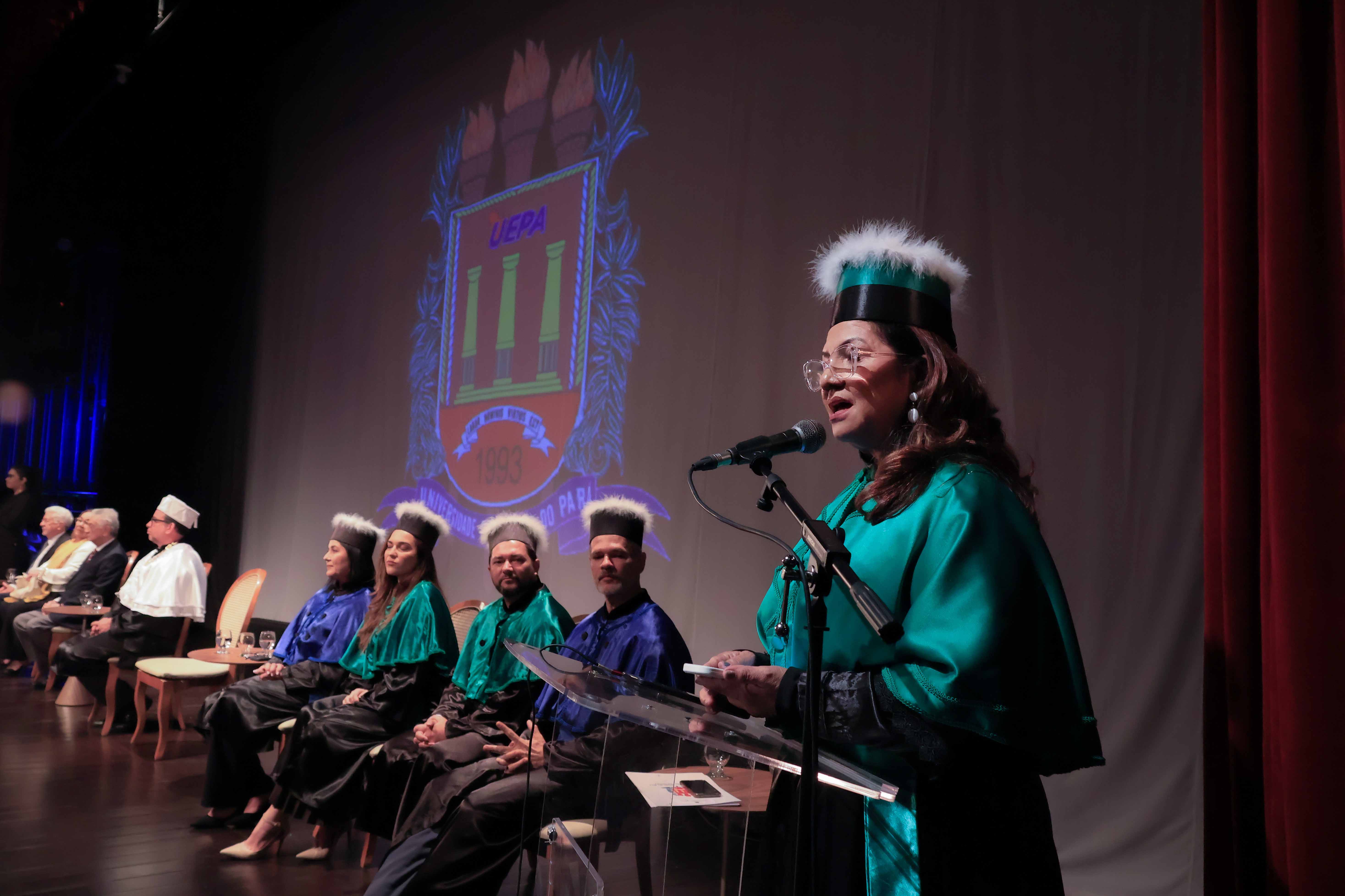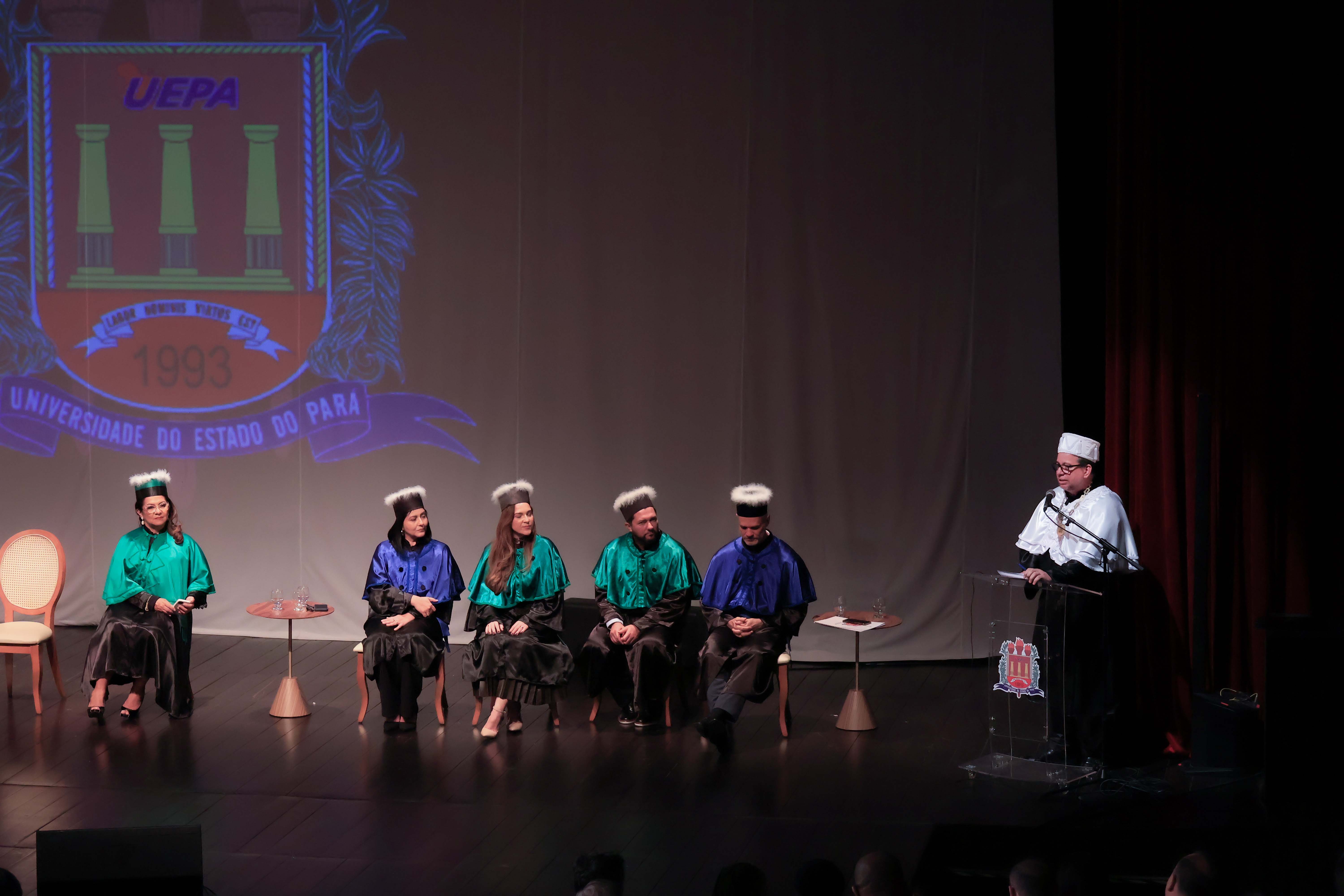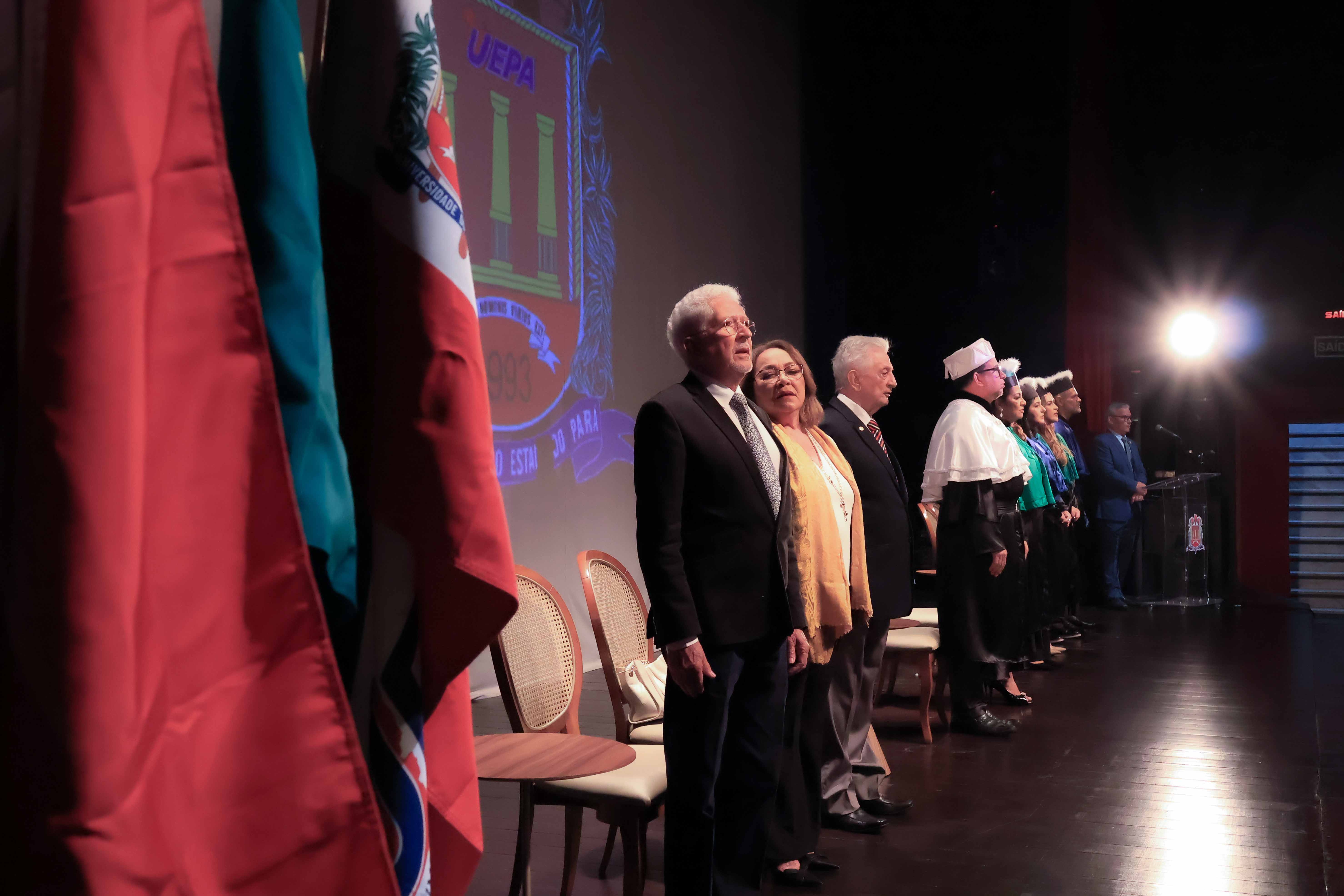 Em um evento carregado de emoção, simbolismo acadêmico e reafirmação do compromisso com a educação pública de qualidade, a Universidade do Estado do Pará (Uepa) reconduziu oficialmente, nesta quarta-feira, 4, o reitor Clay Chagas e a vice-reitora Ilma Pastana para mais um mandato à frente da instituição. A cerimônia foi realizada no Teatro Margarida Schivasappa, em Belém, e reuniu membros da comunidade acadêmica, ex-reitores, autoridades e representantes dos campi do interior.