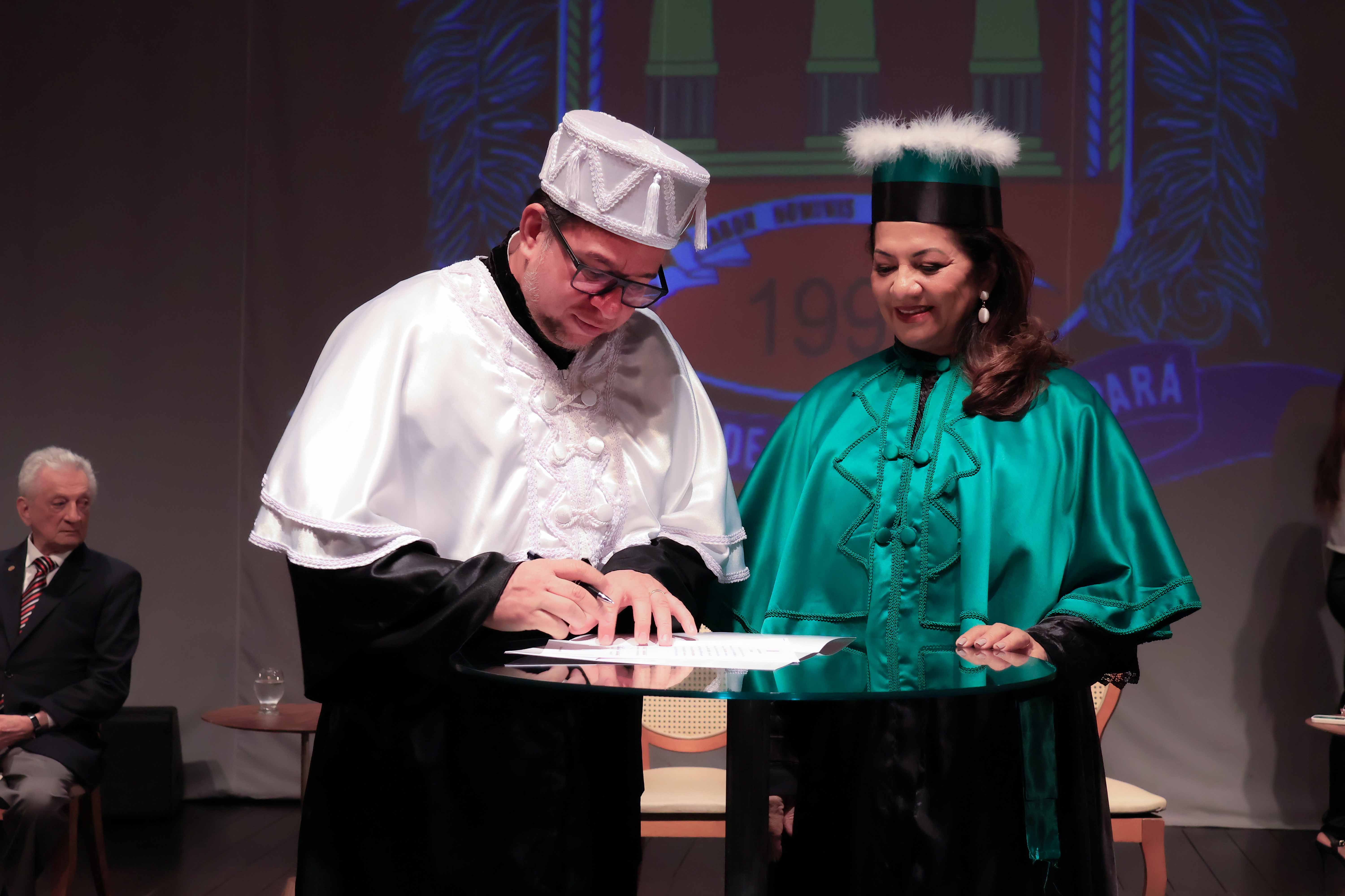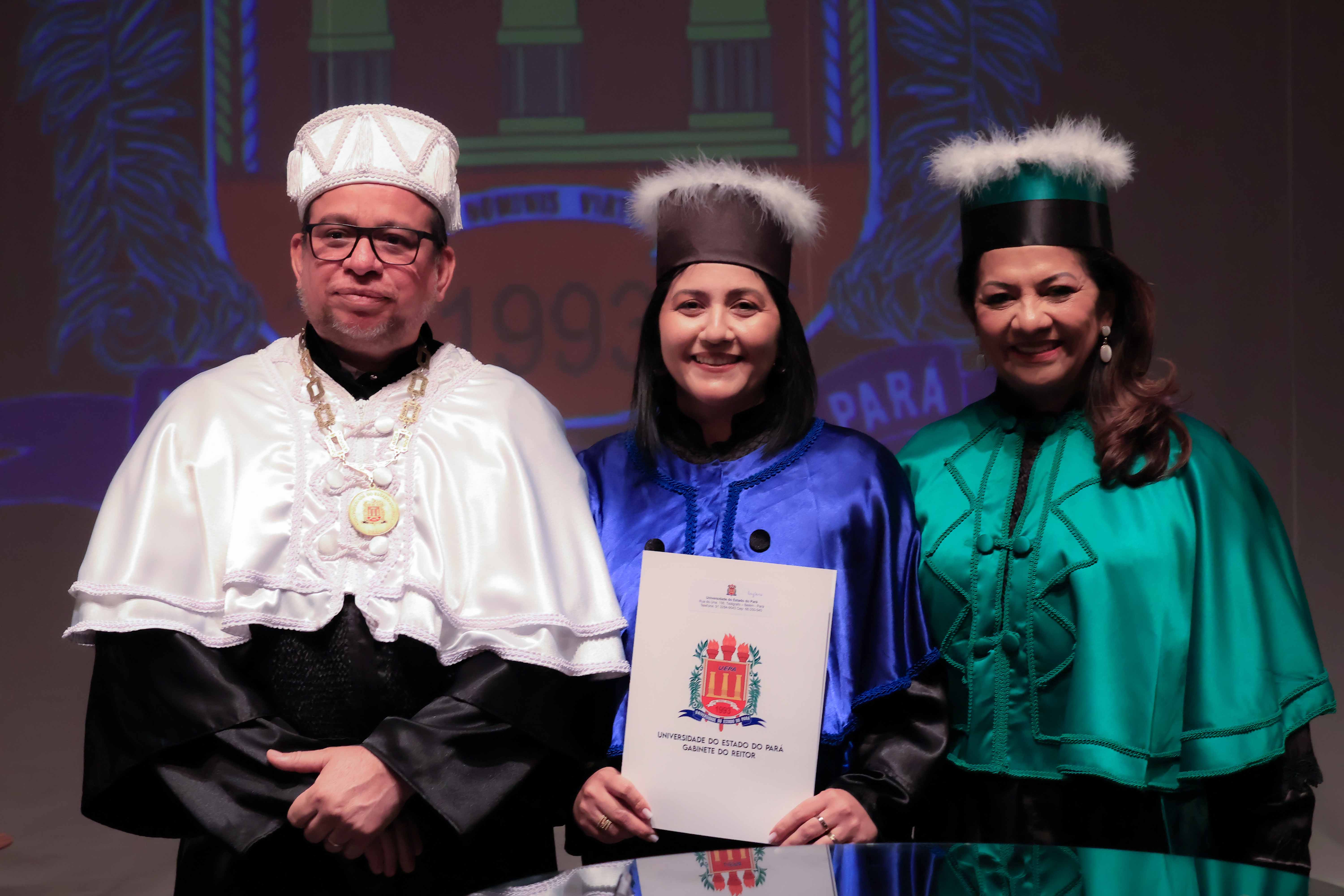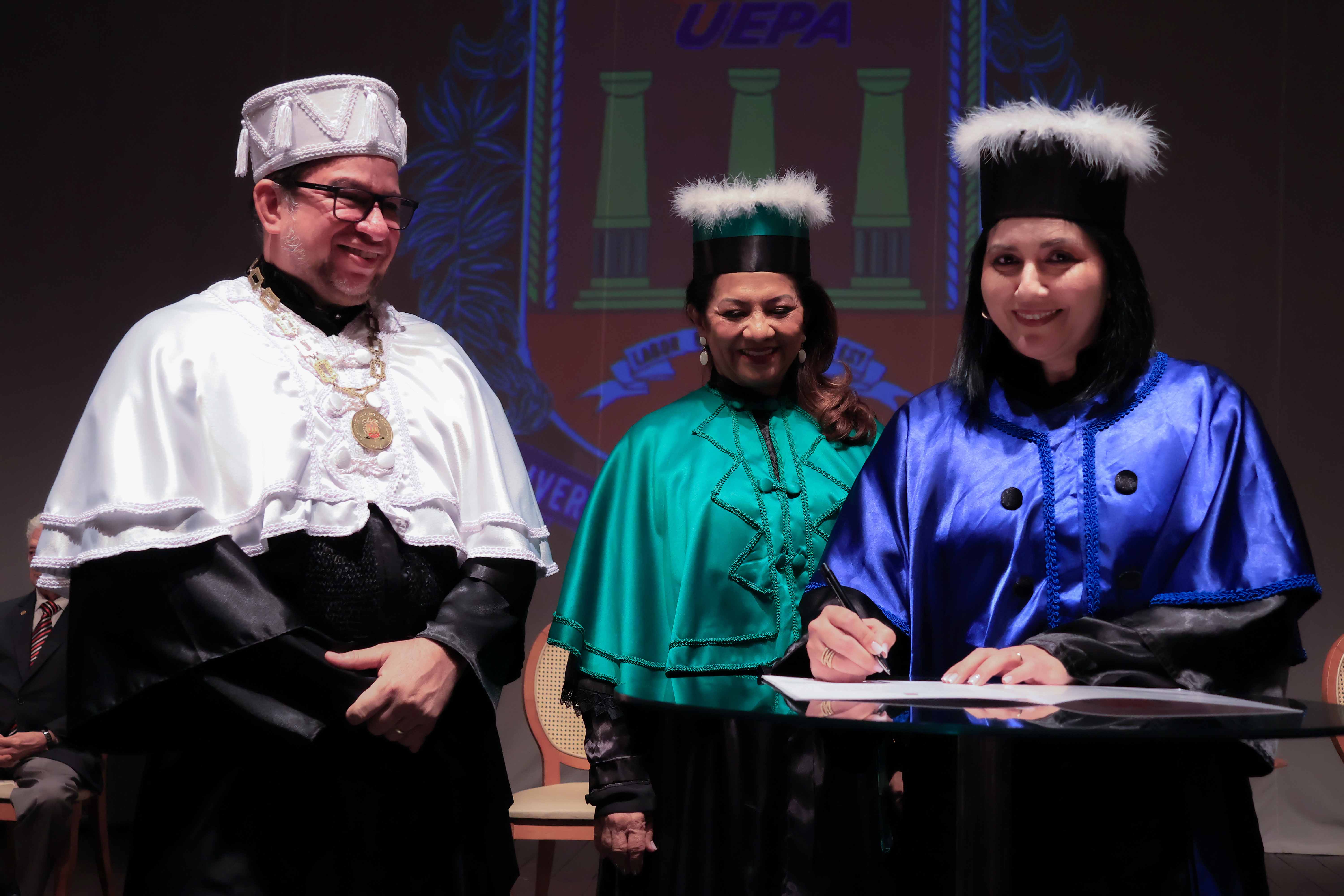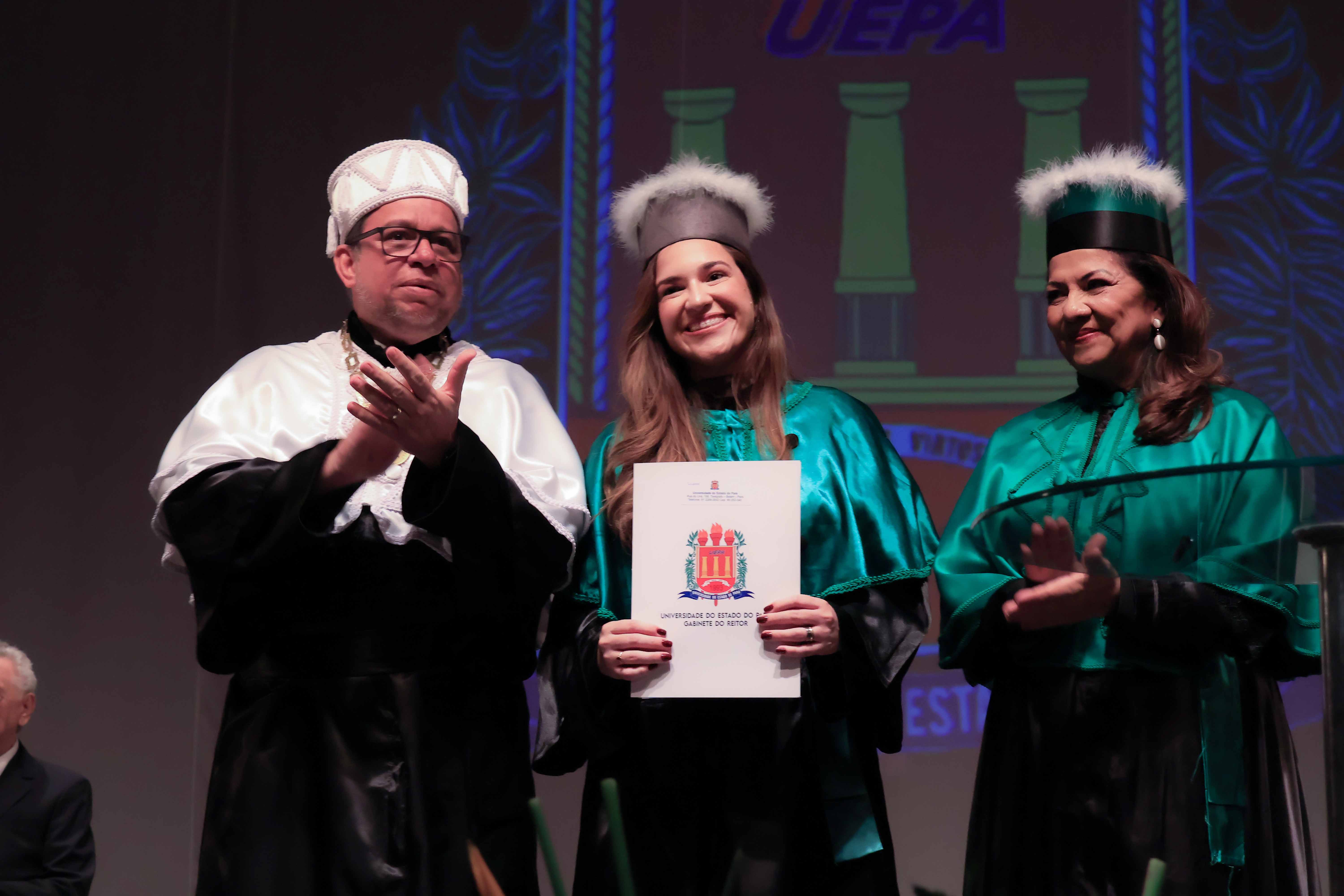 Em um evento carregado de emoção, simbolismo acadêmico e reafirmação do compromisso com a educação pública de qualidade, a Universidade do Estado do Pará (Uepa) reconduziu oficialmente, nesta quarta-feira, 4, o reitor Clay Chagas e a vice-reitora Ilma Pastana para mais um mandato à frente da instituição. A cerimônia foi realizada no Teatro Margarida Schivasappa, em Belém, e reuniu membros da comunidade acadêmica, ex-reitores, autoridades e representantes dos campi do interior.