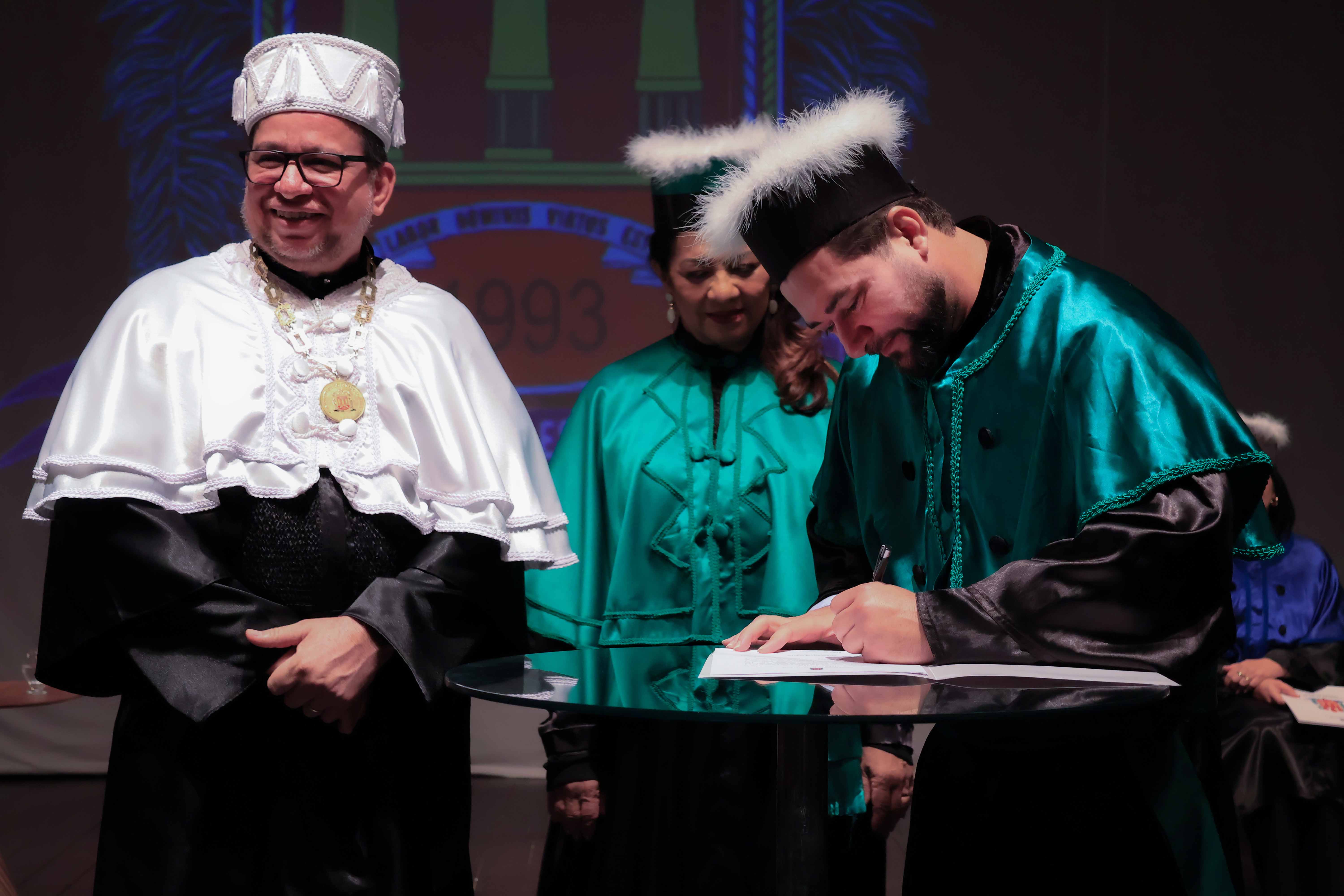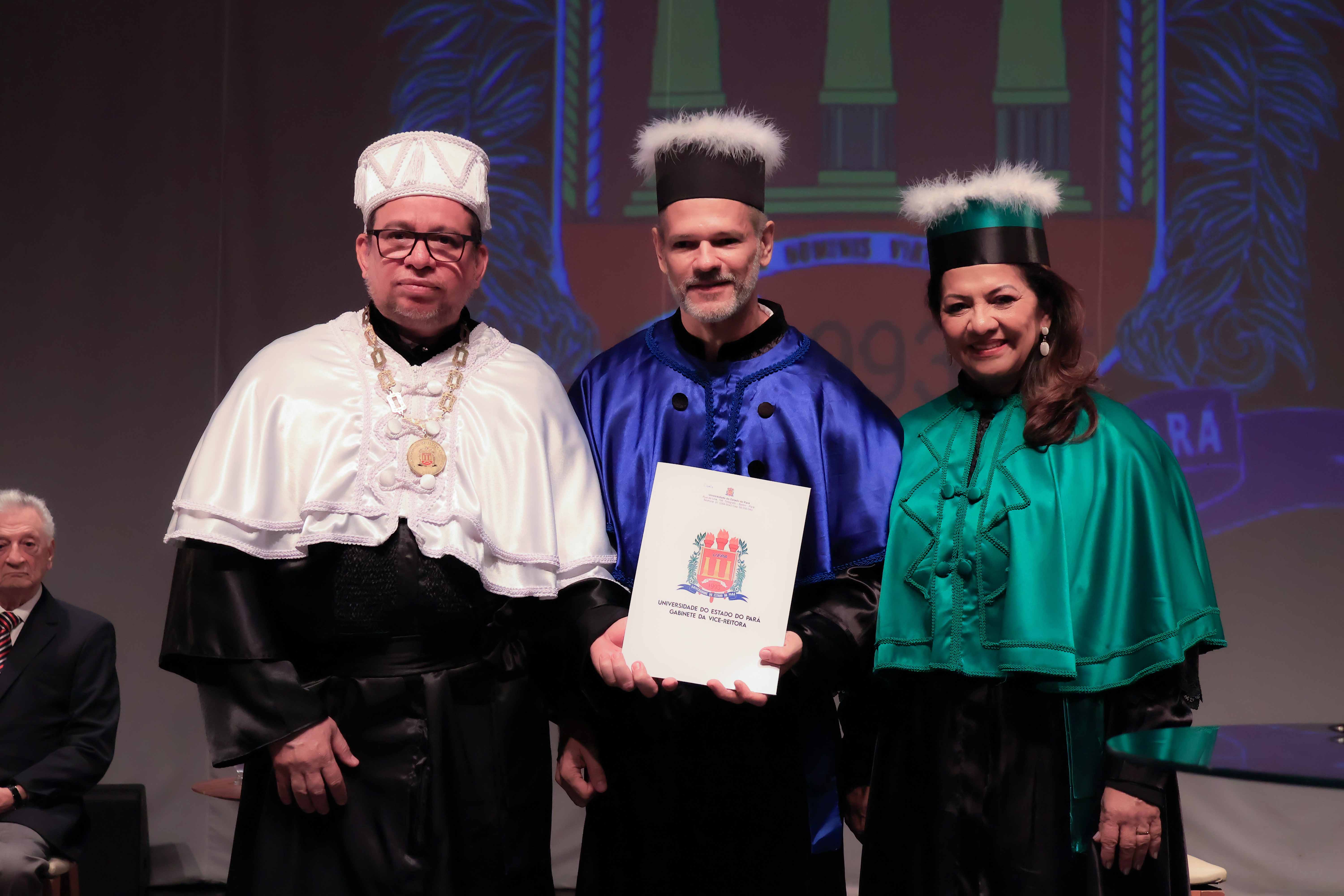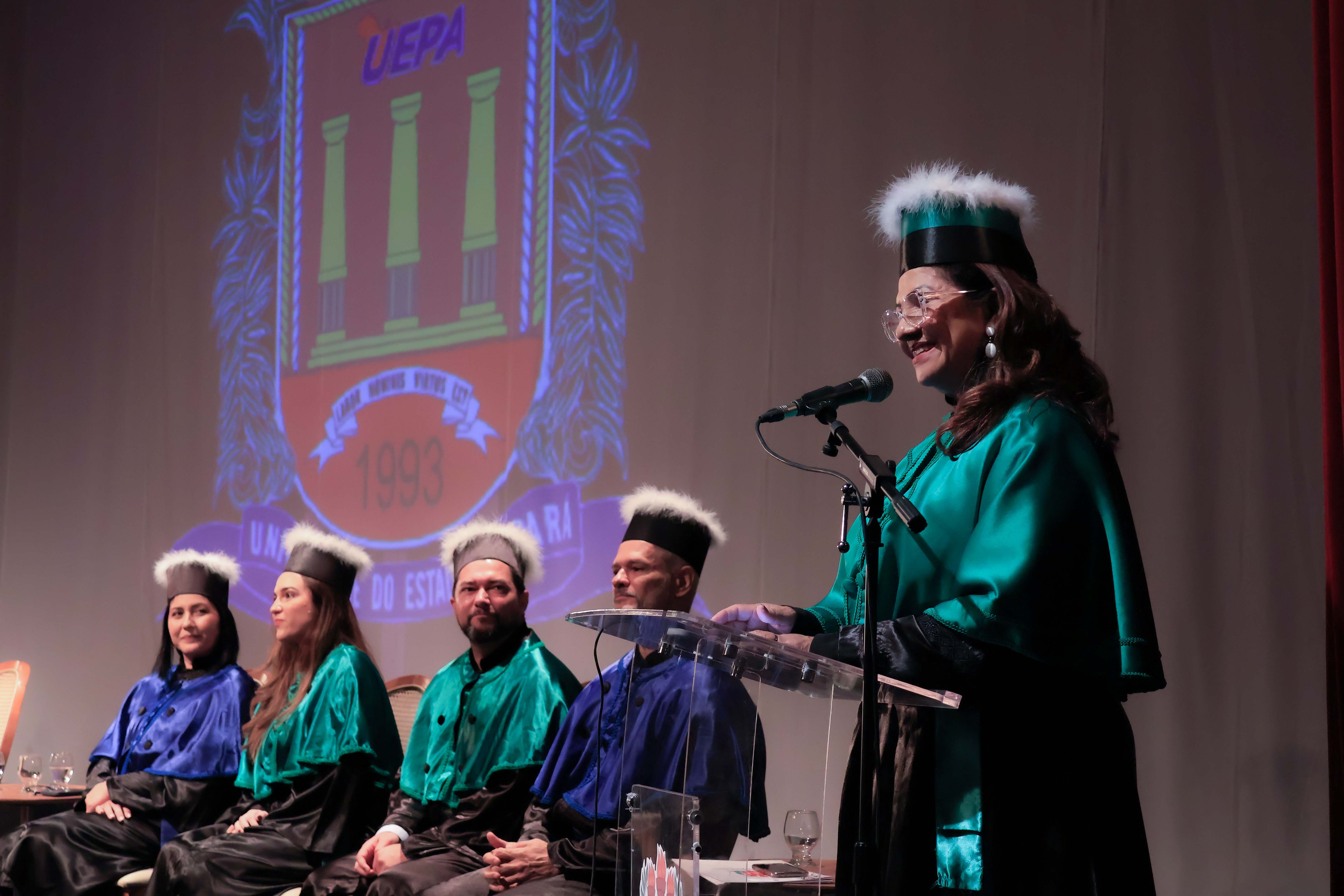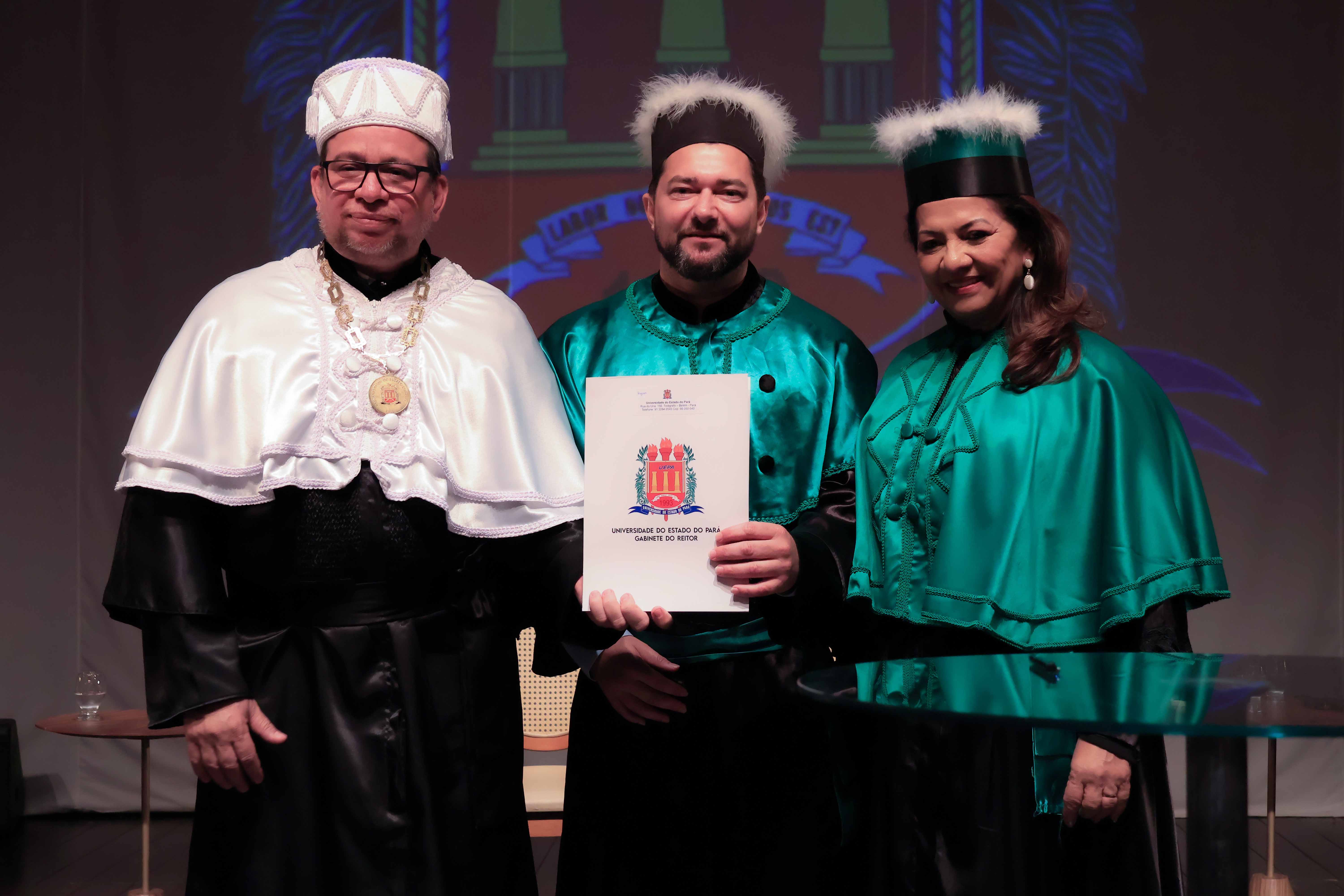 Em um evento carregado de emoção, simbolismo acadêmico e reafirmação do compromisso com a educação pública de qualidade, a Universidade do Estado do Pará (Uepa) reconduziu oficialmente, nesta quarta-feira, 4, o reitor Clay Chagas e a vice-reitora Ilma Pastana para mais um mandato à frente da instituição. A cerimônia foi realizada no Teatro Margarida Schivasappa, em Belém, e reuniu membros da comunidade acadêmica, ex-reitores, autoridades e representantes dos campi do interior.