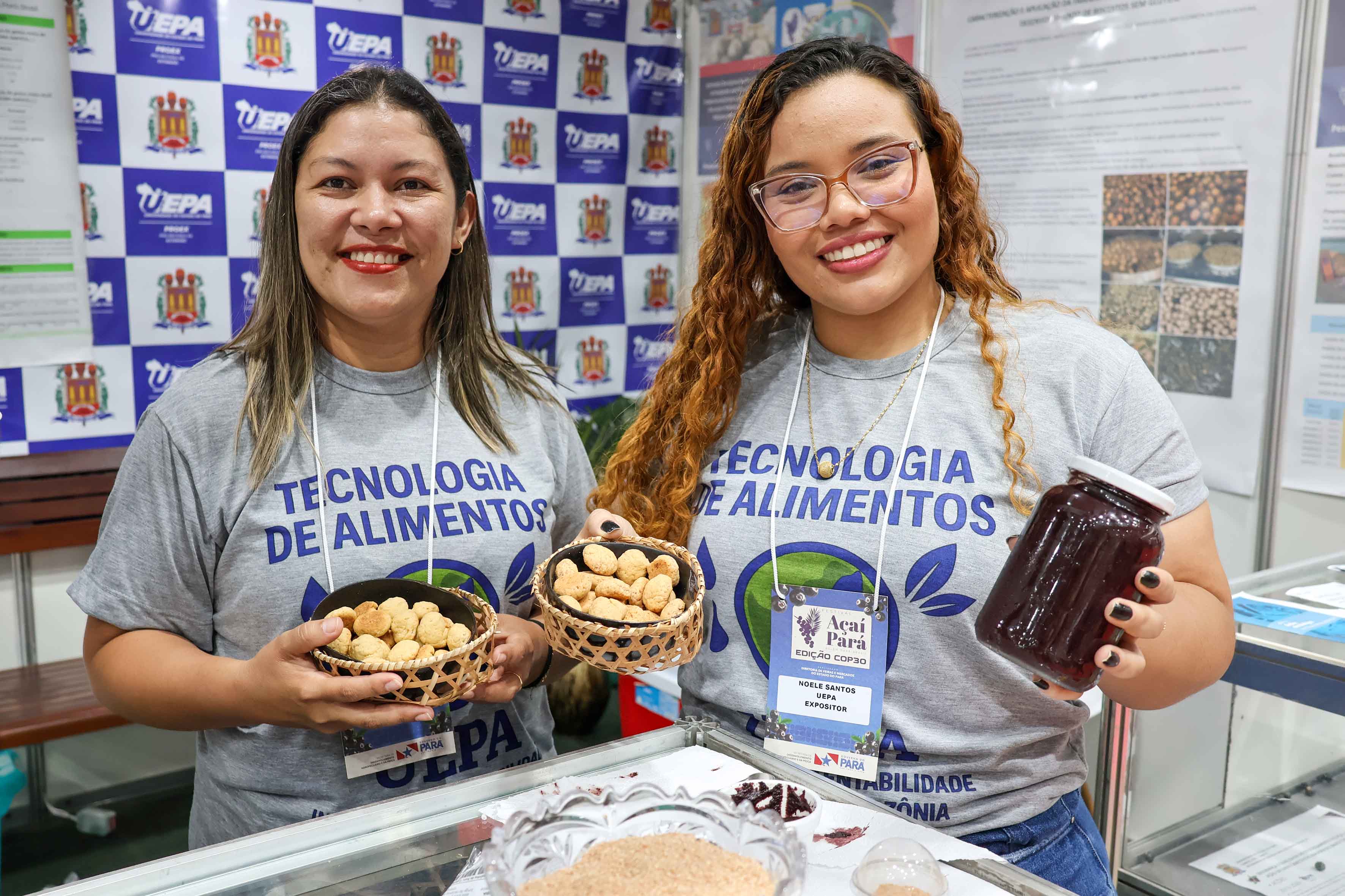 A geleia mista de açaí e o biscoito feito com farinha de açaí são exemplos trazidos pelas estudantes Noele Santos e Ana Elizabeth Oliveira, do curso de graduação da Uepa.