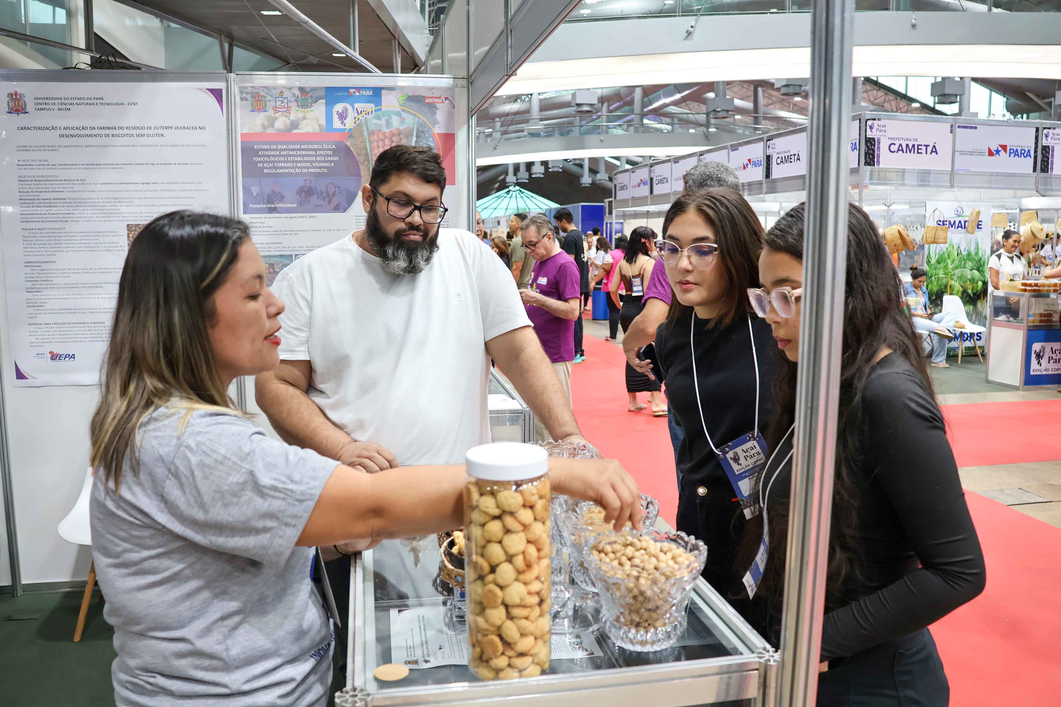 A Uepa também apresentou produtos inovadores relacionados ao açaí, e com o curso de Tecnologia de Alimentos, que levou a degustação de novos produtos derivados do fruto.