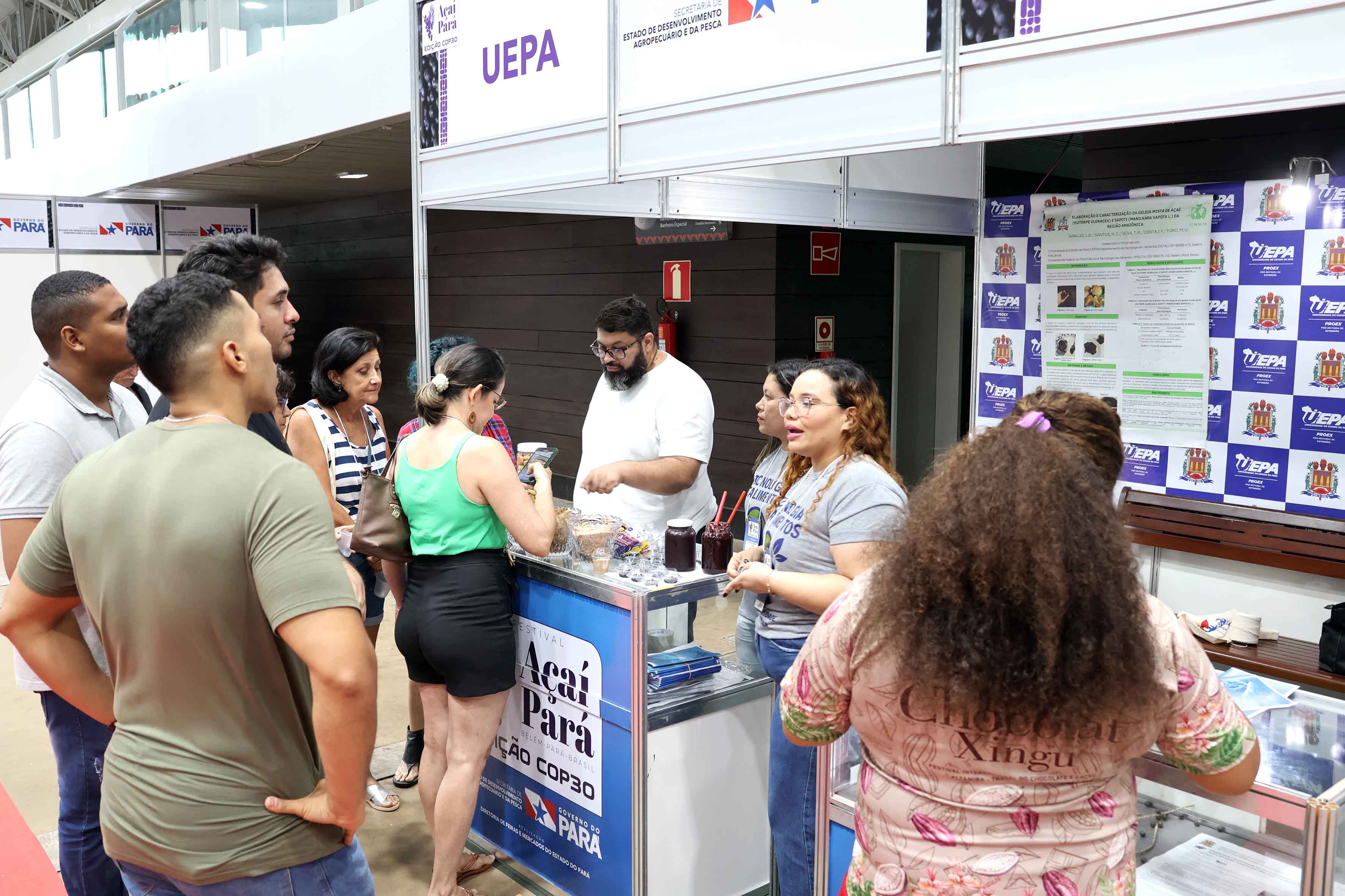 A Universidade do Estado do Pará (Uepa) marcou presença no Festival Açaí Pará - Edição COP 30, realizado até sábado, 14 de junho, no Hangar Centro de Convenções, em Belém. Com uma programação diversificada, o evento celebrou o fruto símbolo da cultura e da economia paraense, reunindo degustações, exposições, capacitações, apresentações culturais e inovações tecnológicas ligadas à cadeia produtiva do açaí. A programação é uma iniciativa do Governo do Estado, por meio da Secretaria de Desenvolvimento Agropecuário e da Pesca (Sedap).