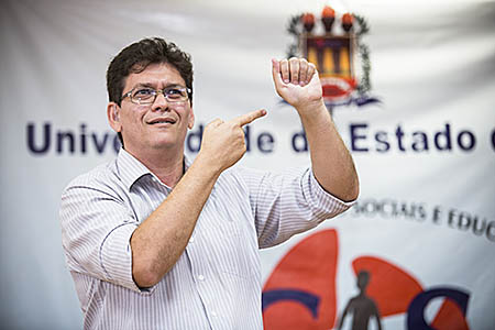 O auditório Paulo Freire, no Centro de Ciências Sociais e Educação (CCSE), ficou lotado por interessados pelo tema. A coordenadora adjunta do curso de Libras da Uepa – única a oferecer a graduação na capital –, Raquel Gomes, ressaltou o papel da Instituição nesse processo de inclusão. “A Uepa já formou uma turma de Libras e, em 2015, desenvolveu um processo seletivo especial que inclui uma prova de Libras para que os próprios surdos pudessem participar da graduação. Como fruto disso, 18 alunos surdos ingressaram na Universidade em 2016”, contou.