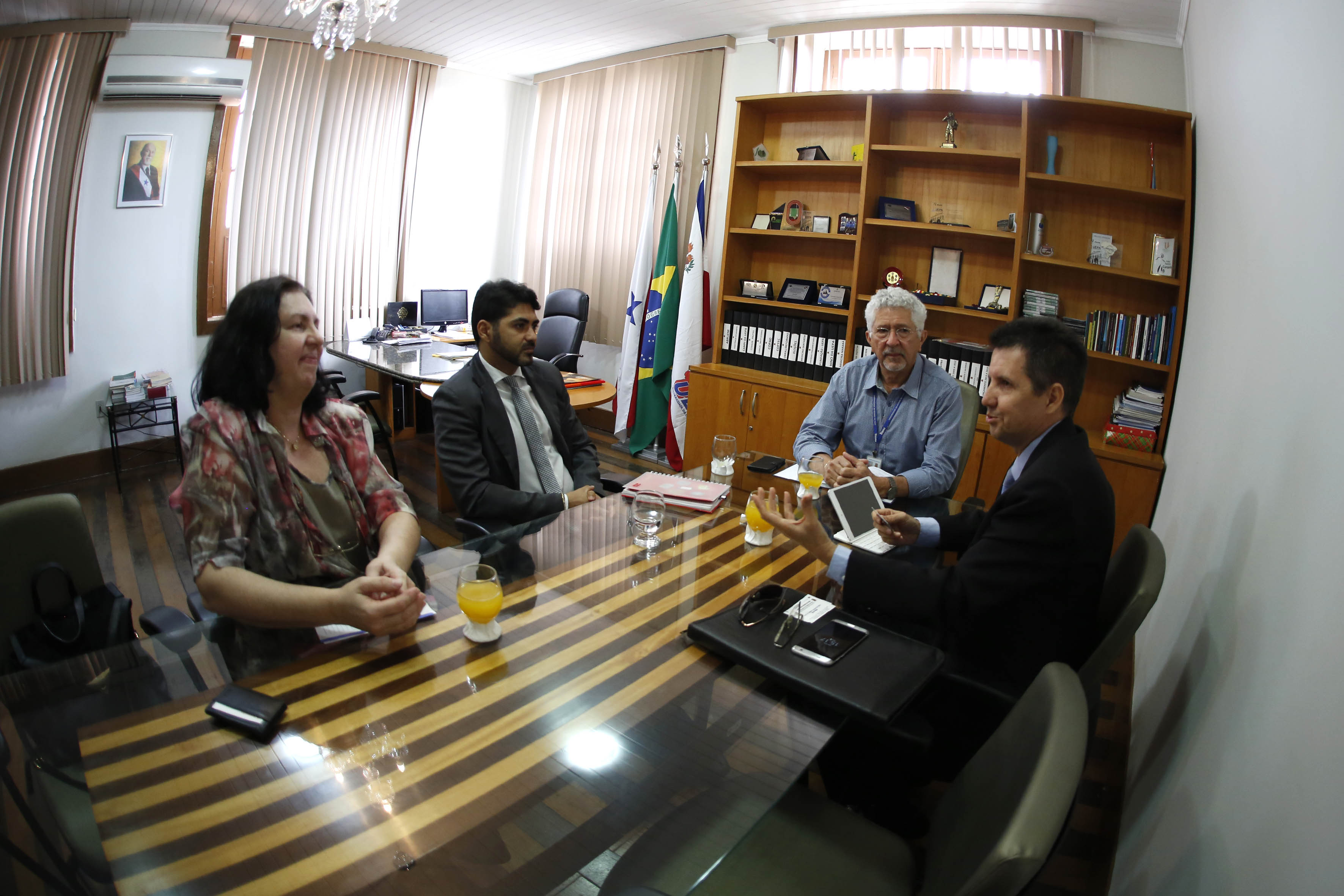 O vice-reitor da Universidade do Estado do Pará (Uepa), Rubens Cardoso, recebeu na tarde de ontem, na Reitoria, representantes do programa Santander Universidades. Entre outros assuntos, a reunião tratou da continuidade do programa de bolsas Ibero Americano – que anualmente seleciona estudantes na Uepa – e de outras vantagens que o banco pretende disponibilizar para estudantes e servidores da Instituição.