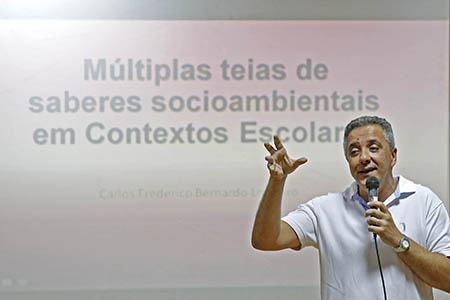 A conferência de abertura foi ministrada pelo doutor em Serviço Social, da Universidade Federal do Rio de Janeiro (UFRJ), Frederico Loureiro. Ele abordou as "Múltiplas teias de saberes socioambientais em contextos escolares’’. Frederico enfatizou a importância de trabalhar as diversas culturas dentro das escolas. “Há a necessidade de trazer para o universo escolar o reconhecimento de que a humanidade é formada por culturas diferenciadas que deveriam ser tratadas de forma igual. A cultura escolar é marcada por um tipo de saber sem fazer esse diálogo. É importante conhecer outras culturas, outras tradições como parte do processo de formação humana e superação de práticas de intolerância. O outro aspecto é a situação atual das escolas, educação pública, processos políticos, econômicos e estabelecer essas conexões”.