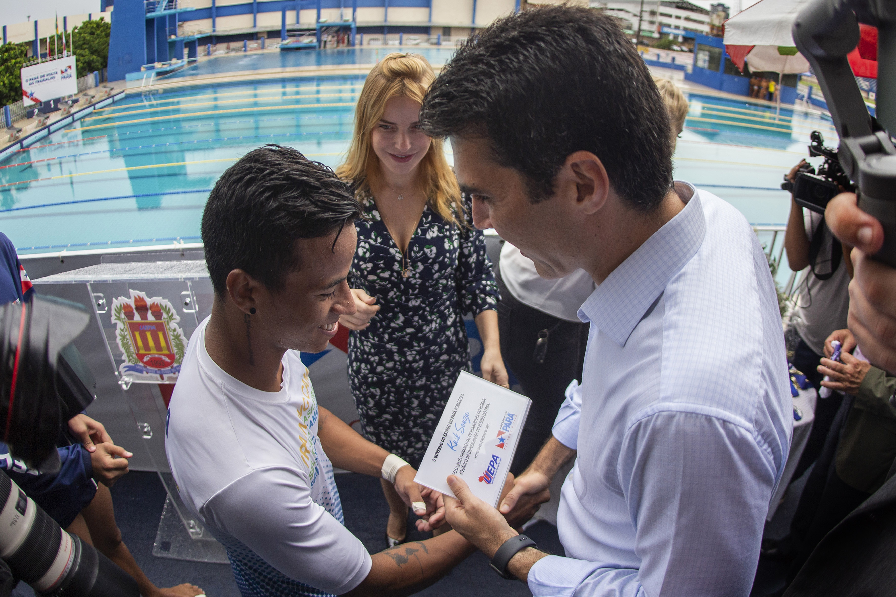 A cerimônia contou com a participação do governador do Estado do Pará, Helder Barbalho, do vice-prefeito de Belém, Orlando Reis, e do reitor da Uepa, Rubens Cardoso, para o descerramento da placa e premiação de alguns atletas que se apresentaram. “Estamos colocando o Parque Aquático à disposição dos paraenses com a vontade de que ele seja um berço de novos atletas e profissionais, além de um espaço de lazer para as comunidades e famílias do nosso Estado”, afirmou o governador do Estado, Helder Barbalho.