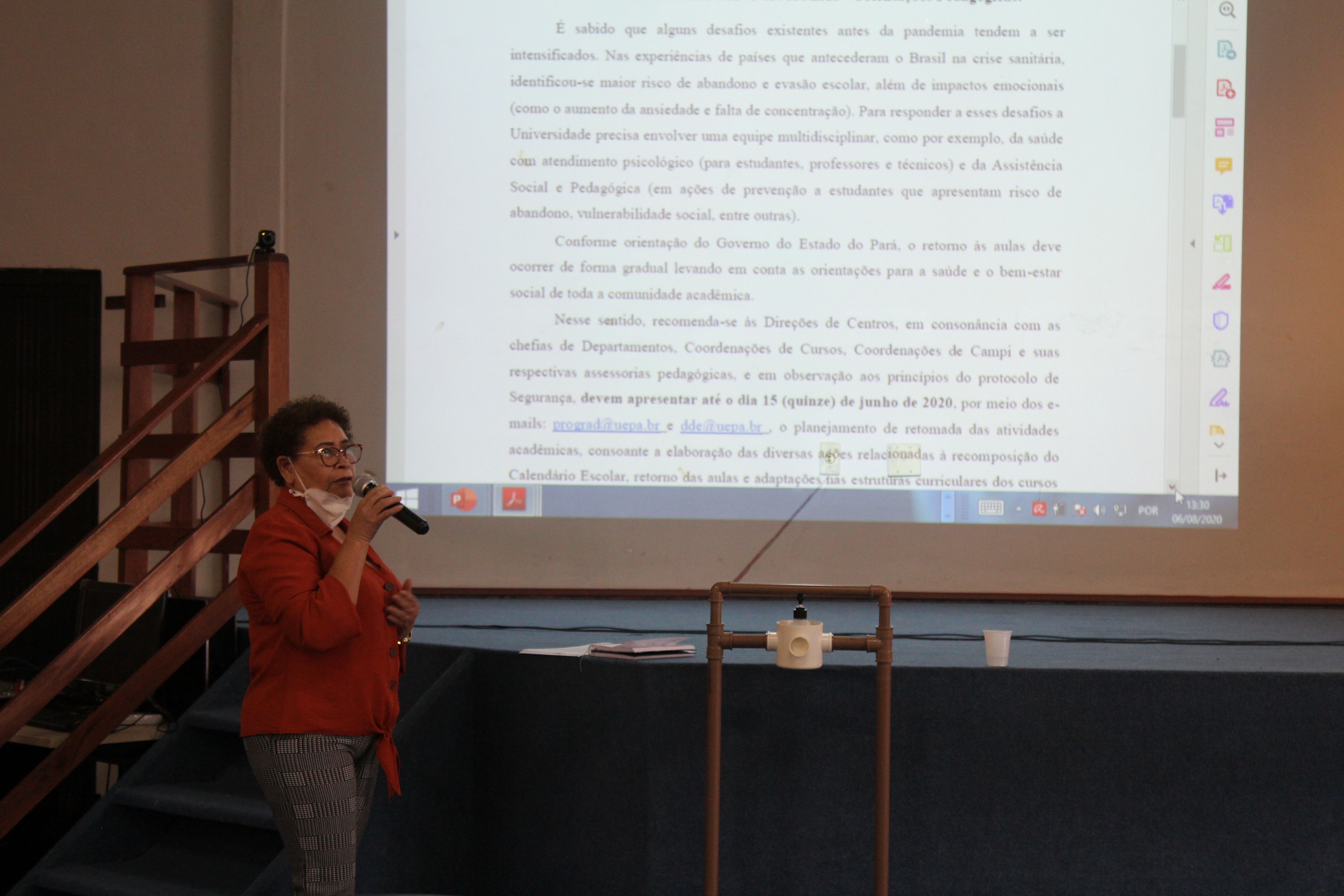 Sobre as atividades acadêmicas a pró-reitora Ana Conceição da Pró-reitoria de Graduação (Prograd) comentou sobre o enfrentamento da pandemia e apresentou algumas das estratégias adotadas de forma coletiva e individual sobre o retorno gradual das aulas. “Todos nós fomos pegos de surpresa pela pandemia do novo coronavírus, porém nós mantivemos um diálogo intenso com a gestão superior para debatermos como retornar as nossas atividades com segurança e a princípio fizemos um protocolo de orientações pedagógicas construídas coletivamente com os diretores de centros e campus com orientações para aulas não-presenciais nos locais em que fosse possível ser realizado, porém percebeu-se questões relacionadas a acessibilidade tecnológica e conectividade a internet da comunidade acadêmica discente que resultou em um segundo protocolo que convergiu essas informações com os dados específicos de cada particularidade contida em cada campus e centro para o desenvolvimento das estratégias de retorno gradual das aulas de forma remota por meio do ensino híbrido, tendo em conta que há, aproximadamente, vinte turmas em fase de conclusão, além da finalização das turmas do programa de Educação à Distância (EAD) da instituição, fora o início das atividades do FormaPará em uma configuração não-presencial também” disse a pró-reitora.