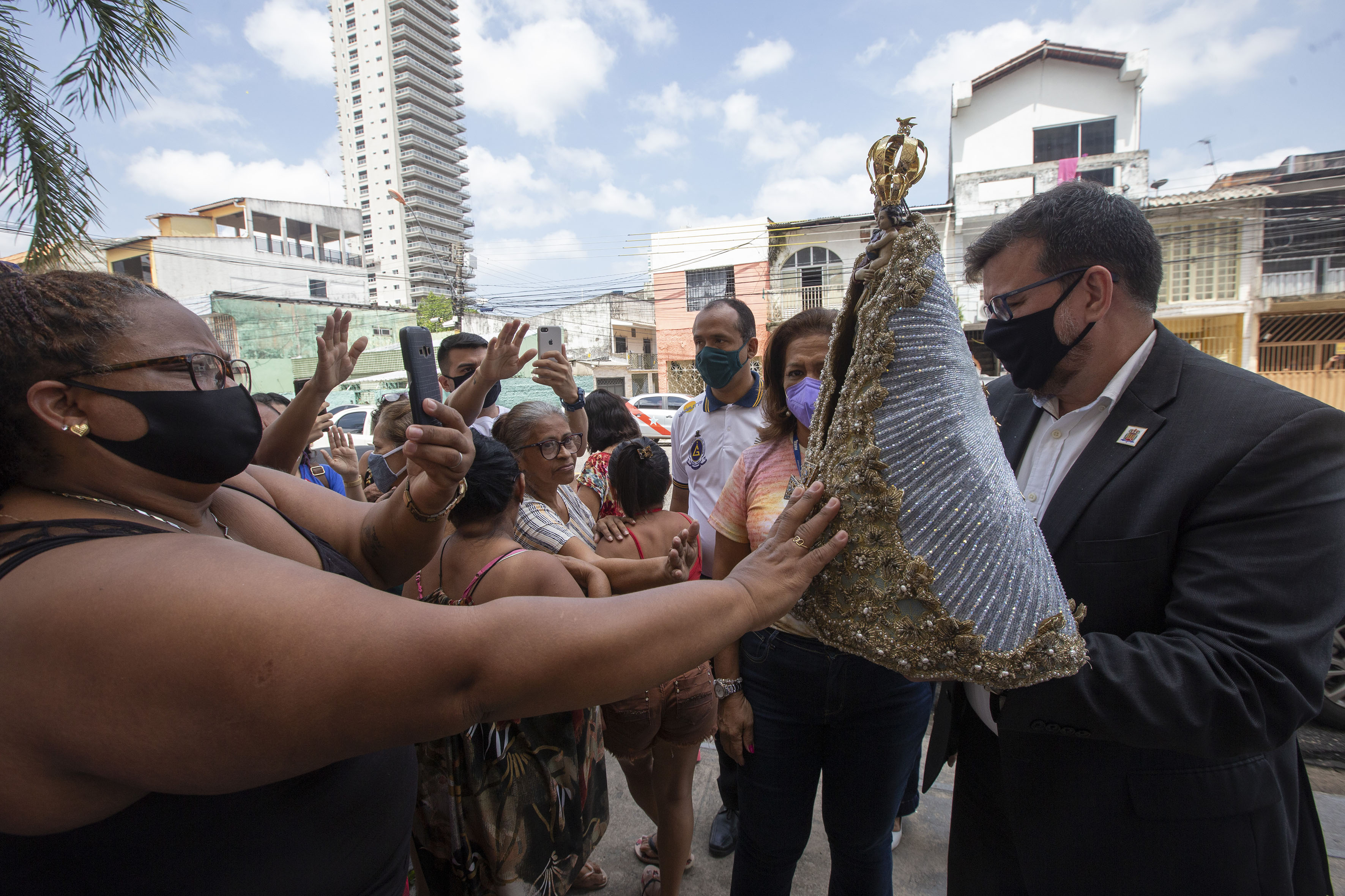 Desde o momento de chegada da imagem, a emoção era visível nos rostos ainda parcialmente cobertos pelas máscaras, necessárias como parte do protocolo de biosegurança em razão da pandemia de Covid-19. Como ocorre anualmente, desde 2004, a visita da Peregrina, atrai para o pátio da reitoria da Uepa, moradores da vizinhança. E a presença da comunidade foi destacada na fala do reitor Clay Chagas. "Hoje, com certeza, é um momento de extrema felicidade para nós e é uma satisfação vermos a presença da comunidade do entorno dentro da Uepa. Venham sempre!", reassaltou o professor.