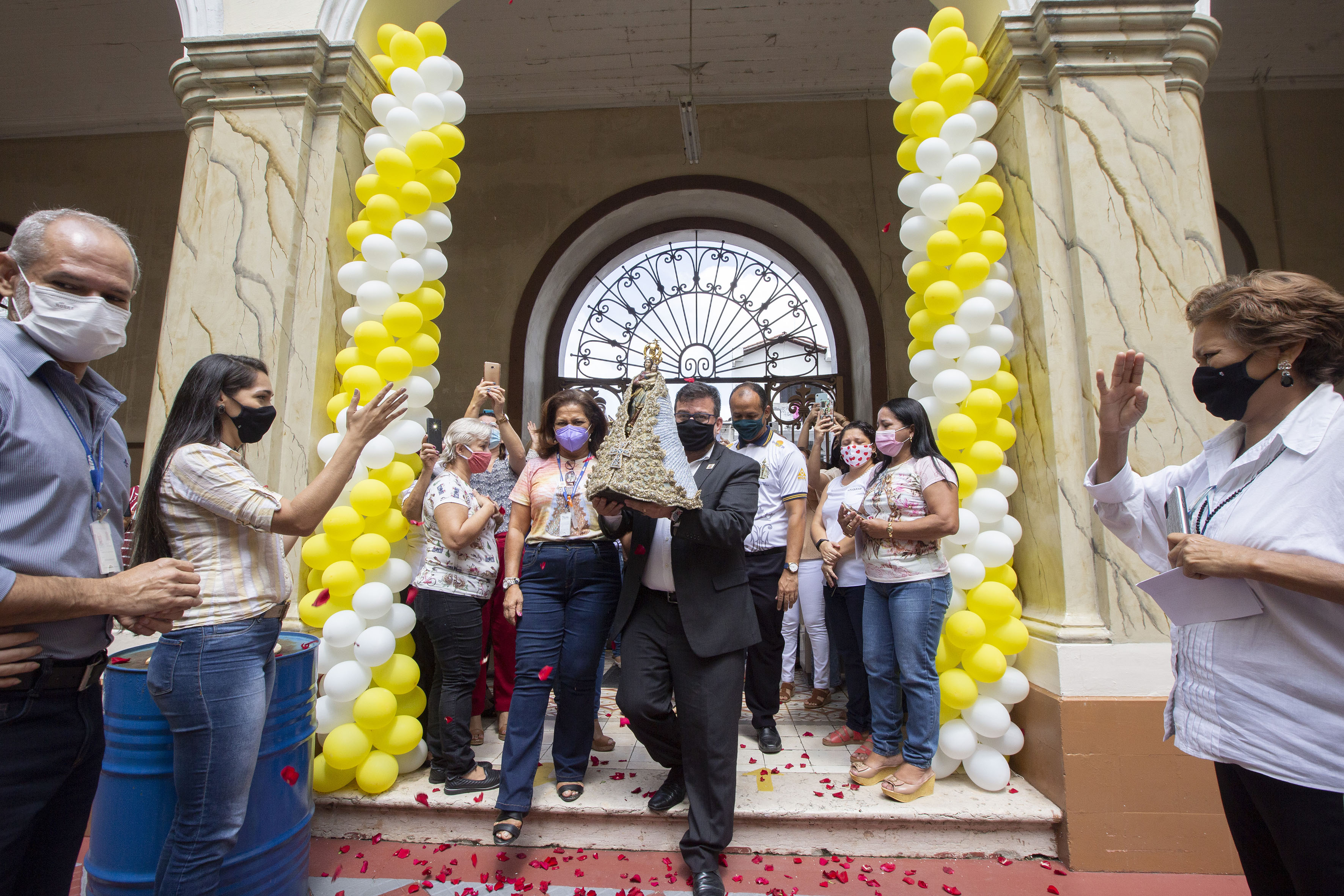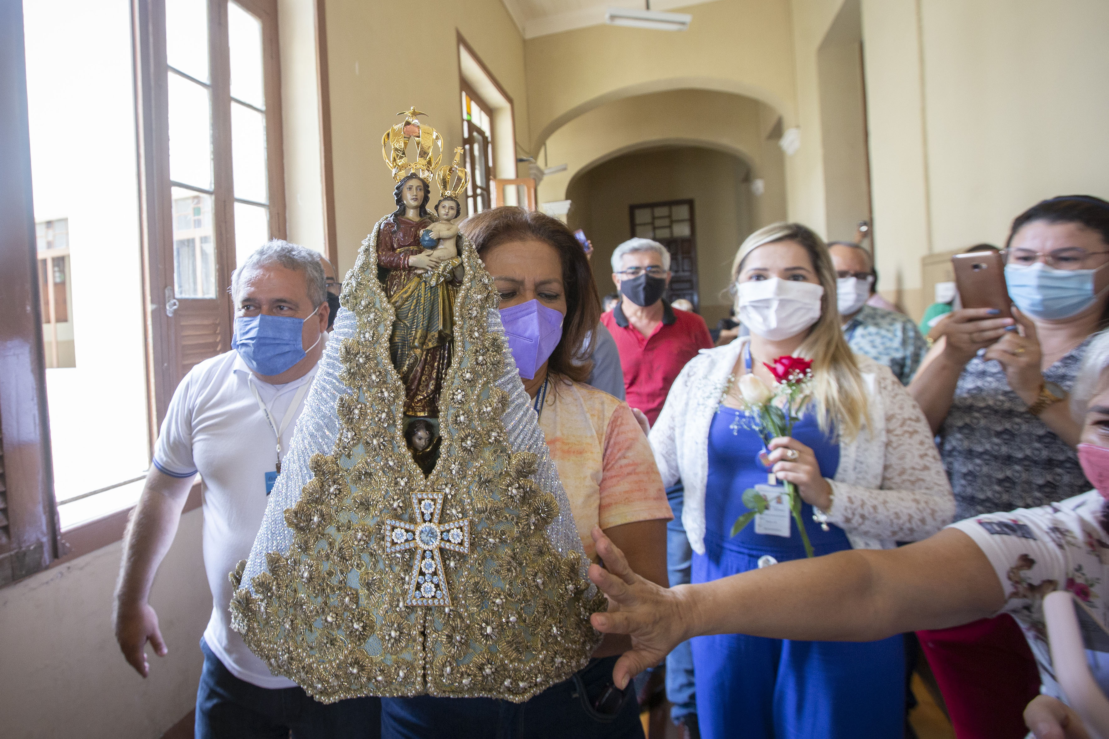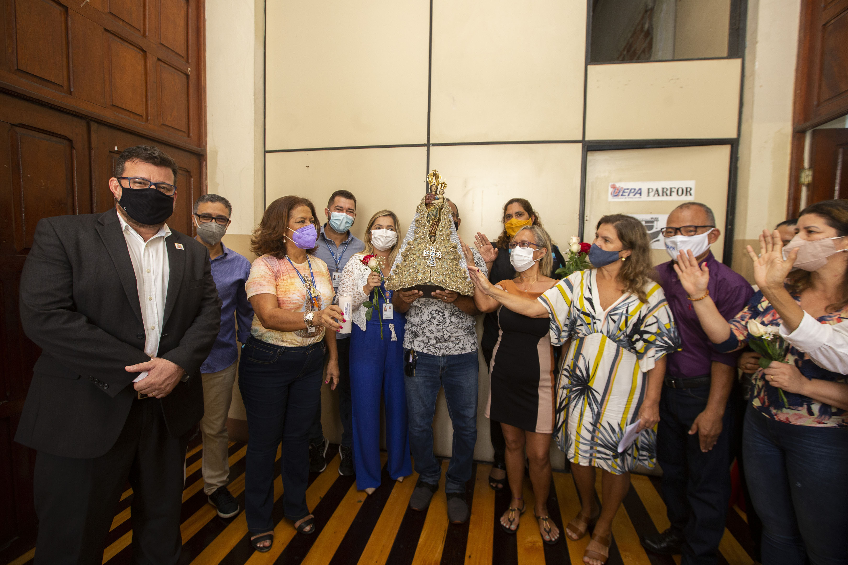 Após a bênção final, o diácono permitiu que os gestores da Uepa levassem a imagem peregrina em uma pequeno translado interno por alguns setores da instituição. Nesse momento, alguns servidores acompanharam o trajeto e puderam carregar as imagem por alguns instantes.