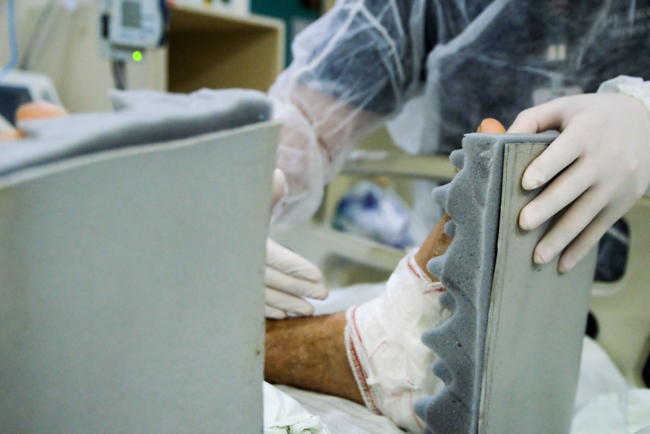 Com o aumento de internações por Covid-19, a atuação se tornou ainda mais importante. “Poucos conhecem e têm habilidade para manusear os materiais. Isso favorece uma nova proposta de conhecimento até para os profissionais. A pessoa fica acamada de 15 a 30 dias na UTI, então a posição do leito pode provocar úlcera de pressão, que tende a virar uma sepse, somada aos sinais da Covid, piorando o quadro do paciente. Utilizando os coxins, diminui-se o índice de infecções hospitalares, consequentemente, o tempo de internação e o custo do estado, além dos riscos para o paciente”, avalia o professor Jorge Lopes Rodrigues Júnior.