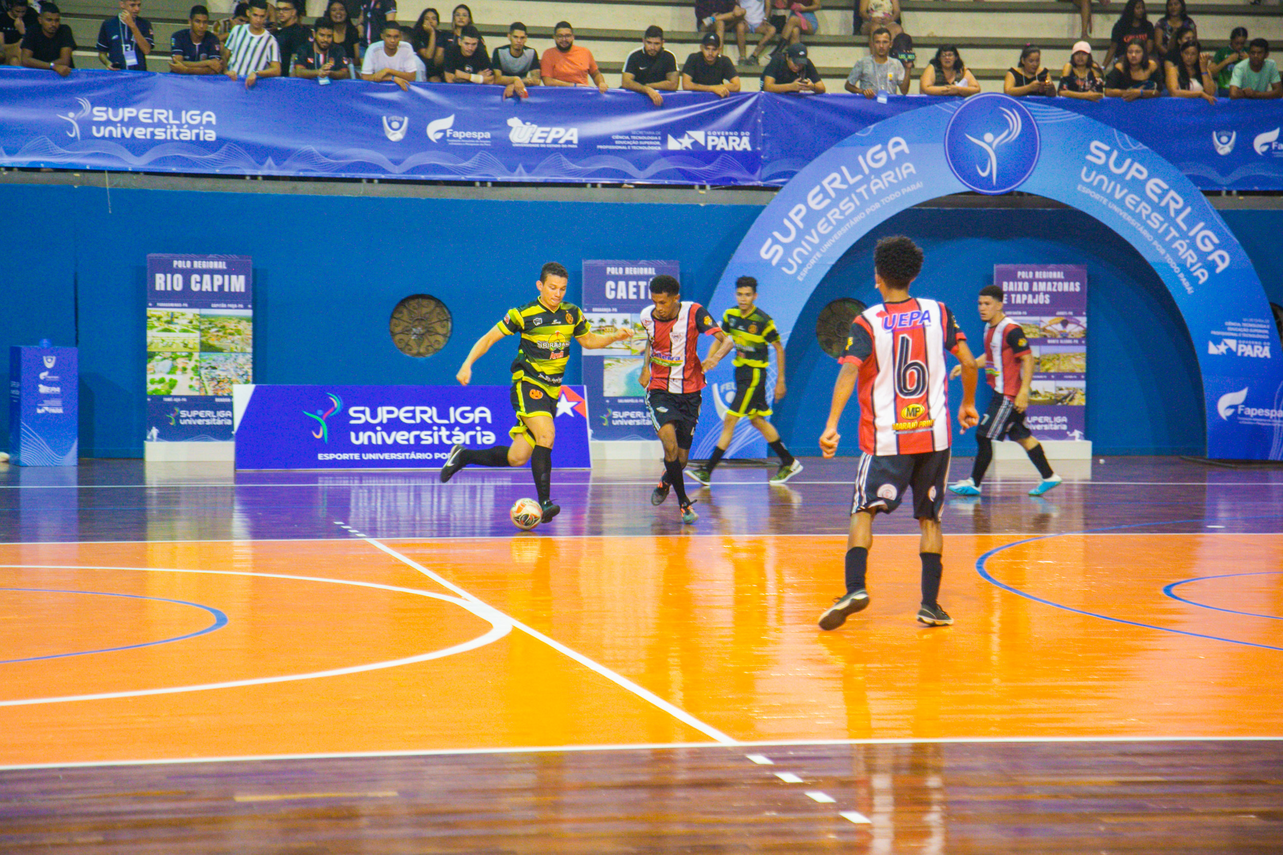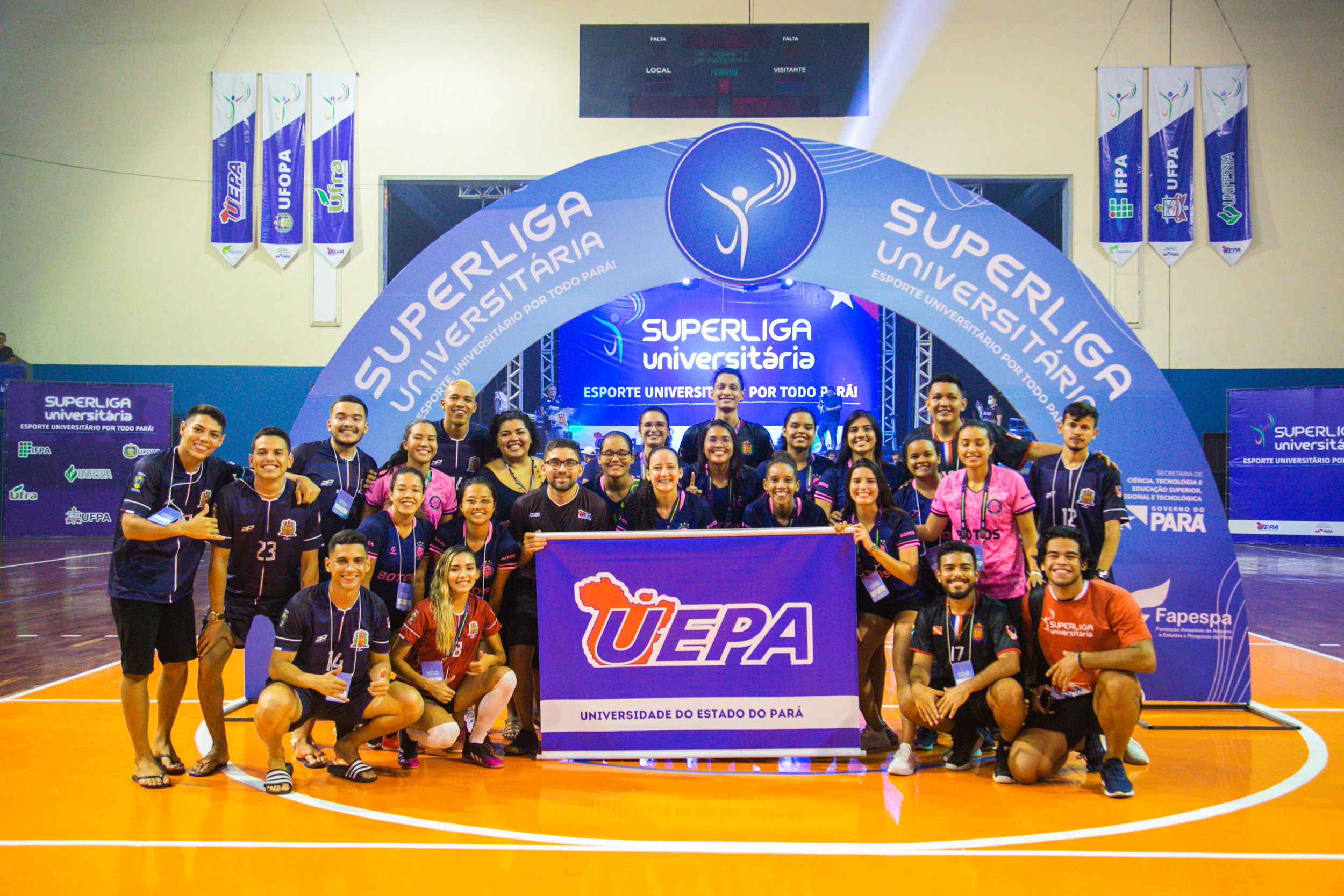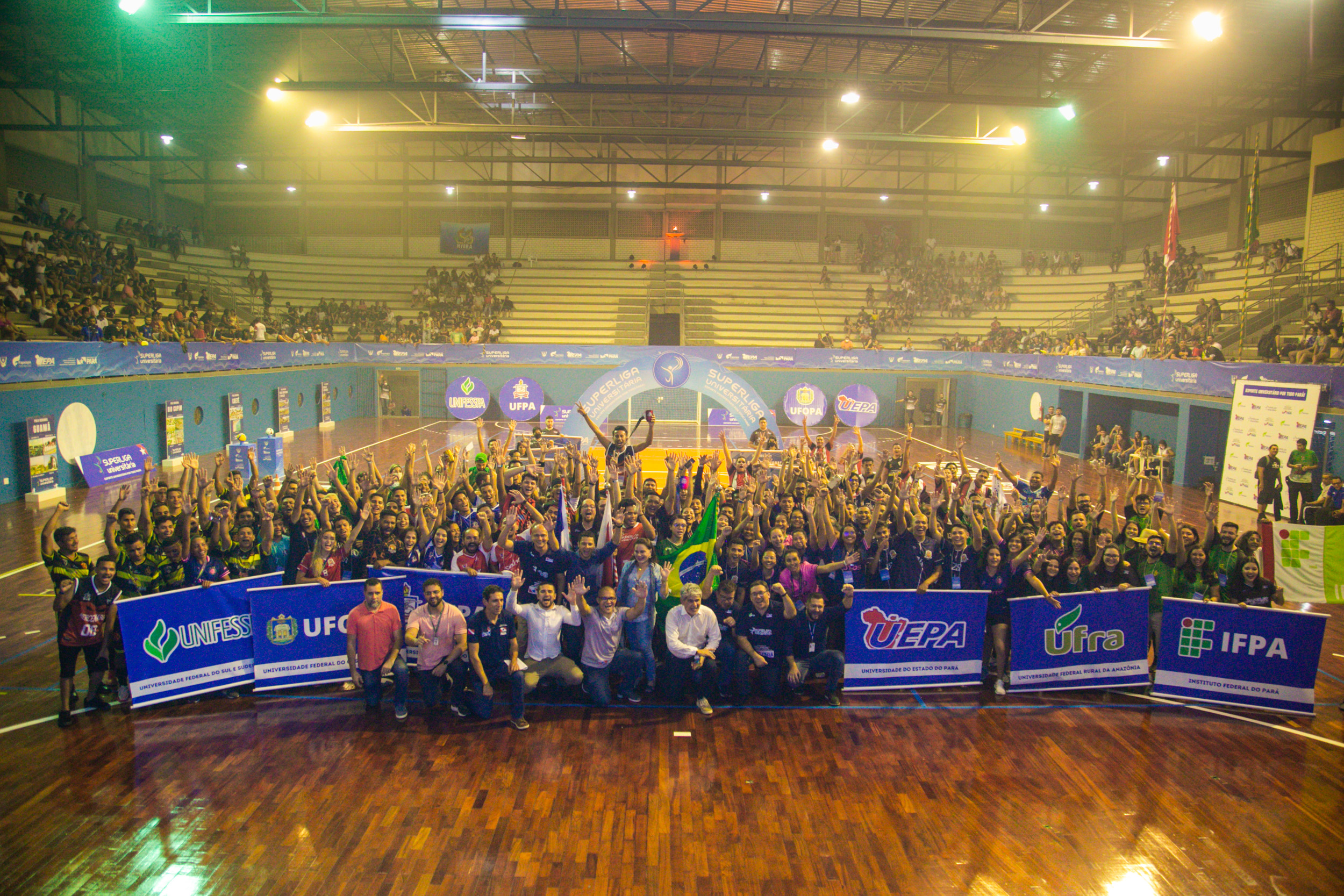 Energia de atletas, entusiasmo juvenil e dezenas de estudantes universitários ávidos por encontros presenciais e práticas esportivas, marcaram o lançamento da Superliga Universitária, nesta sexta-feira, 13, na Escola Superior de Educação Física da Universidade do Estado do Pará (Uepa), com a participação de oito delegações, com 64 equipes e um público de aproximadamente mil estudantes. A Superliga conta com a participação das seis Instituições de Ensino Superior (IES) do Pará: Uepa, Universidade Federal do Pará (UFPA), Universidade Federal Rural do Pará (Ufra), Instituto Federal do Pará (IFPA), Universidade Federal do Sul e Sudeste do Pará (Unifesspa) e Universidade Federal do Oeste do Pará (Ufopa). As delegações esportivas universitárias de todas as instituições públicas de ensino superior do estado são integradas por alunos de campi universitários de 38 municípios paraenses.