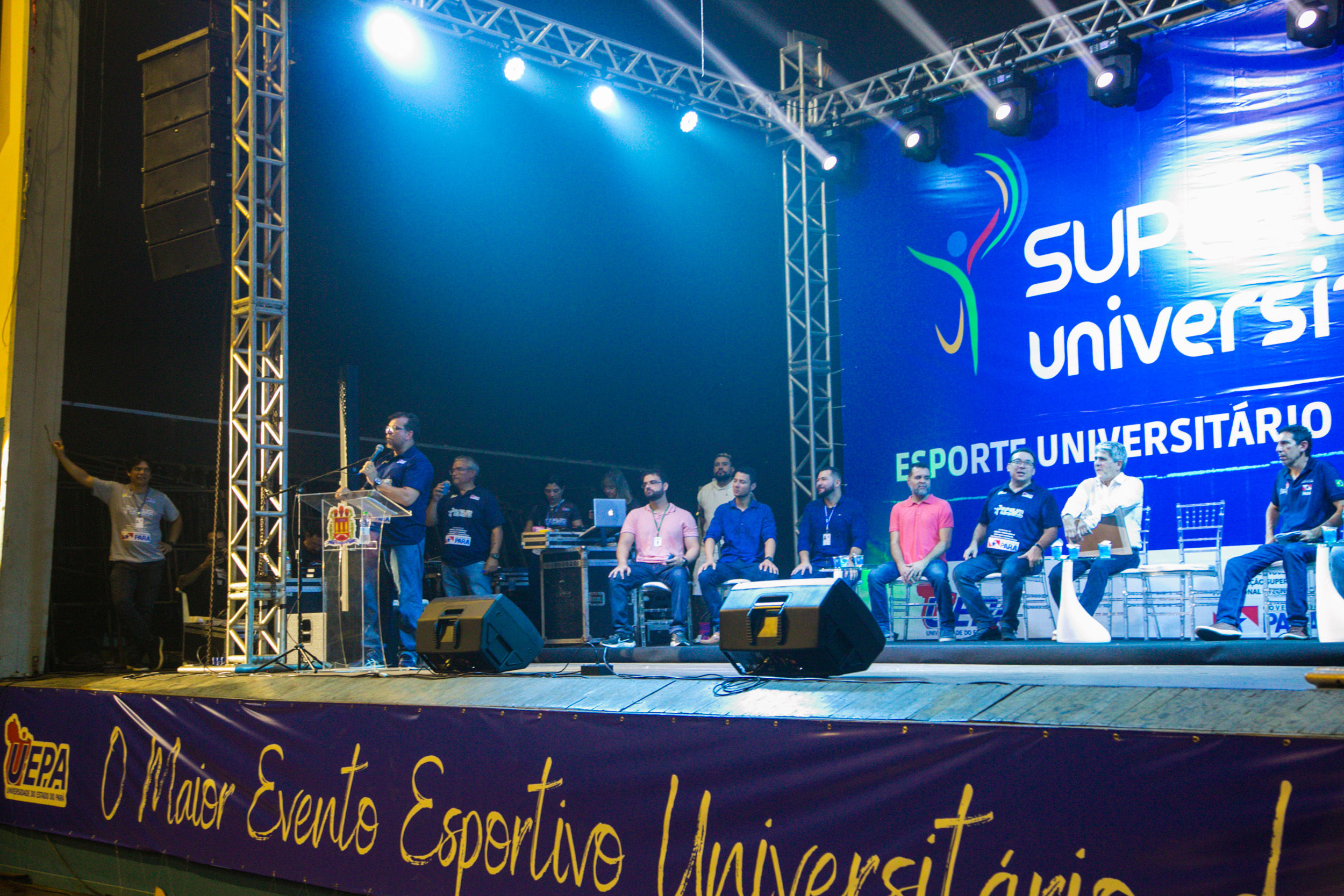 Na mesa de abertura da solenidade de lançamento, estiveram presentes Lisomar Guimarães, representando a Secretaria de Estado de Esporte e Lazer (Seel); Marcel Nascimento Botelho, presidente da Fundação Amazônia de Amparo a Estudos e Pesquisas (Fapespa); Vera Palácio, pró-reitora de extensão da Uepa; Douglas Cunha, vice-coordenador do curso de Educação Física da Universidade Federal do Pará (UFPA); Ronaldo Begot, pró-reitor de extensão da Universidade Federal Rural da Amazônia (Ufra); Mauro Martins, presidente da Federação de Esportes Universitários do Pará (FEUP); Jonas Elias Rocha, convidado de honra da Superliga; Higson Rodrigues Coelho, professor da Uepa, autor do projeto Gestão do Esporte Universitário, e reitor da Uepa, professor Clay Anderson Nunes Chagas, que declarou aberta a 1ª Superliga Universitária do Estado do Pará.