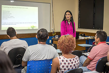 Samara foi uma das inscritas no minicurso de Marketing Ambiental, ministrado na manhã desta terça-feira(5), pela mestranda de Ciências Ambientais e especialista em Gestão da Educação, Dione Gutierrez. A ministrante reforçou o conceito de Marketing Ambiental, deu exemplos de empresas nacionais que trabalham com esse tipo de marketing, mostrou campanhas de sucesso e de fracasso, destacou a importância do selo verde nos produtos, e organizou uma dinâmica de grupo em que os participantes teriam que convencer os demais a comprarem produtos saudáveis.