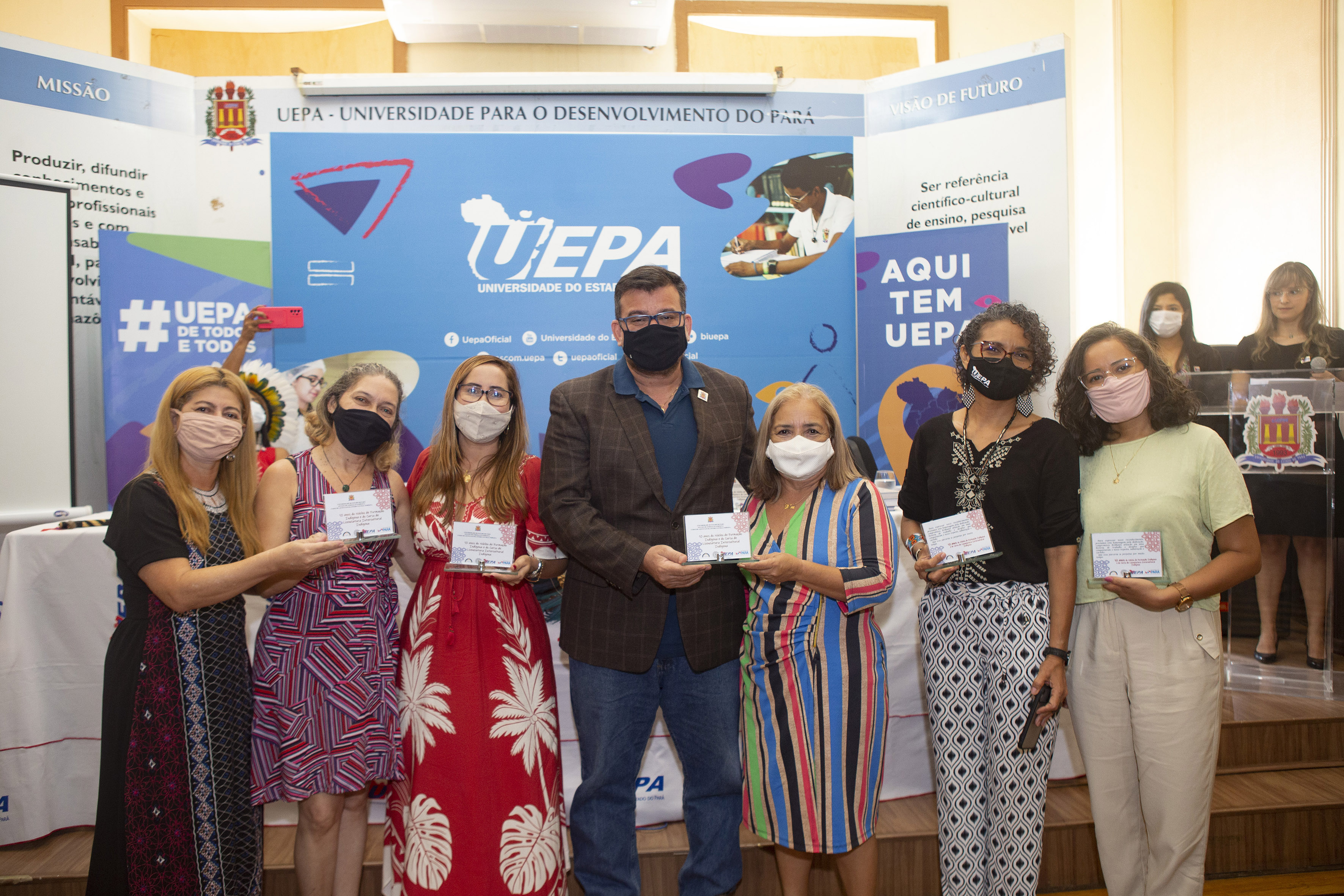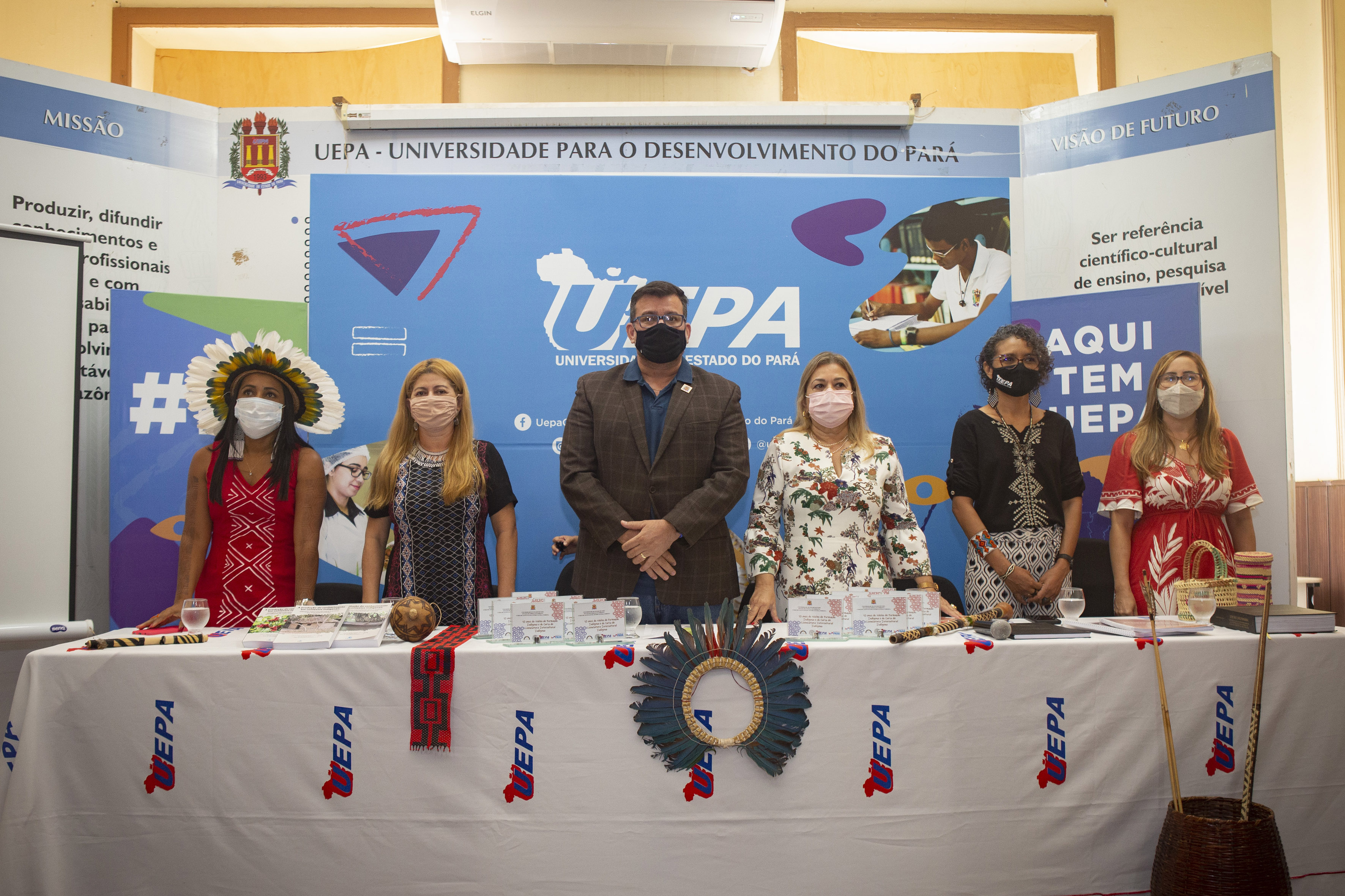 O acesso à educação é um dos direitos da população indígena, incentivado e ofertado pela Universidade do Estado do Pará (Uepa), por meio do Núcleo de Formação Indígena (Nufi), vinculado à Pró-Reitoria de Graduação (Prograd) que, em 2021, completa dez anos. A comemoração pela primeira década do Nufi foi realizada hoje, 14, no Auditório da Reitoria, com a participação do reitor da Uepa, Clay Chagas, da pró-reitora de graduação, Célia Virgolino, da coordenadora do Núcleo, Joelma Alencar, da coordenadora do curso de Licenciatura Intercultural Indígena, Aline Lima, da professora Eliete Solano, representando os docentes do curso, e Puyr Tembé, presidente da Federação dos Povos Indígenas do Pará (Fepipa).