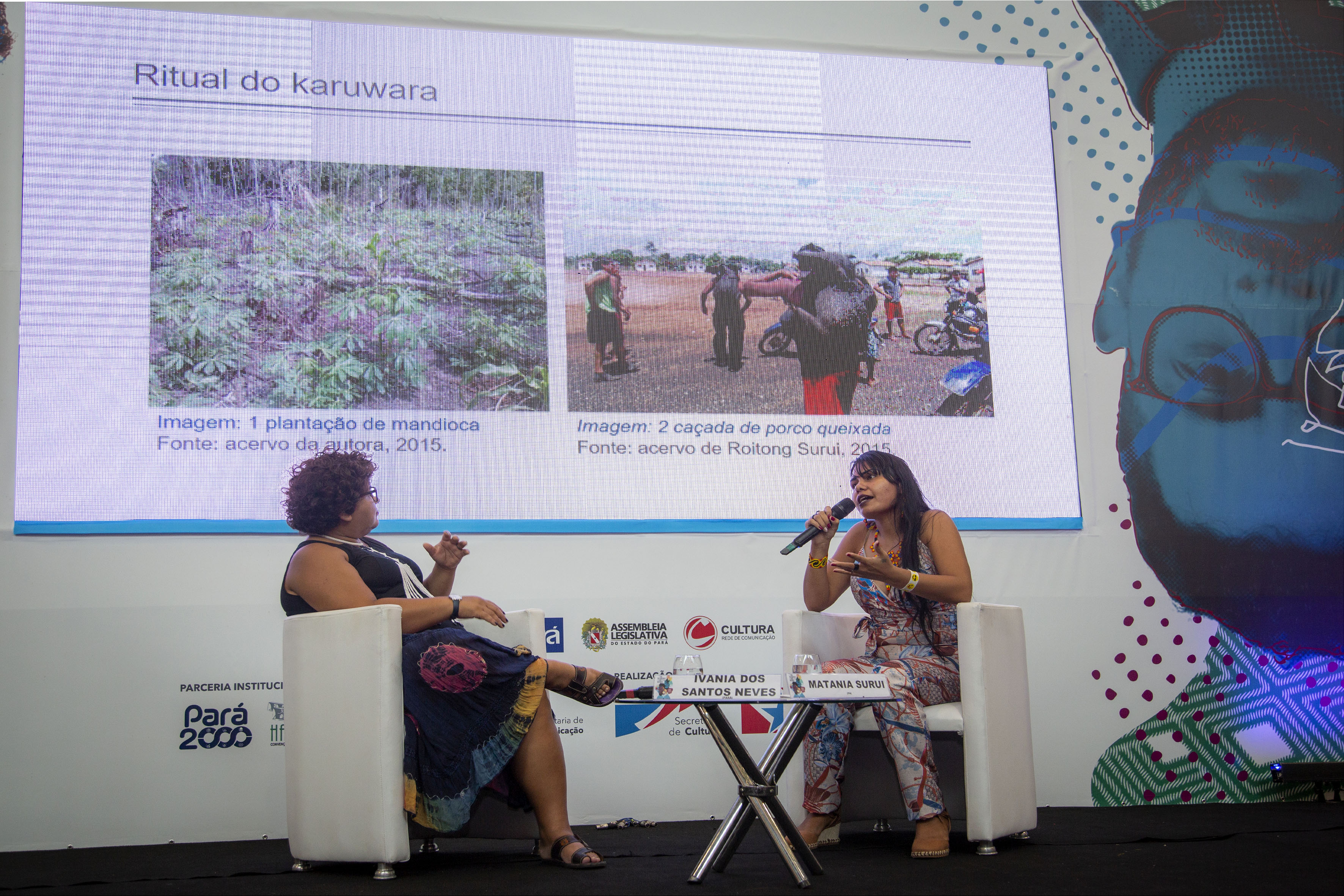 Três mesas redondas incluíram representantes de povos tradicionais e intelectuais da área, às 16h, 17h e 19h, na Arena Multivozes, para aprimorar o debate sobre os dilemas da educação, a proteção cultural e as principais reivindicações indígenas do país na atualidade: “Patrimônio e Memória: Perpetuação, vivência e cultura”, com Ivânia dos Santos Neves (PA) e Matânia Suruí (PA); "Direitos indígenas na academia, instituições e sociedade", com Time I Assurini (PA) e Juma Xipaia (PA); e “Os dilemas da educação escolar indígena”, com Lili Chipaia (Seduc) e Joelma Alencar (Uepa).