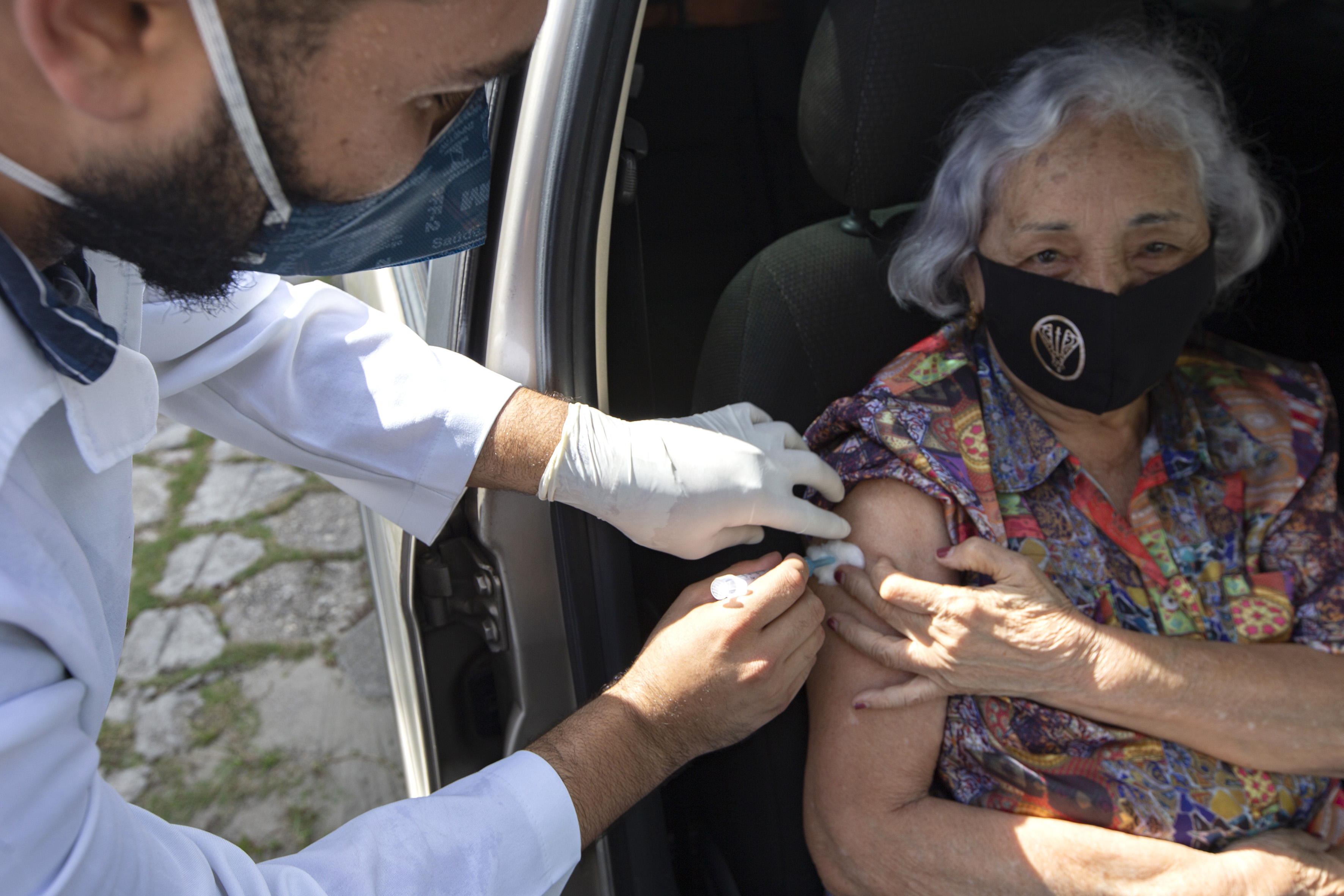 O cadastramento para receber a vacina é pelo sistema de drive thru e é necessário portar o CPF, cartão do Sistema Único de Saúde (SUS) e carteira do idoso.