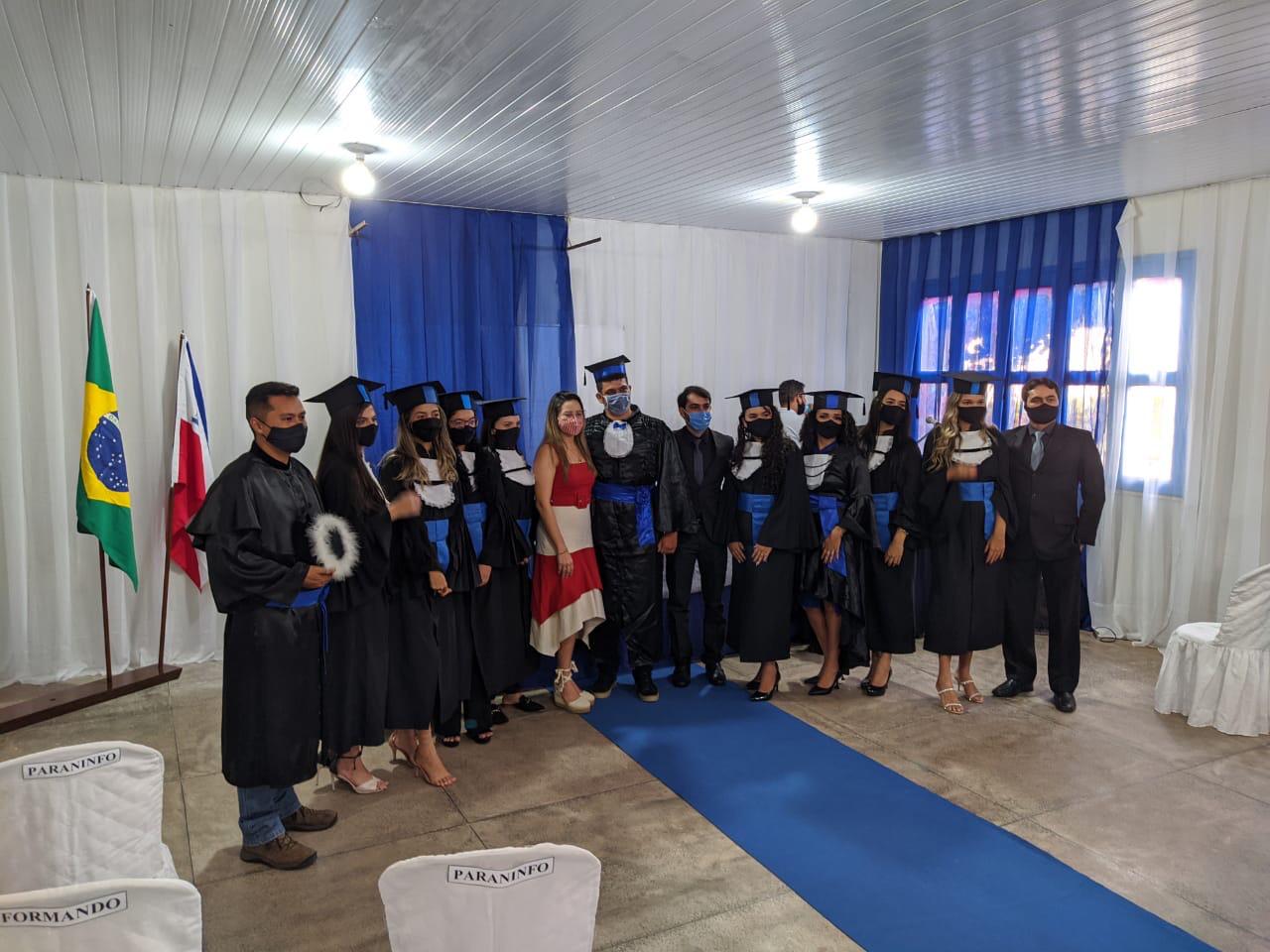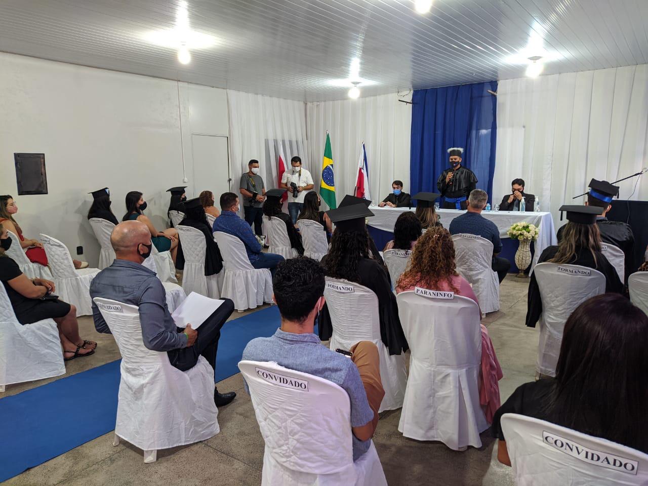 Na solenidade, os formandos seguiram todos os protocolos de segurança em razão do novo Coronavírus (Covid-19), com distanciamento social, uso de máscaras e número reduzido de pessoas presentes no local.
