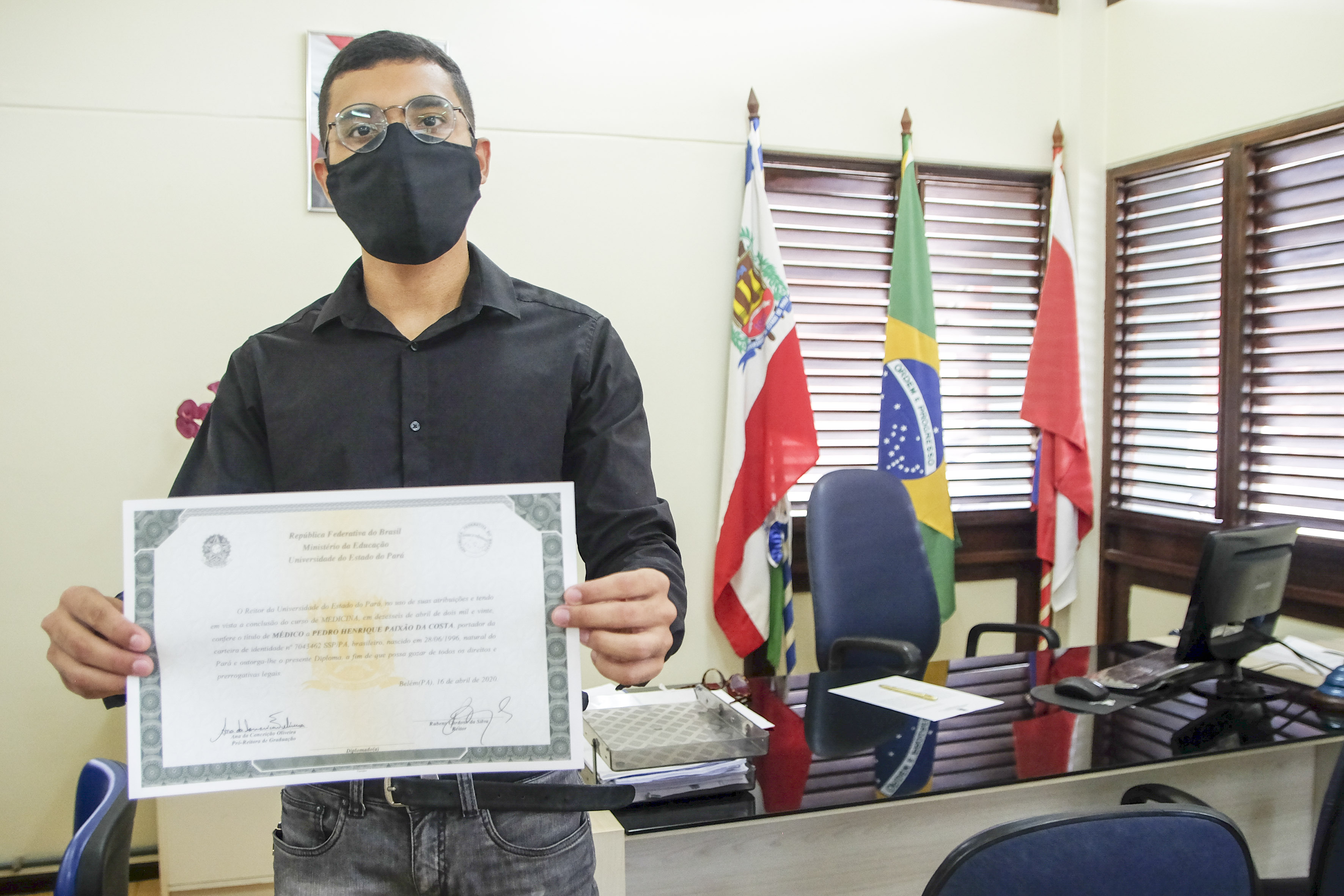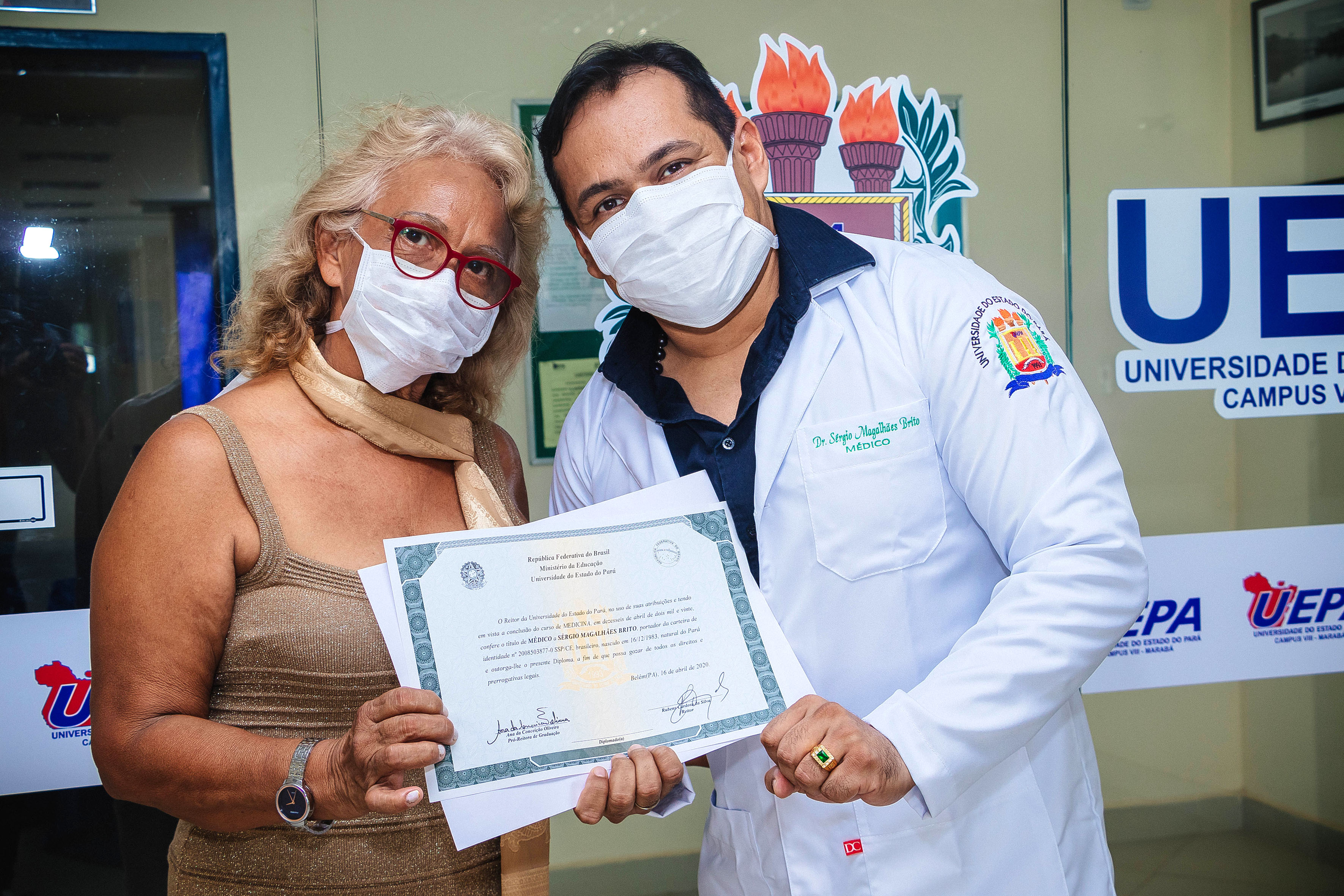 Nesta quarta-feira, 22 de abril, a Universidade do Estado do Pará (Uepa) antecipou a entrega de 61 diplomas de discentes do Curso de Medicina dos campi de Belém (48) e de Marabá (13), completando, desta forma, junto à antecipação de 19 diplomas no campus de Santarém, no dia 9 de abril, um ciclo de formação de 80 novos médicos capacitados para assumirem os lugares na luta contra a Covid-19 no Estado do Pará.