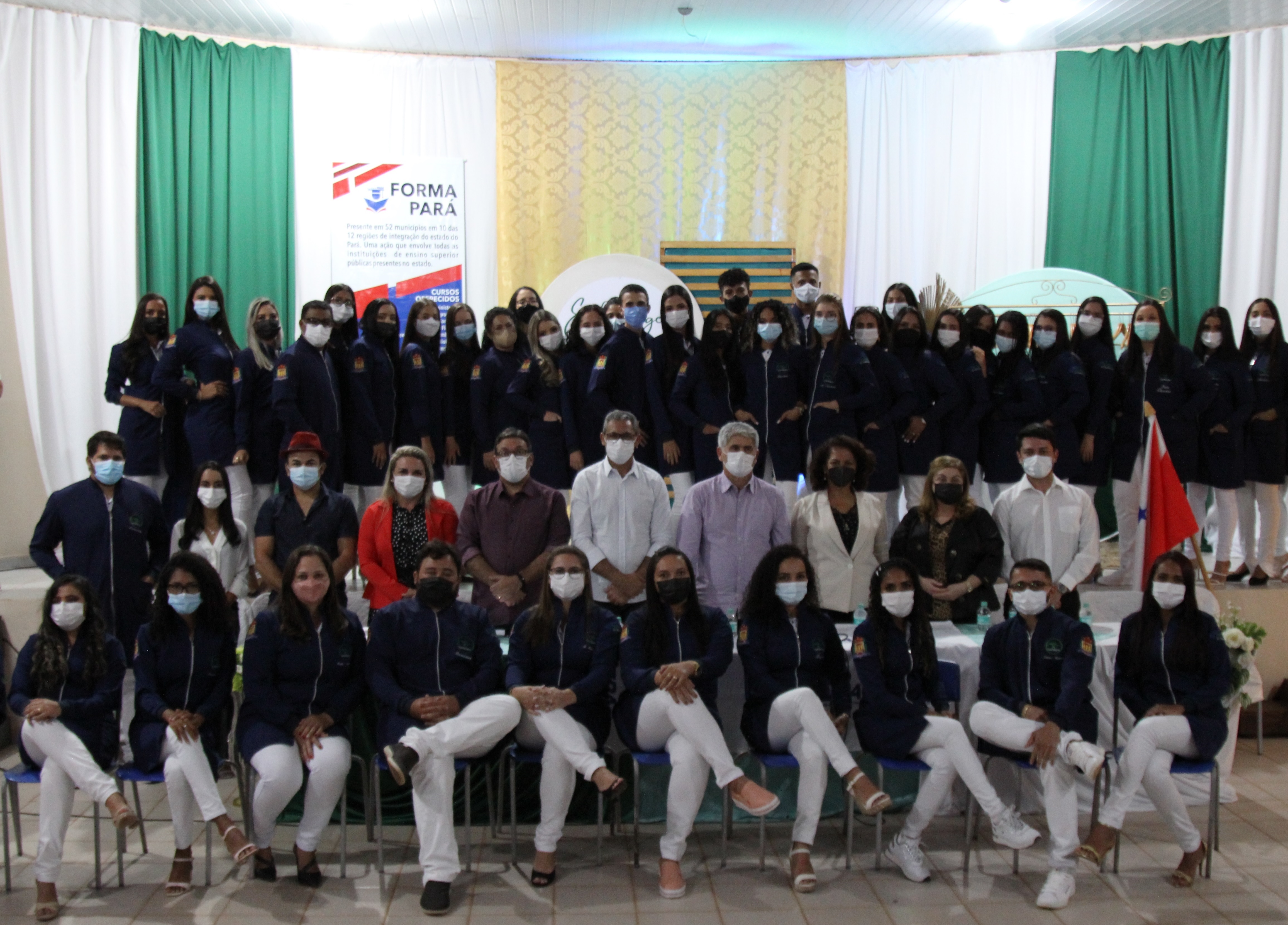 A programação contou a participação de 45 discentes que estão matriculados na turma do curso Enfermagem, aprovada pelo processo seletivo especial da chamada 2021 do Programa Forma Pará e além da aula inaugural, também, realizaram a cerimônia do jaleco. Para a discente Wildelana Ferreira, primeira mulher da sua família a entrar na Universidade, a expectativa para o início das aulas é grande, pois até então muitas pessoas iam fazer cursos universitários em outras cidades próximas e hoje os moradores de Goianésia podem ter essa oportunidade na sua própria cidade. “Minha expectativa com o curso de Enfermagem é das melhores, pois através do Forma Pará junto com a Uepa estão proporcionando um curso que não tinha em Goianésia e eu sempre quis fazer, mas não tinha condições de ir para outra cidade, portanto, tenho certeza que ao terminar o curso irei atuar aqui em Goianésia como forma de dar um retorno para moradores da minha cidade do investimento feito em mim”, comentou.