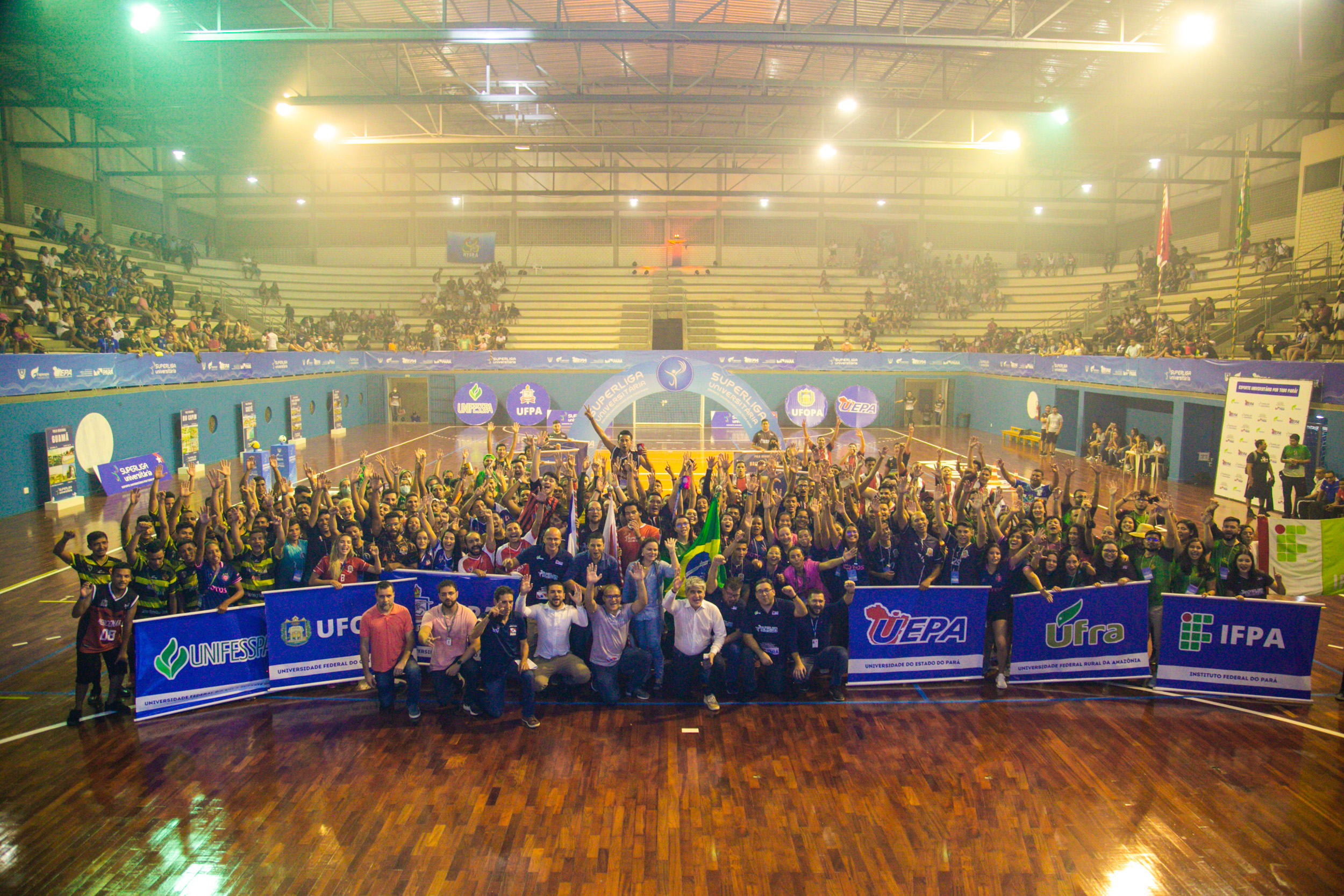 A Superliga conta com a participação das seis Instituições de Ensino Superior (IES) do Pará: Uepa, Universidade Federal do Pará (UFPA), Universidade Federal Rural do Pará (Ufra), Instituto Federal do Pará (IFPA), Universidade Federal do Sul e Sudeste do Pará (Unifesspa) e Universidade Federal do Oeste do Pará (Ufopa). As delegações esportivas universitárias de todas as instituições públicas de ensino superior do estado são integradas por alunos de campi universitários de 38 municípios paraenses.