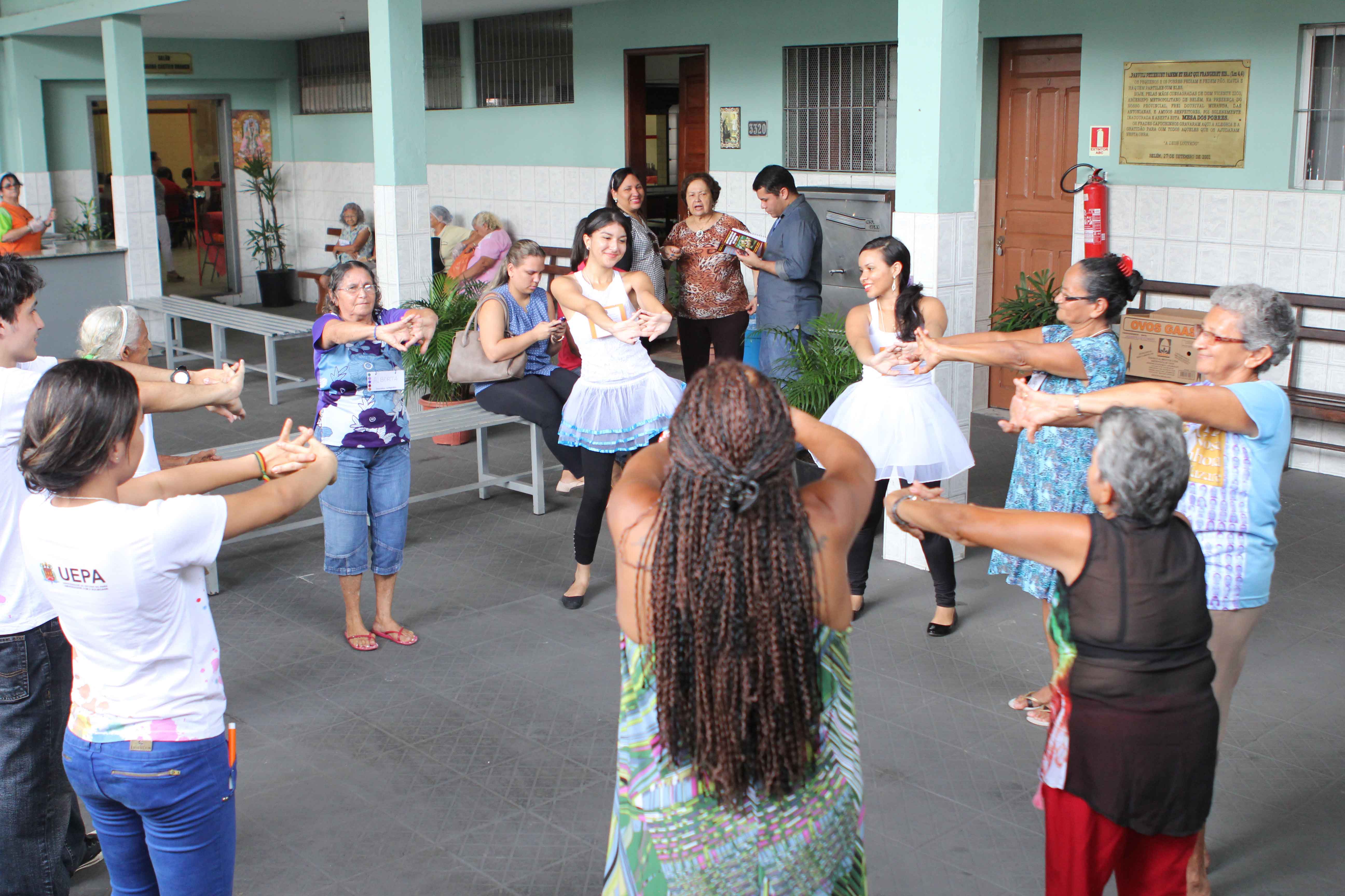Atividades lúdicas, oficinas e danças fizeram parte da programação promovida na casa de assistência a idosos da Igreja dos Capuchinhos e na Escola Superior de Educação Física .