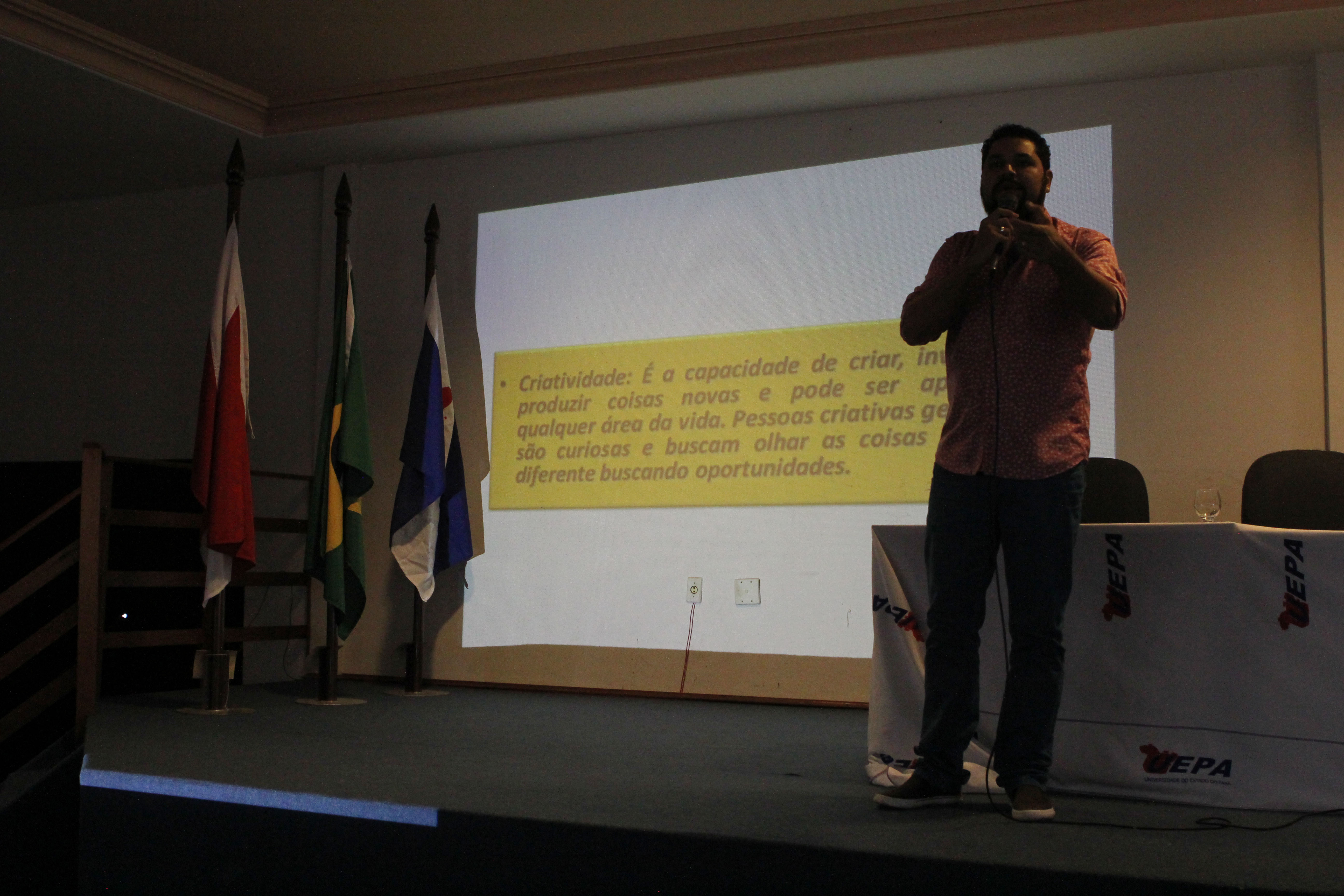 Logo após a cerimônia, o professor egresso da Uepa do curso de Design, Júnior Oliveira, proporcionou um bate-papo sobre criatividade, sustentabilidade, economia, sociedade e recursos tecnológicos. “Pouco se sabe sobre economia criativa, como fazer, onde encontrar. A economia criativa é a gestão da criatividade de cada um e que está relacionado a outros conceitos, principalmente potencial social e matéria-prima”, afirma o professor.