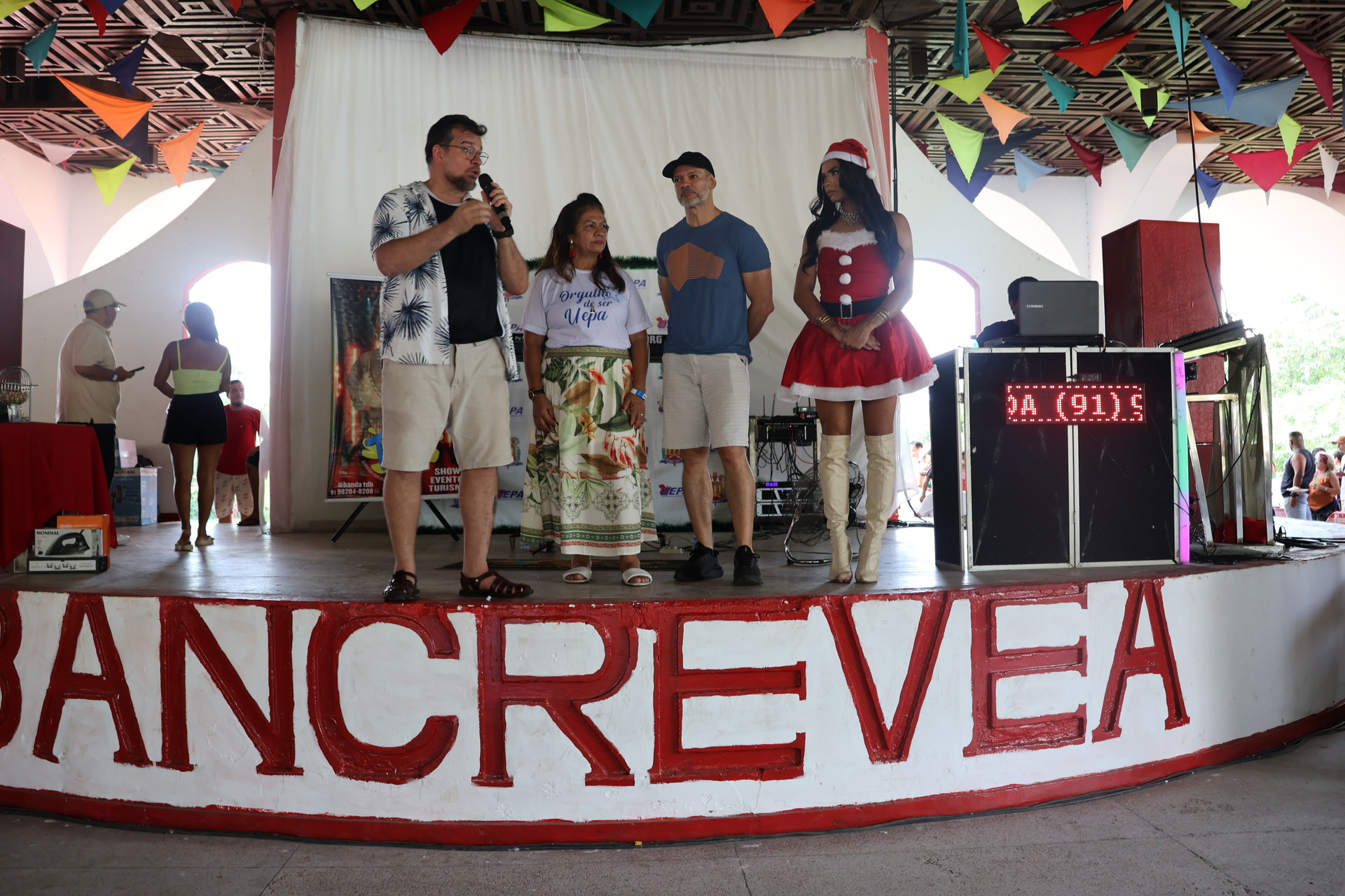 A Uepa promoveu um momento de integração, descontração e confraternização para seus servidores. Um almoço foi realizado nesta sexta-feira, dia 12, no Bancrévea. A celebração reuniu técnicos, professores e familiares, que puderam aproveitar o show musical e o sorteio de brindes realizado ao longo do dia. Crianças e adultos também desfrutaram de banho de piscina e futebol, além de receberem brindes especiais.
