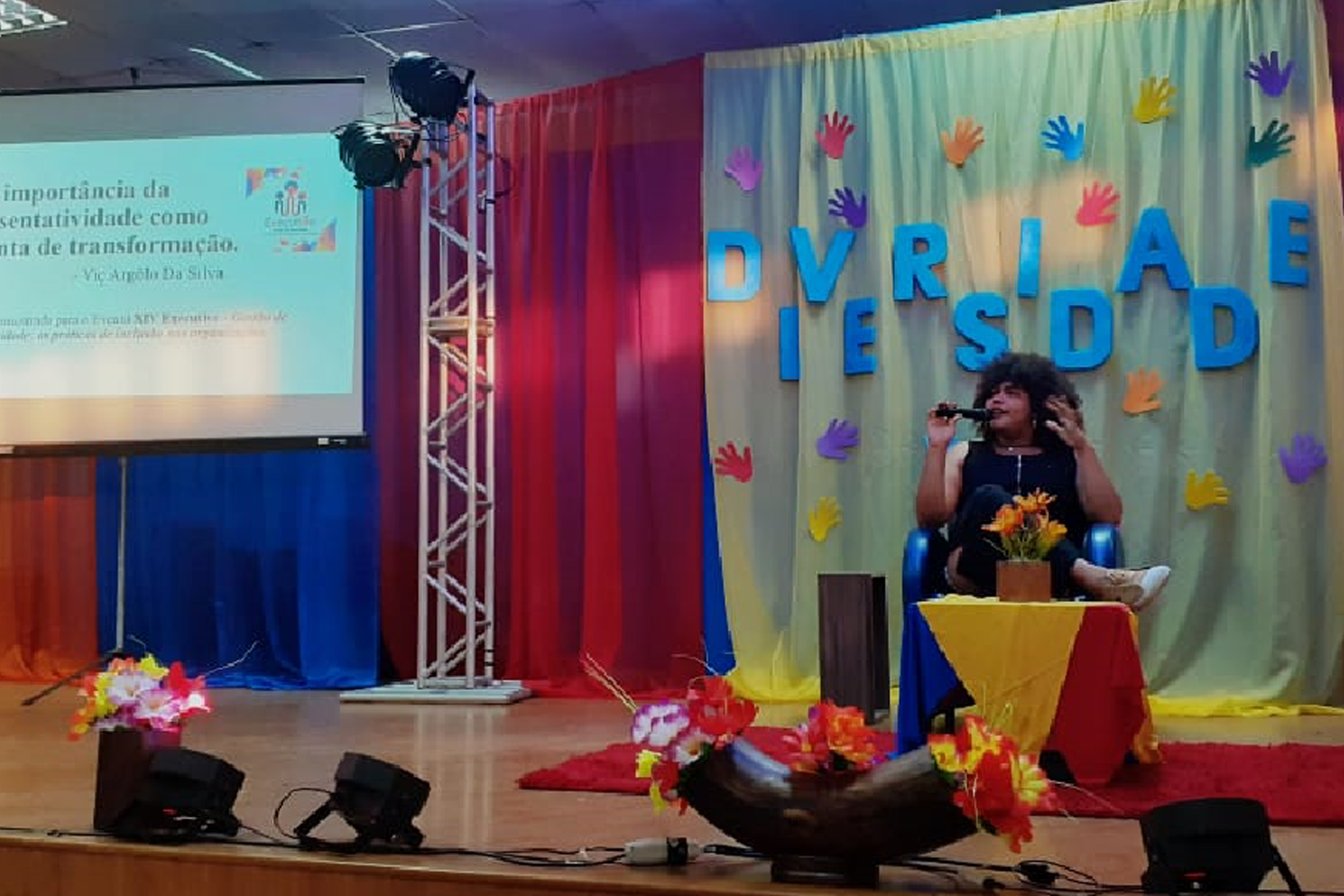 A programação do primeiro dia encerrou com a palestra A importância da representatividade como ferramenta de transformação social, ministrada pela estudante do 4° semestre de Ciências Sociais da Uepa, Vic Argôlo. A aluna, transativista e membro do Grupo de Estudos Gêneros, Sexualidades, Educações e Gerações (GENSEG), apresentou sua história e desafios no ambiente acadêmico.