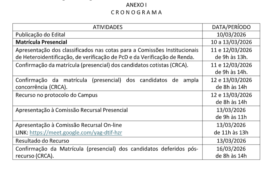 O Reitor da Universidade do Estado do Pará - UEPA, torna público o EDITAL Nº 33/2026 - UEPA 1ª Chamada subsequente (REPESCAGEM), com base nas normas do EDITAL 096/2025 DO PROCESSO SELETIVO ESPECÍFICO PARA O CURSO DE LICENCIATURA EM MÚSICA 2026; e obedecendo a ordem de classificação para a(s) chamada(s) subsequente(s) dos referidos processos, conforme a relação deste edital e cronograma a seguir: